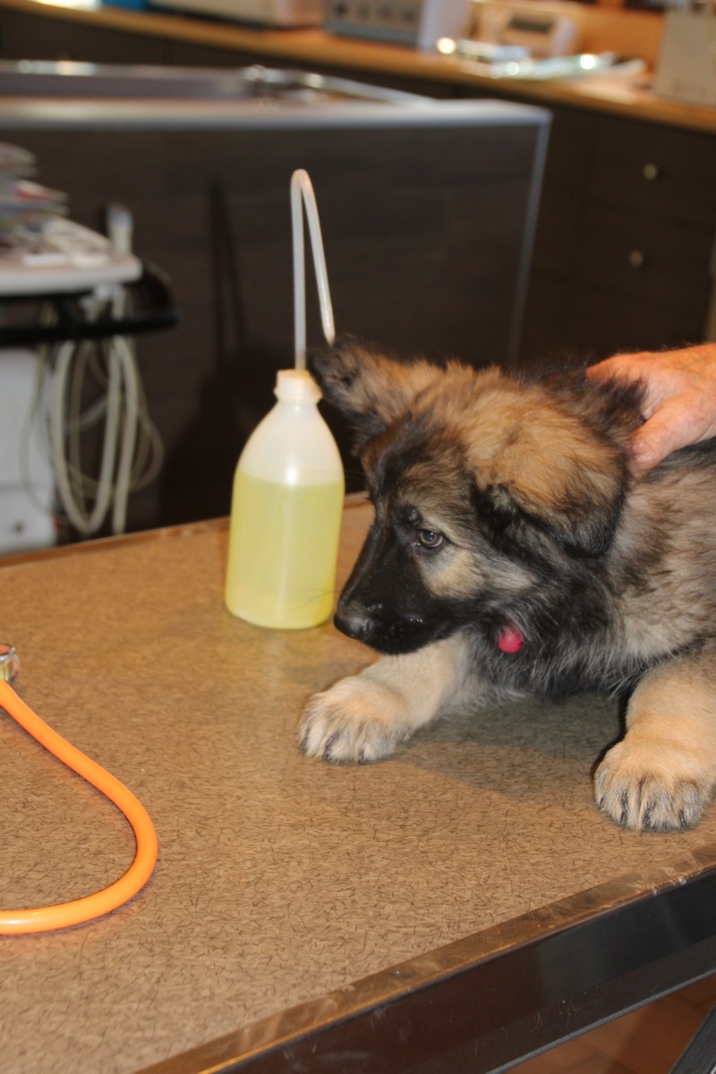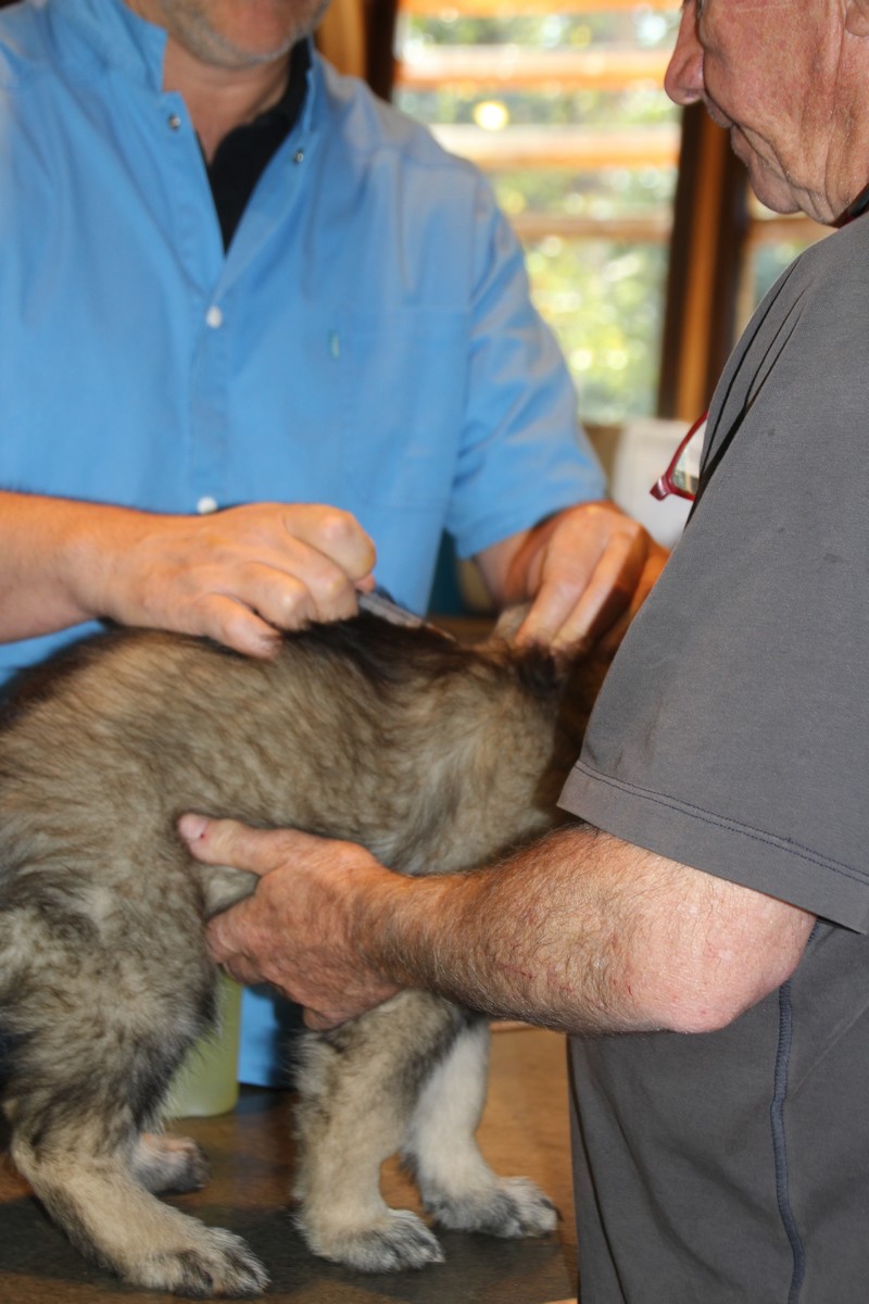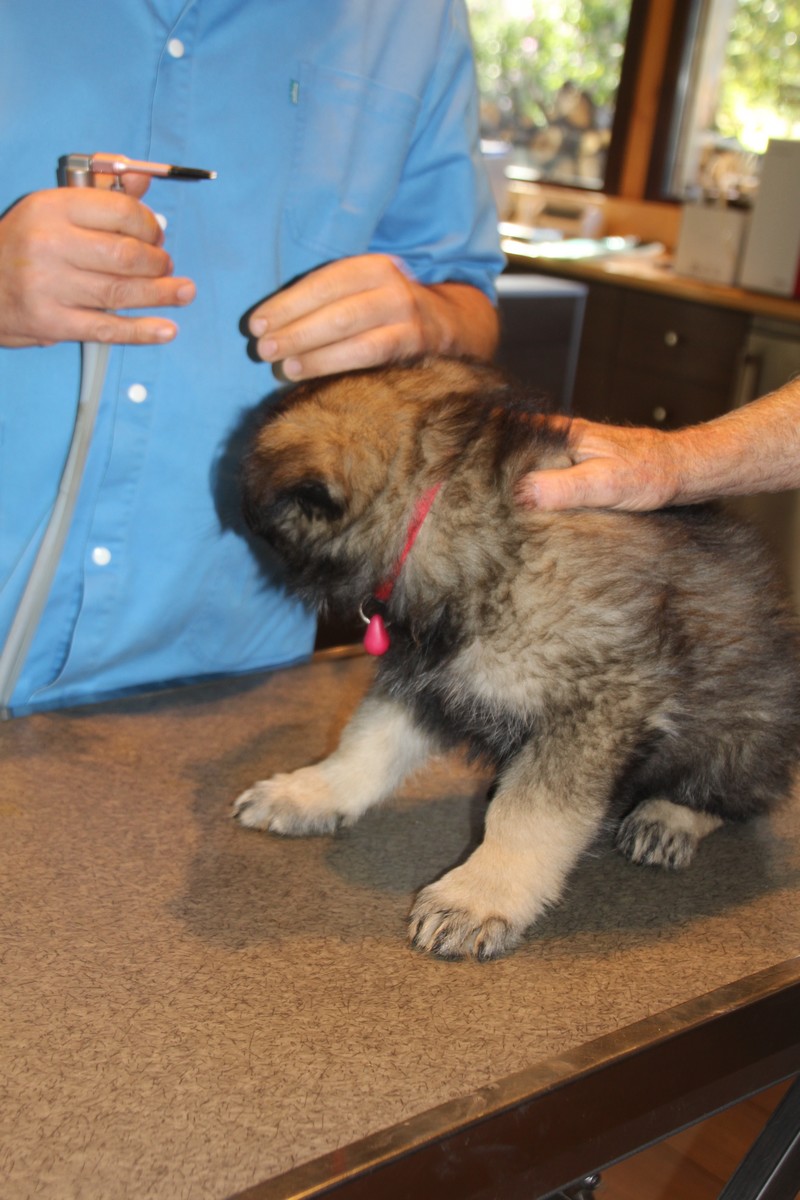 Jeudi c’était le jour de la grande visite. Pour nos 8 semaines tapantes, nous avons eu le droit au grand checkup, tout a été passé en revue, rien n’a été épargné, ausculté de la tête aux pattes vacciné et identifié, nous sommes maintenant prêts pour aller découvrir le monde extérieur.