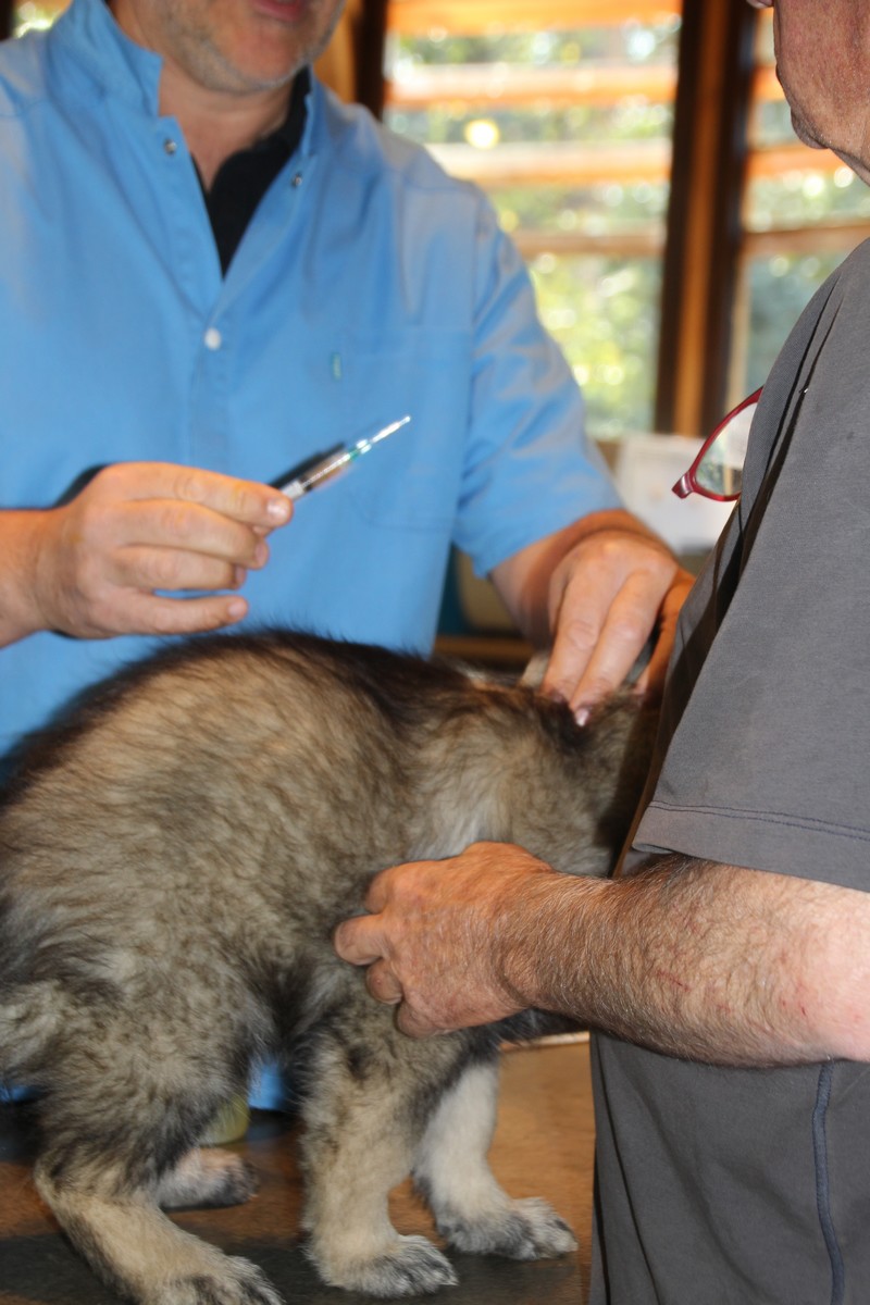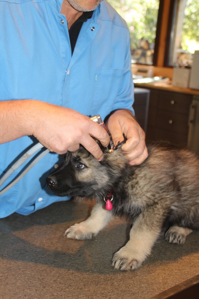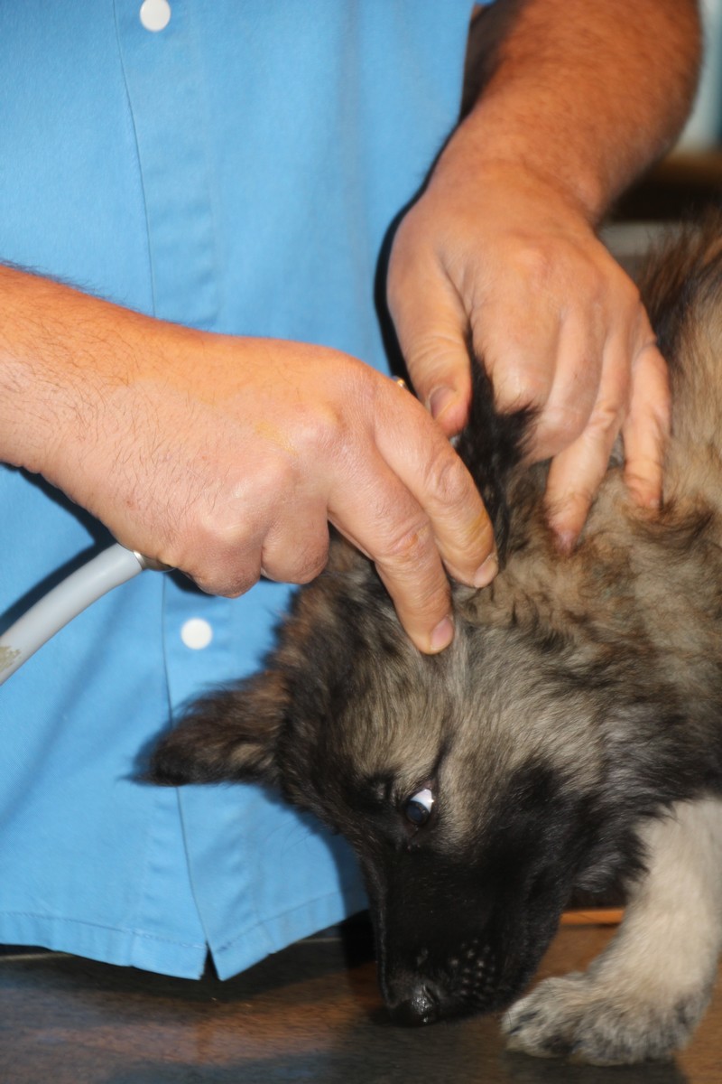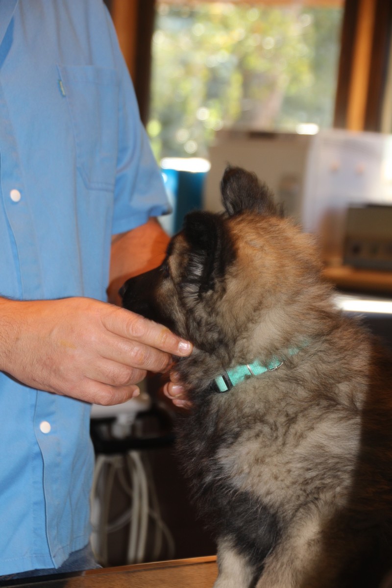 Jeudi c’était le jour de la grande visite. Pour nos 8 semaines tapantes, nous avons eu le droit au grand checkup, tout a été passé en revue, rien n’a été épargné, ausculté de la tête aux pattes vacciné et identifié, nous sommes maintenant prêts pour aller découvrir le monde extérieur.