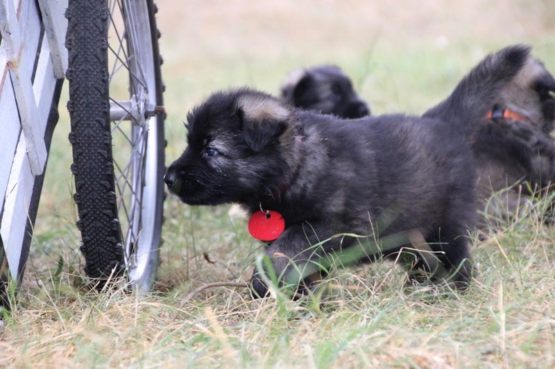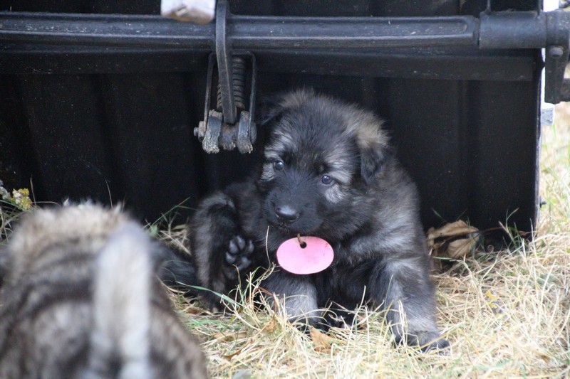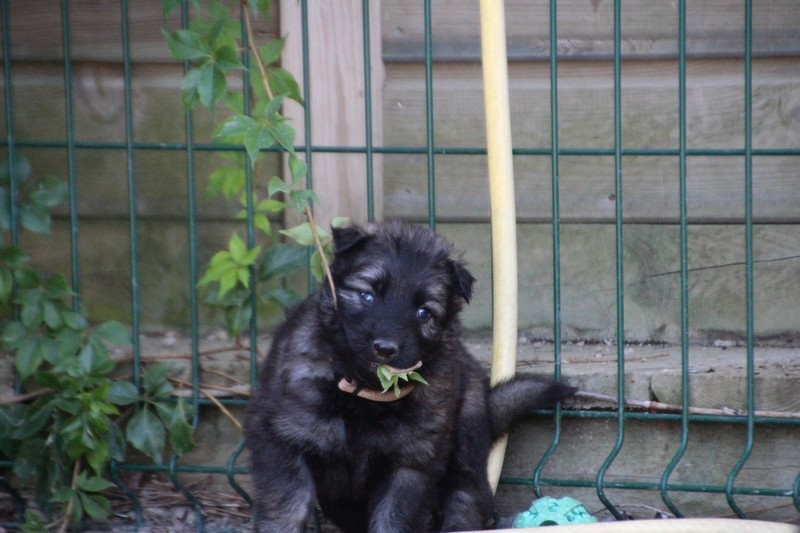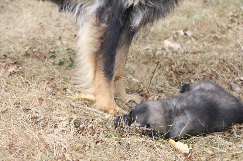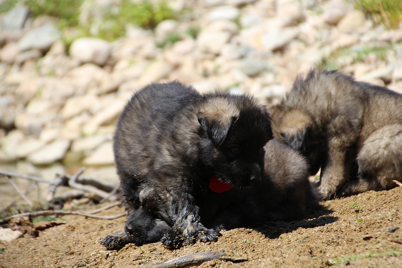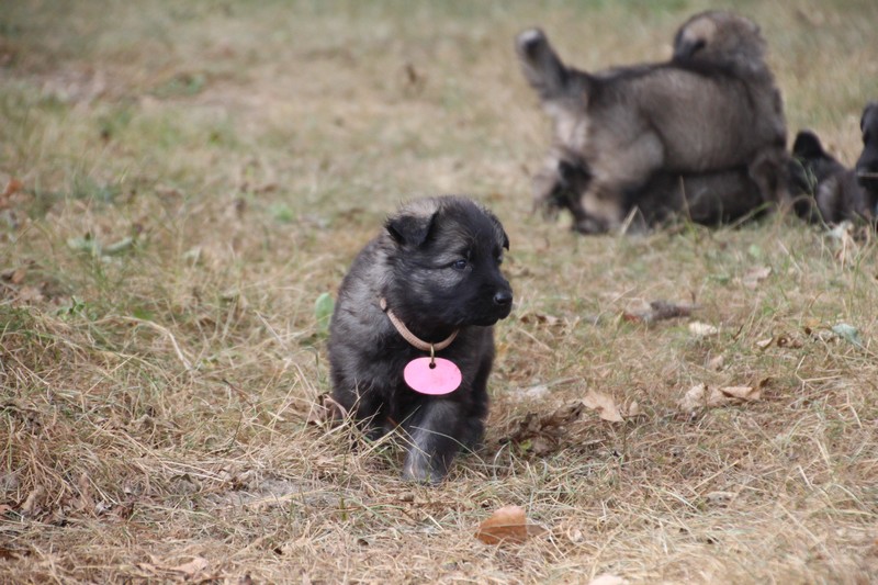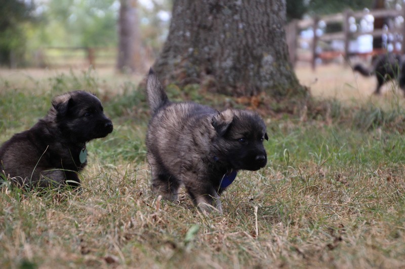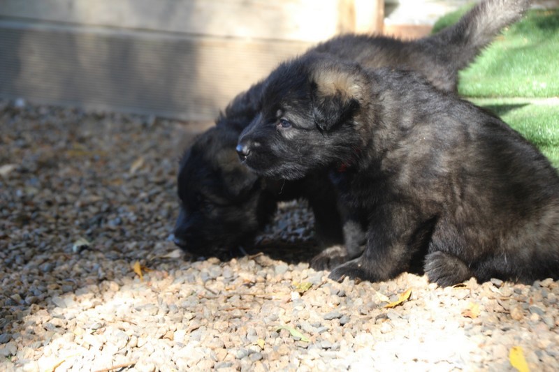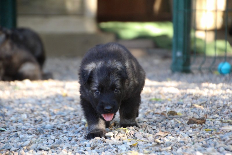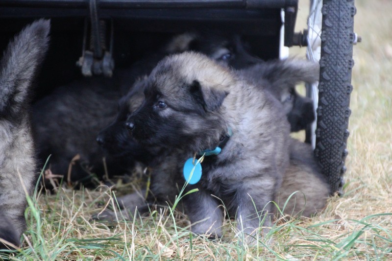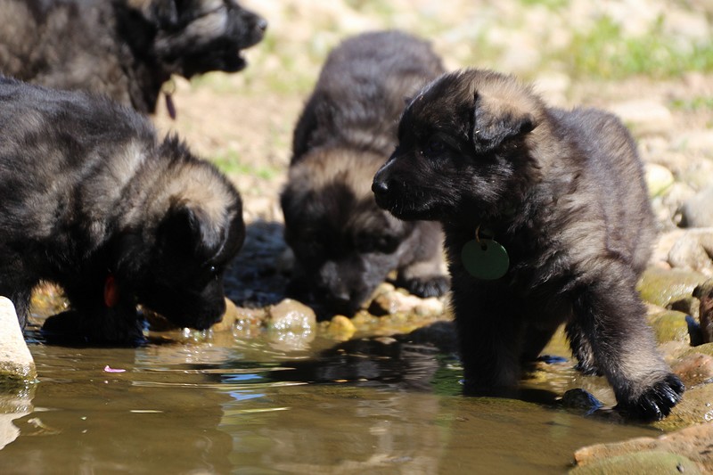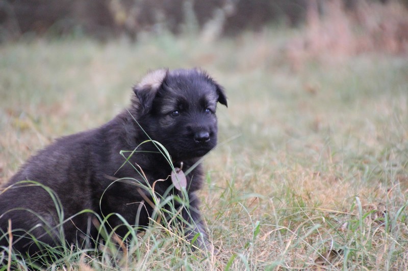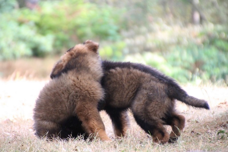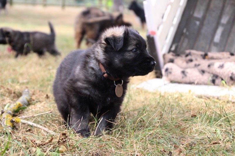 C’est à peu prés notre hauteur, nous gambadons de plus en plus vite et maintenant le parc à chiot n’a plus de secret pour nous. Nous sortons également du parc et apprenons à nous repérer dans les grands espaces et c’est toujours accompagné de maman et du restant de la meute que nous grandissons sereinement.