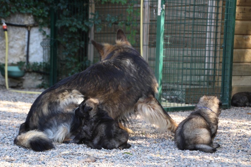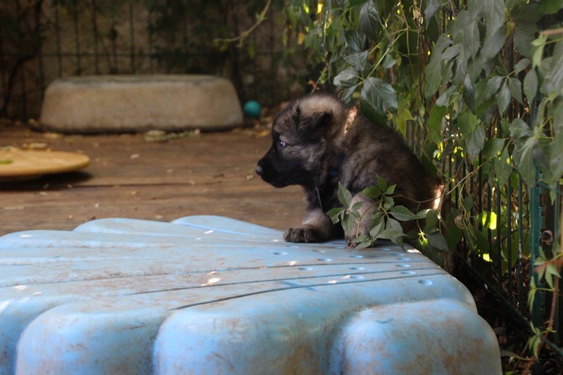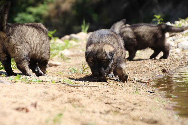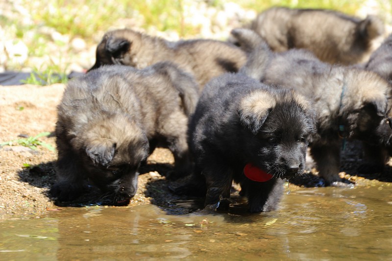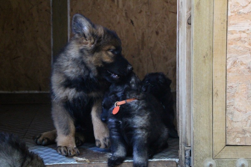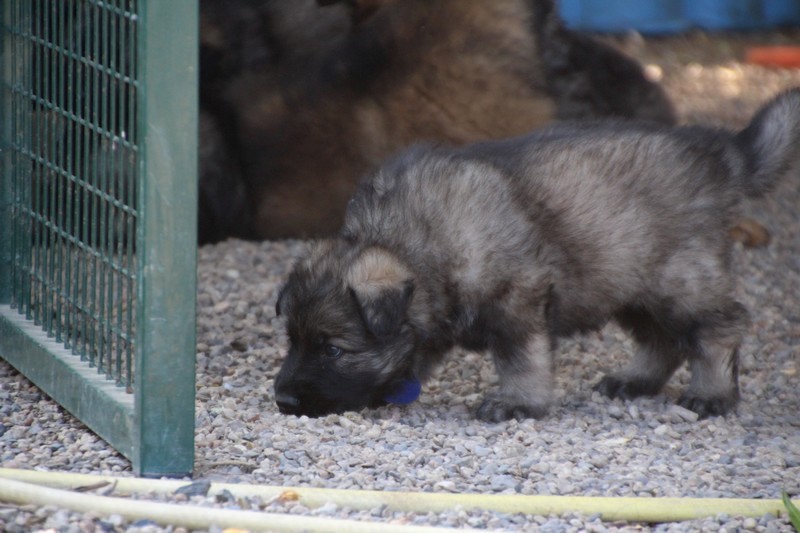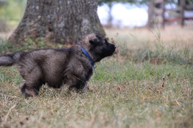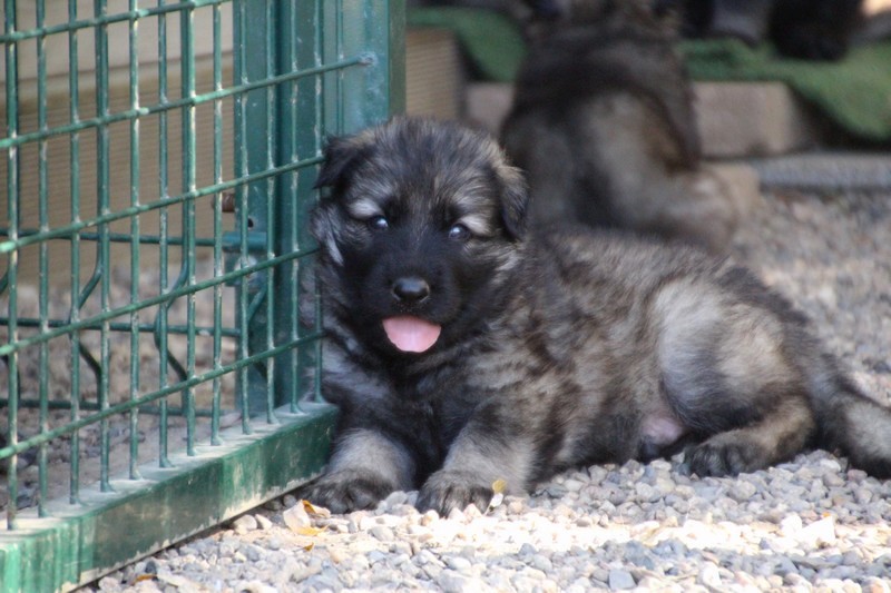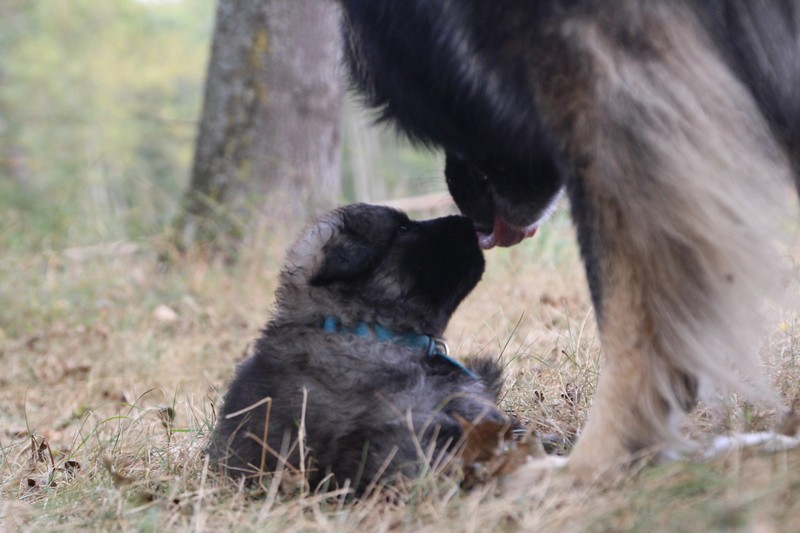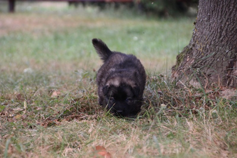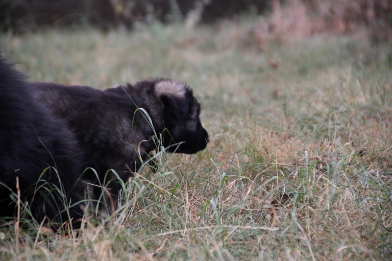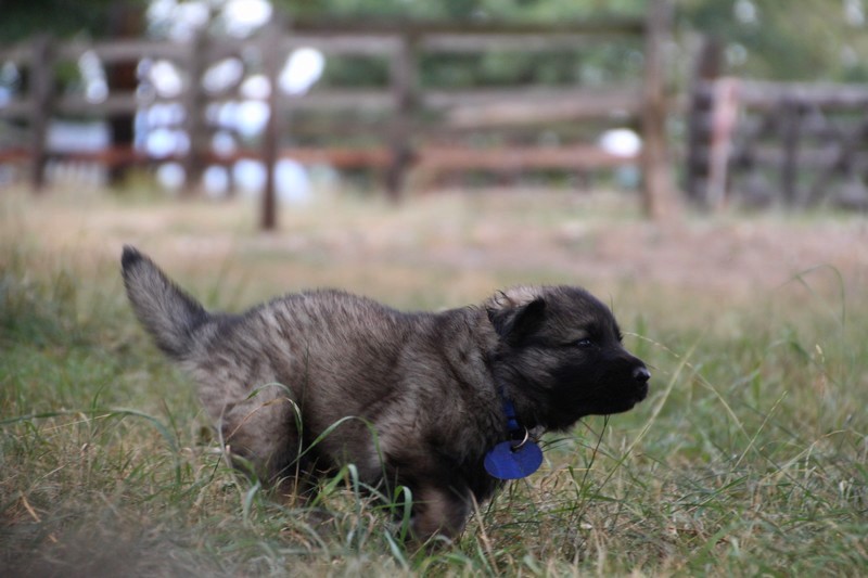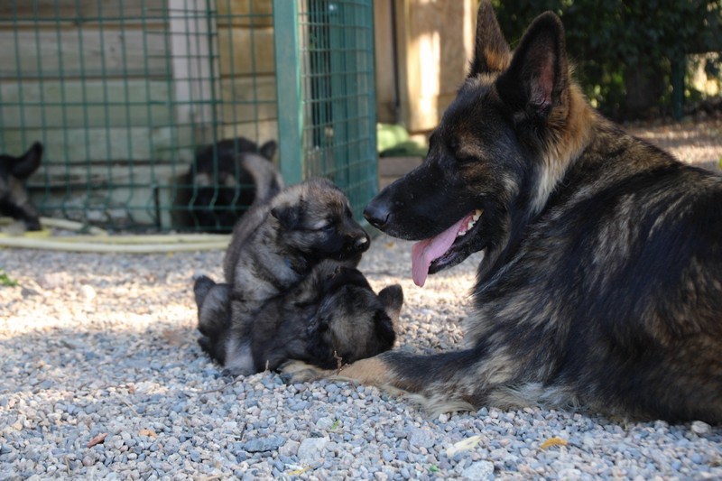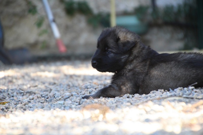 C’est à peu prés notre hauteur, nous gambadons de plus en plus vite et maintenant le parc à chiot n’a plus de secret pour nous. Nous sortons également du parc et apprenons à nous repérer dans les grands espaces et c’est toujours accompagné de maman et du restant de la meute que nous grandissons sereinement.