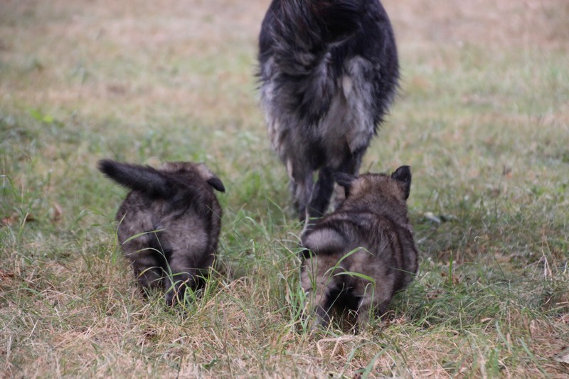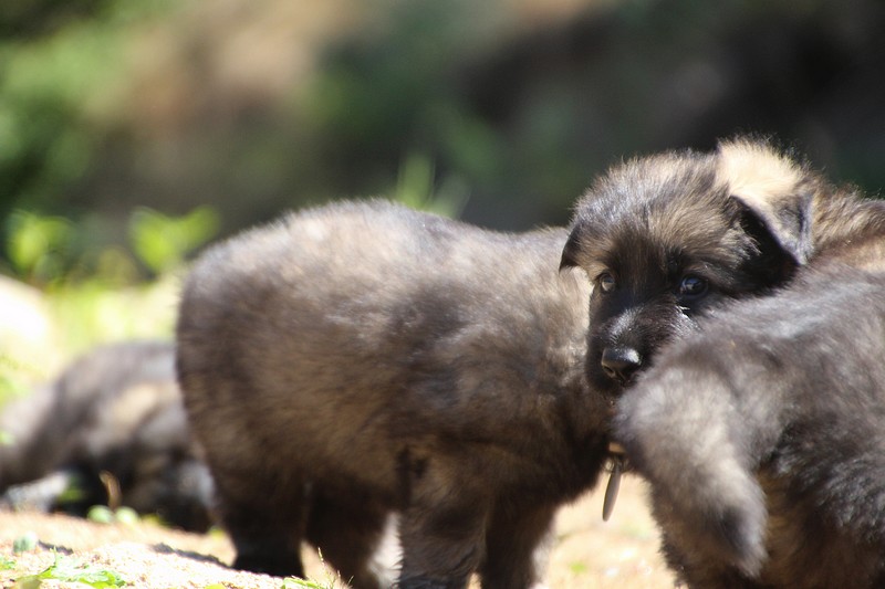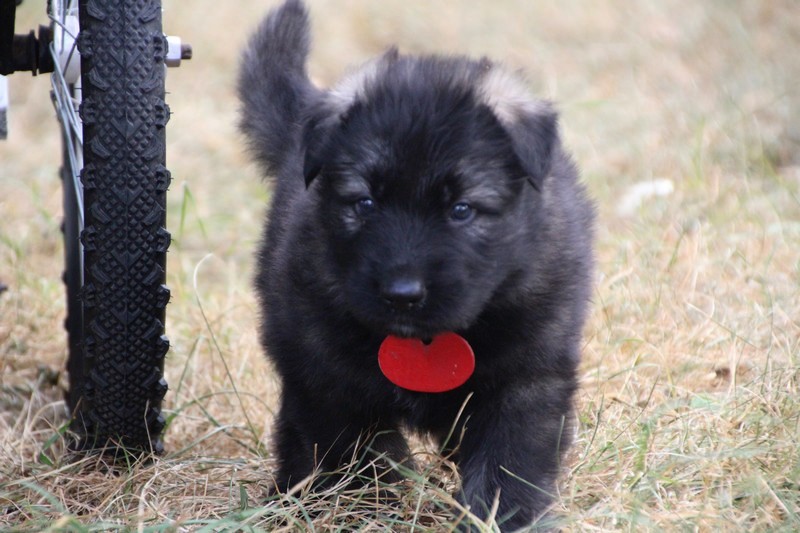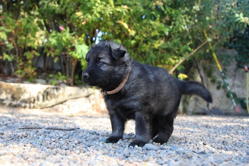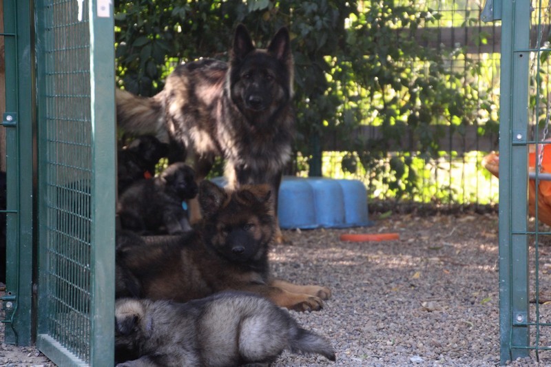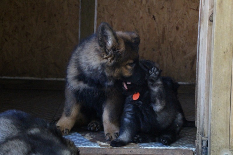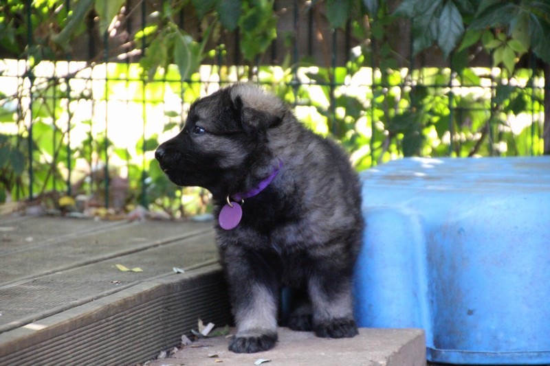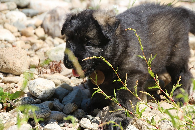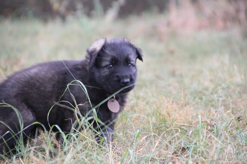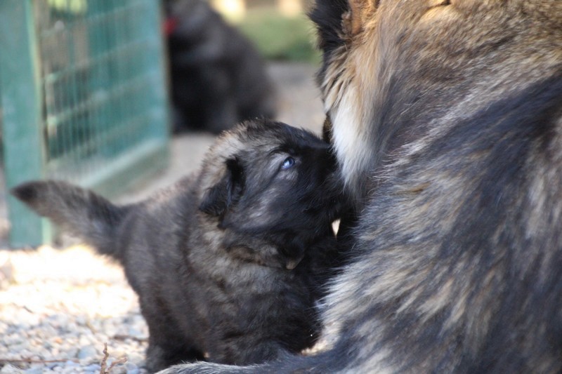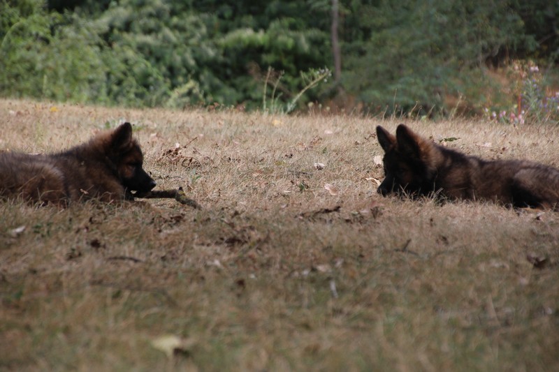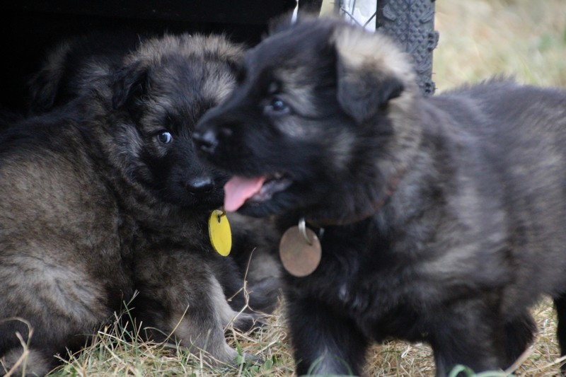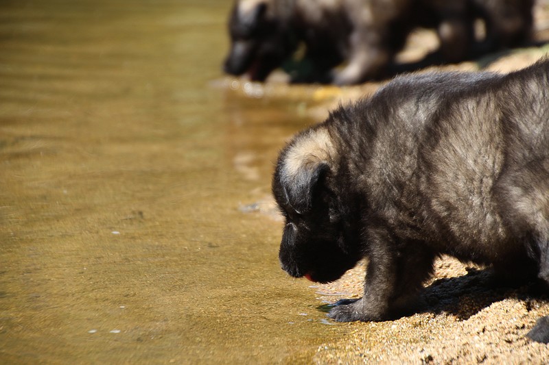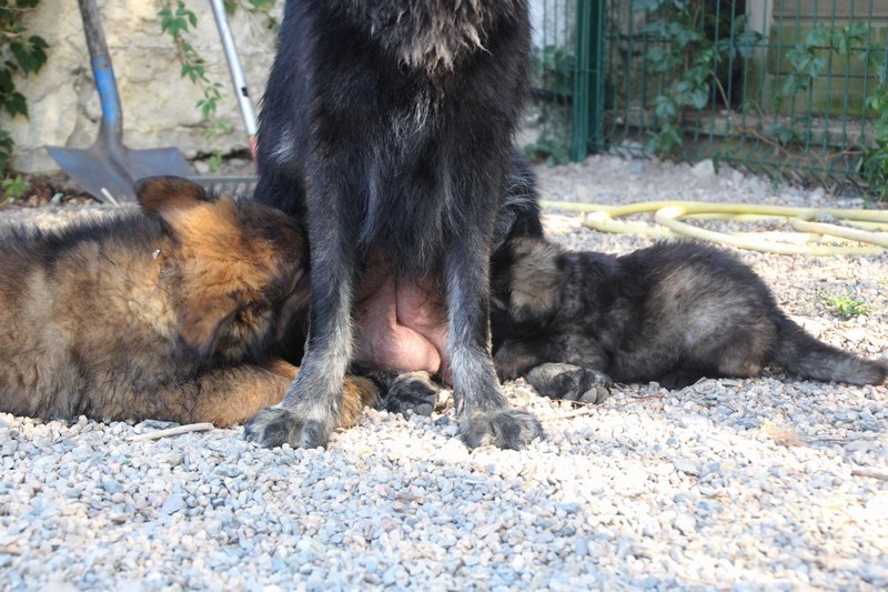 C’est à peu prés notre hauteur, nous gambadons de plus en plus vite et maintenant le parc à chiot n’a plus de secret pour nous. Nous sortons également du parc et apprenons à nous repérer dans les grands espaces et c’est toujours accompagné de maman et du restant de la meute que nous grandissons sereinement.