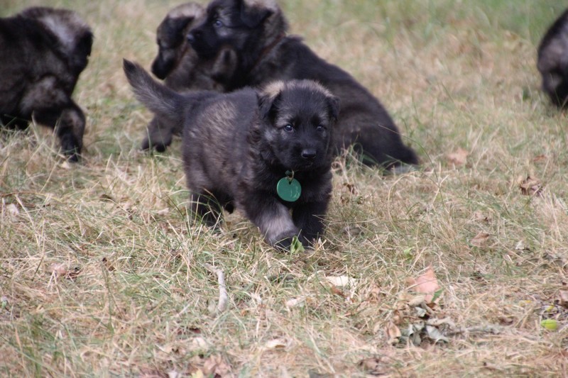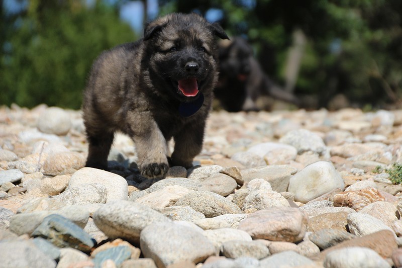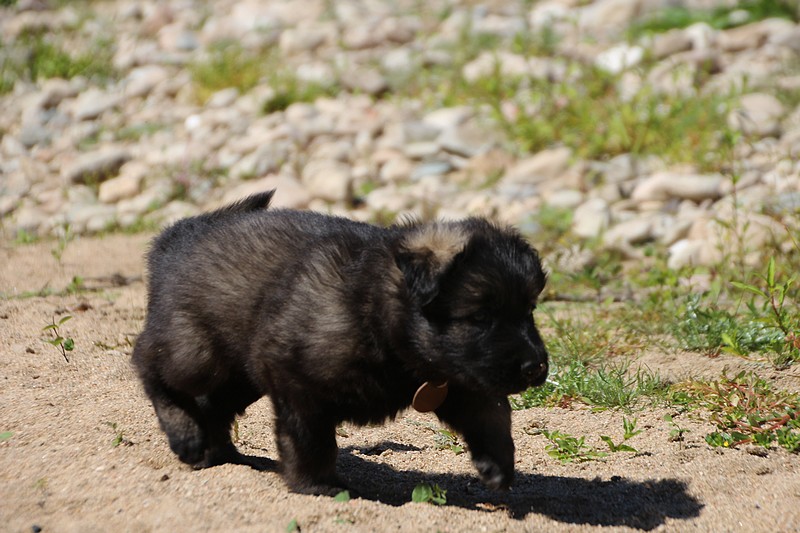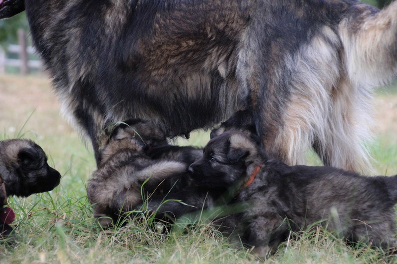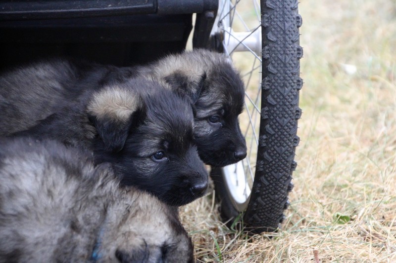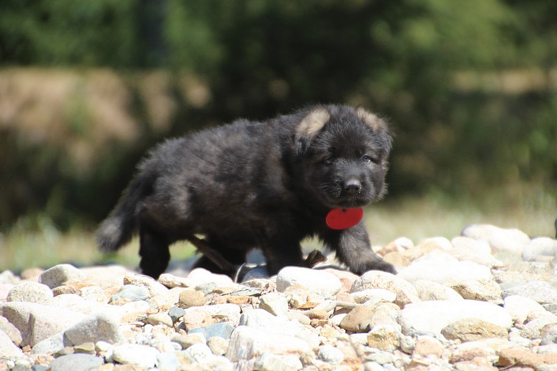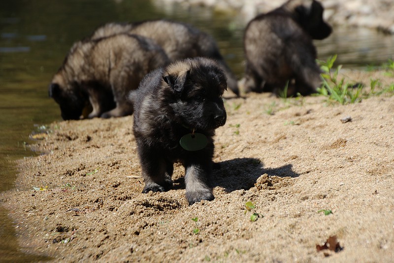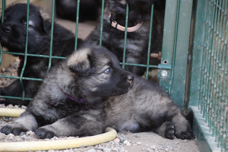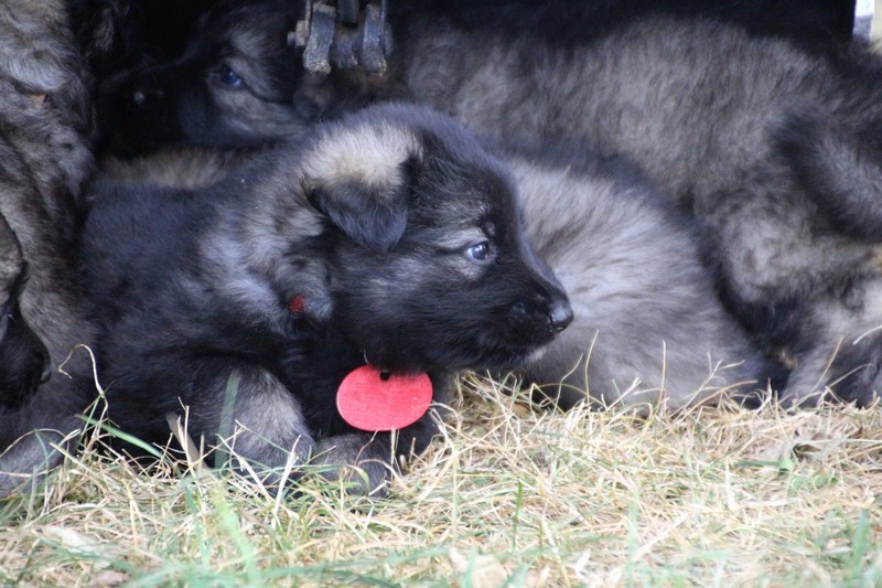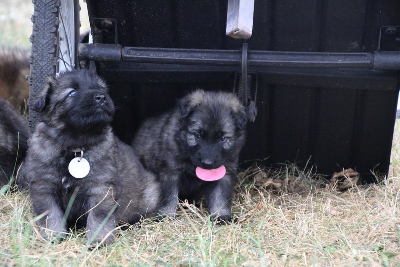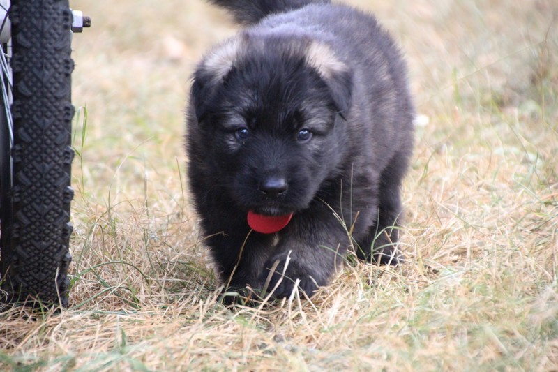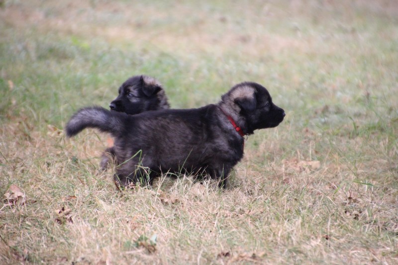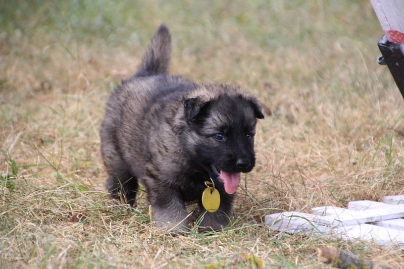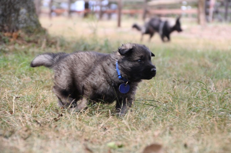 C’est à peu prés notre hauteur, nous gambadons de plus en plus vite et maintenant le parc à chiot n’a plus de secret pour nous. Nous sortons également du parc et apprenons à nous repérer dans les grands espaces et c’est toujours accompagné de maman et du restant de la meute que nous grandissons sereinement.
