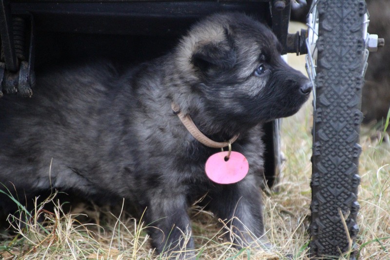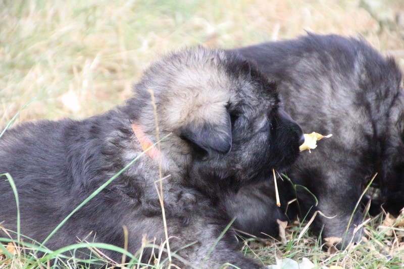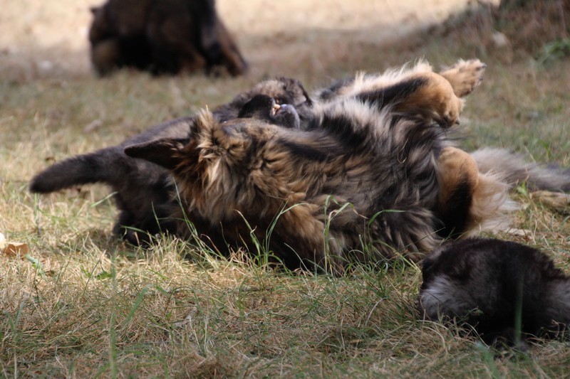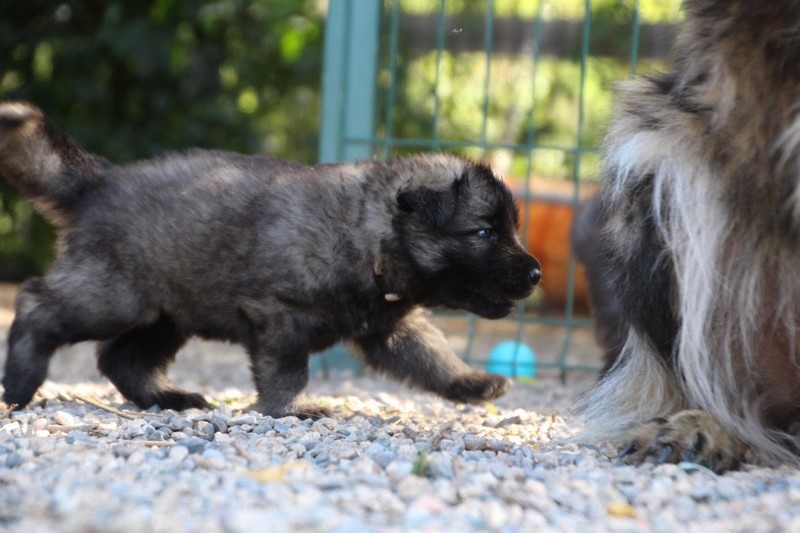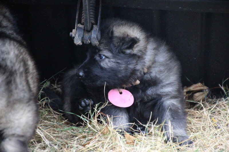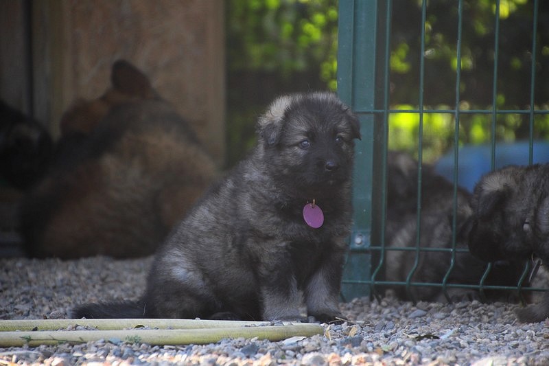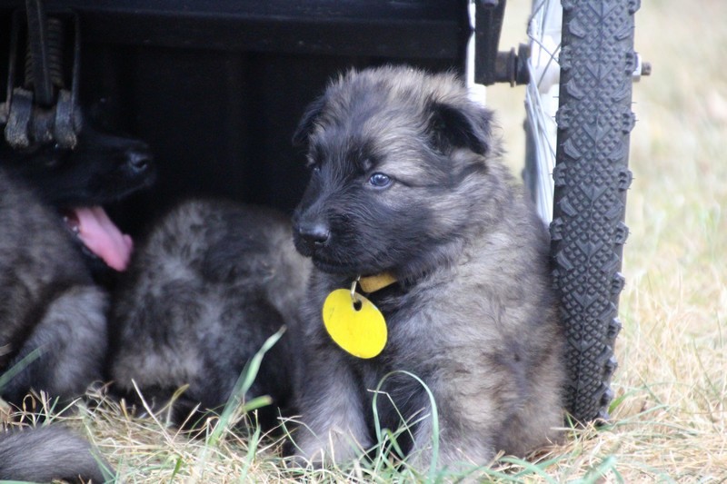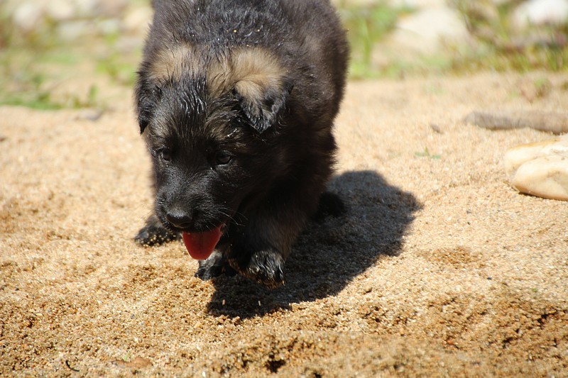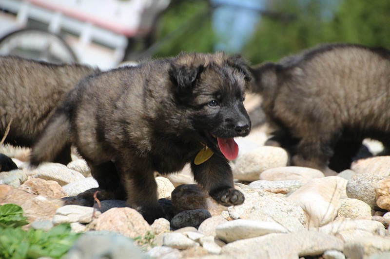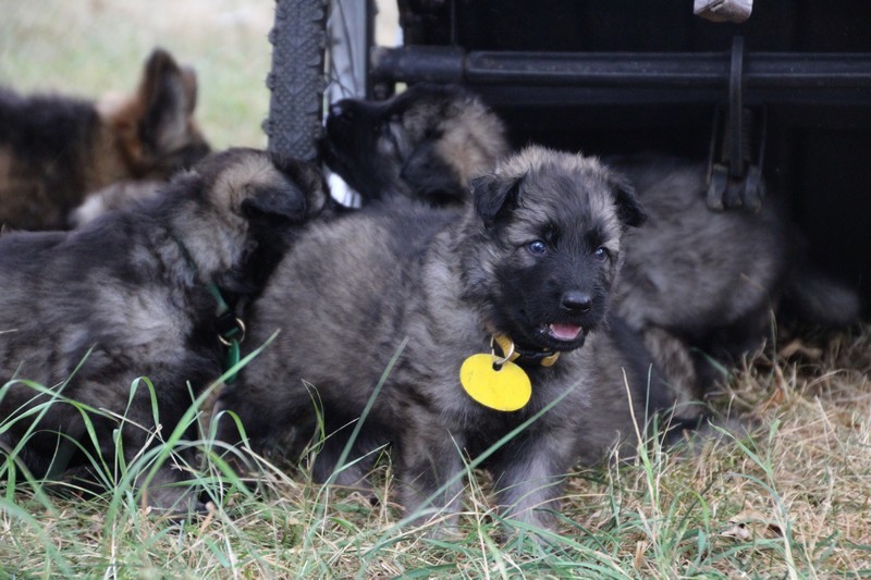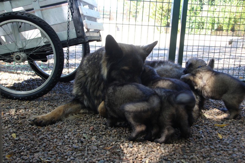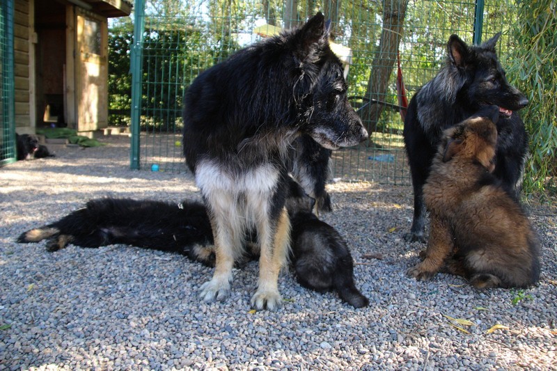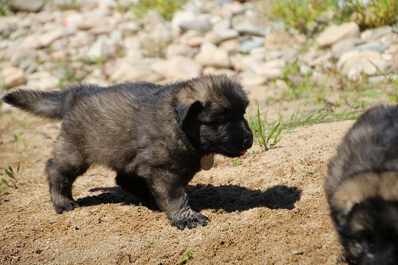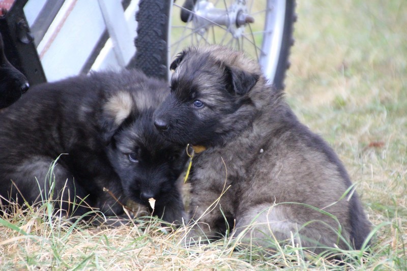 C’est à peu prés notre hauteur, nous gambadons de plus en plus vite et maintenant le parc à chiot n’a plus de secret pour nous. Nous sortons également du parc et apprenons à nous repérer dans les grands espaces et c’est toujours accompagné de maman et du restant de la meute que nous grandissons sereinement.