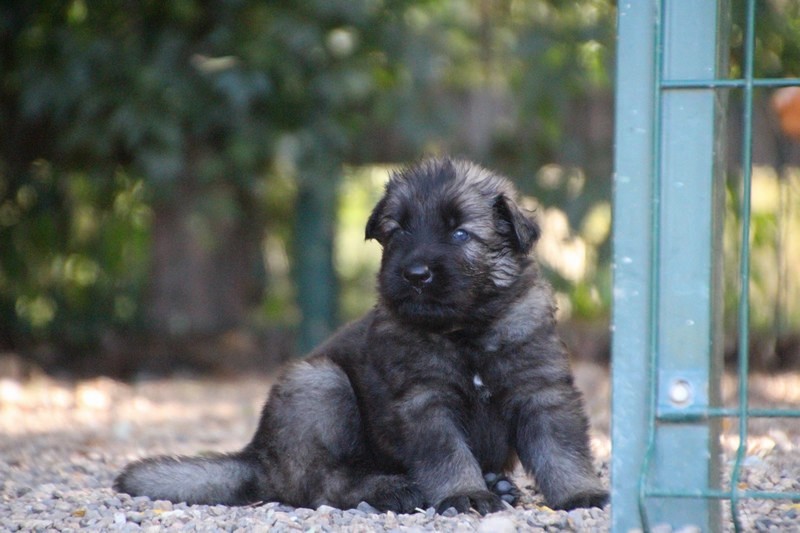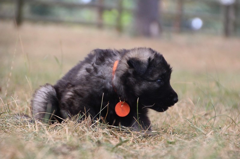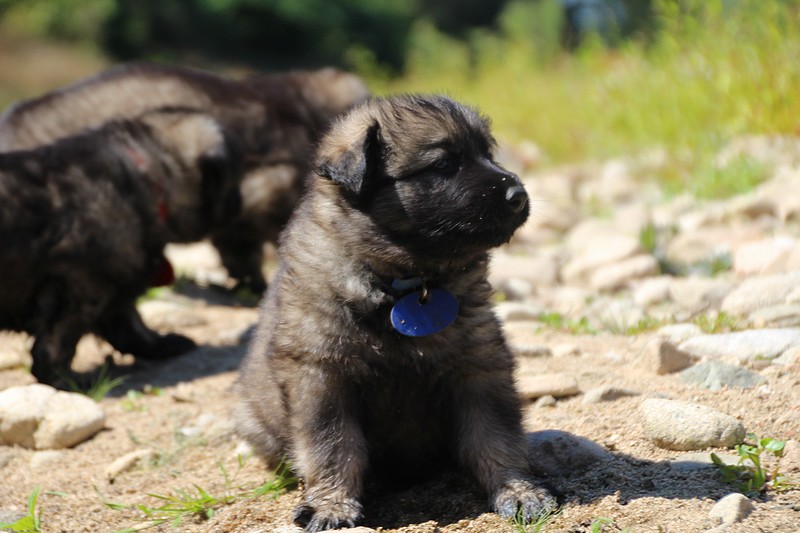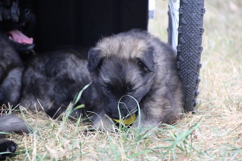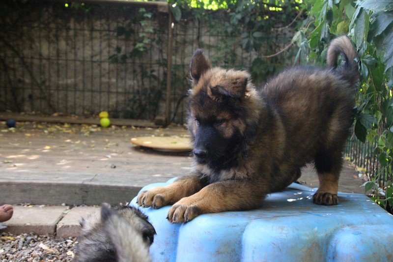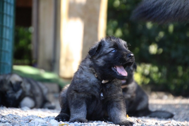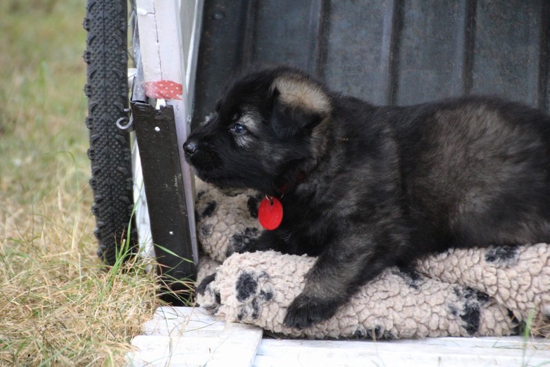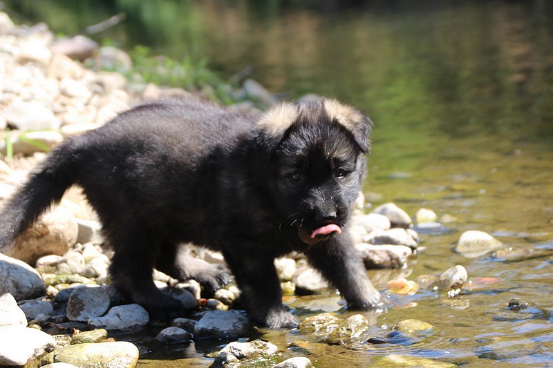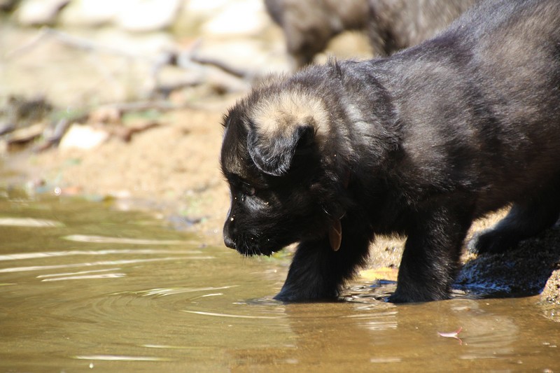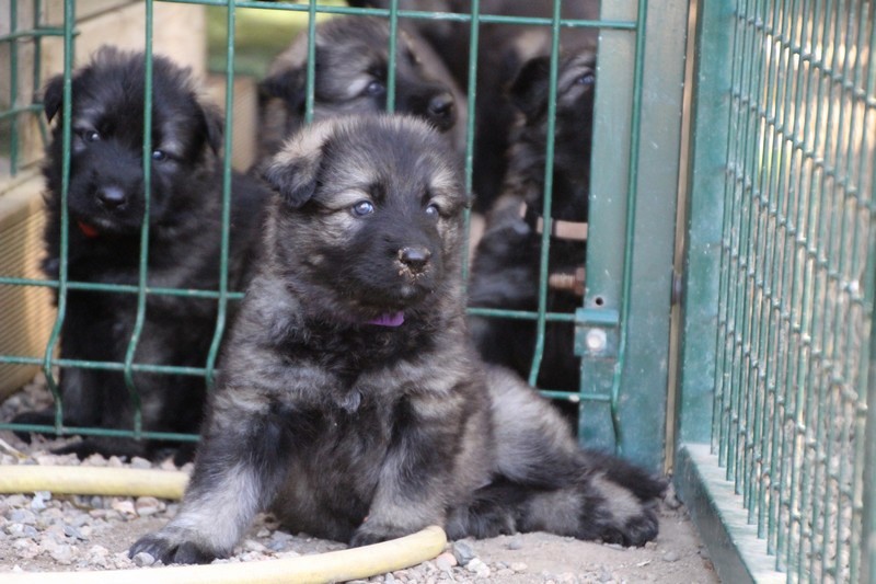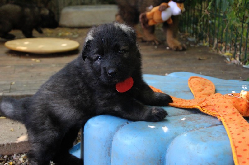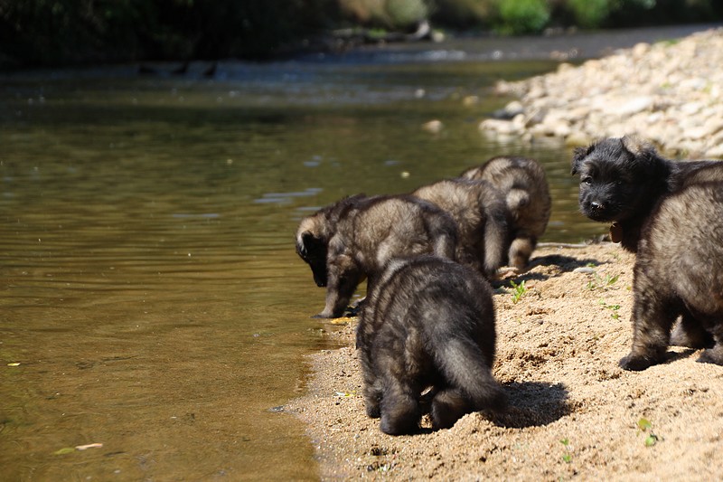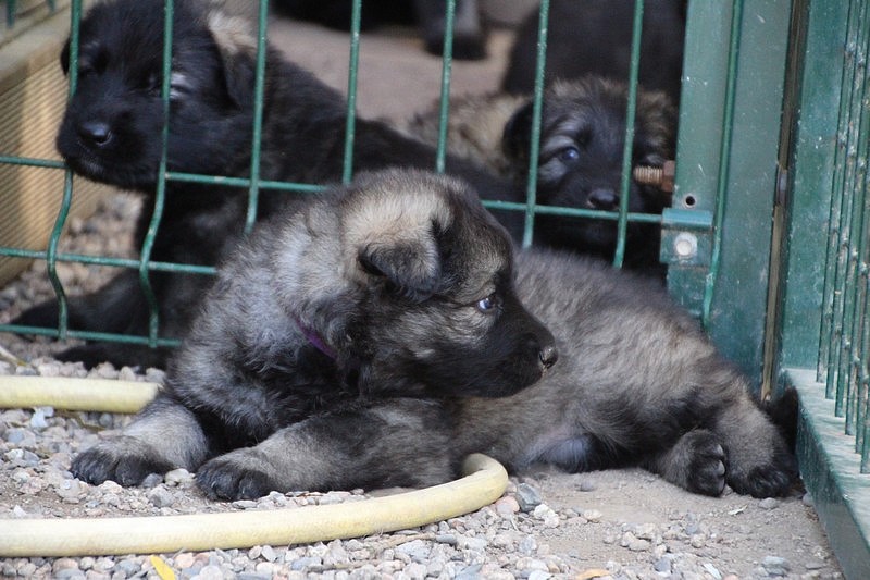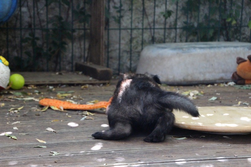 C’est à peu prés notre hauteur, nous gambadons de plus en plus vite et maintenant le parc à chiot n’a plus de secret pour nous. Nous sortons également du parc et apprenons à nous repérer dans les grands espaces et c’est toujours accompagné de maman et du restant de la meute que nous grandissons sereinement.