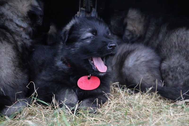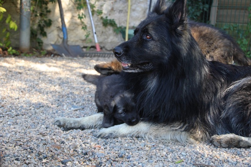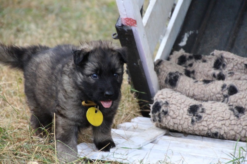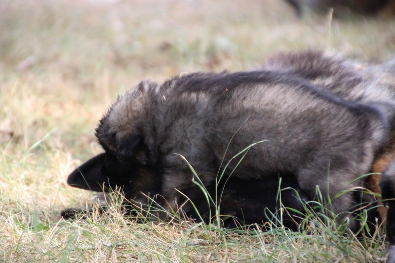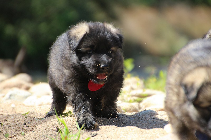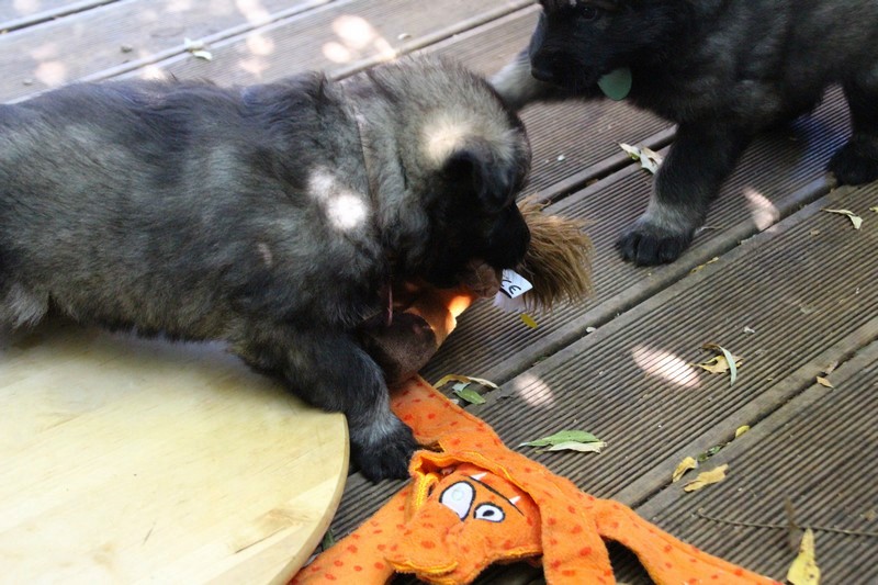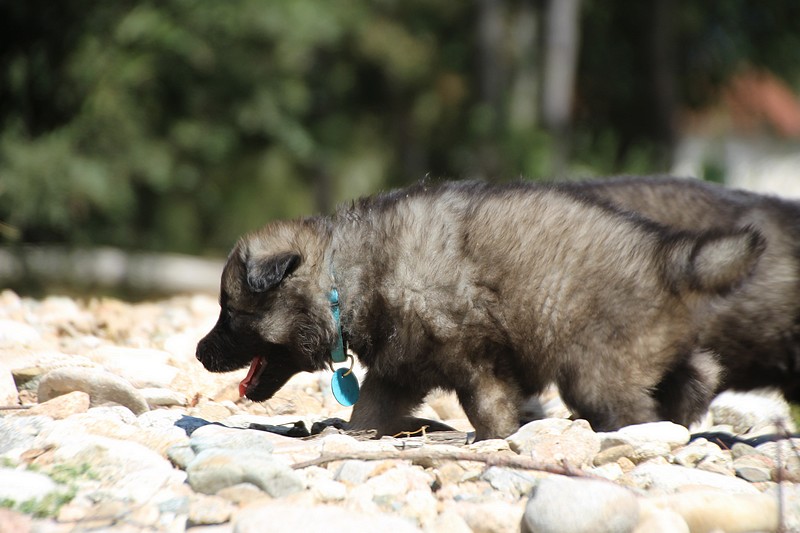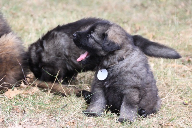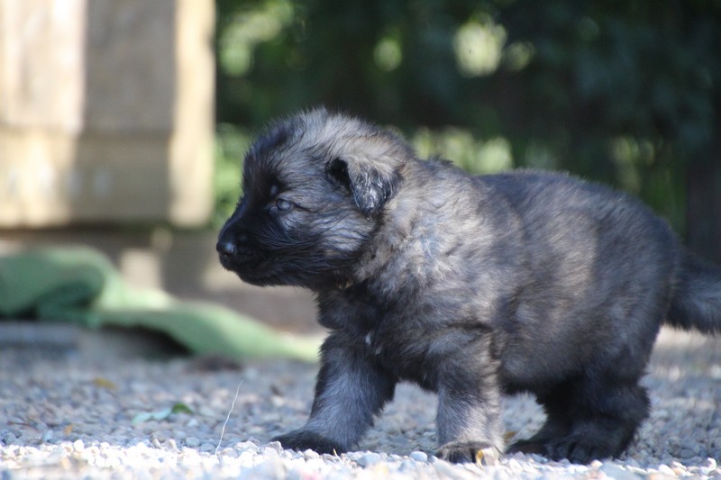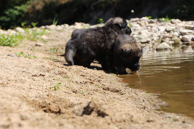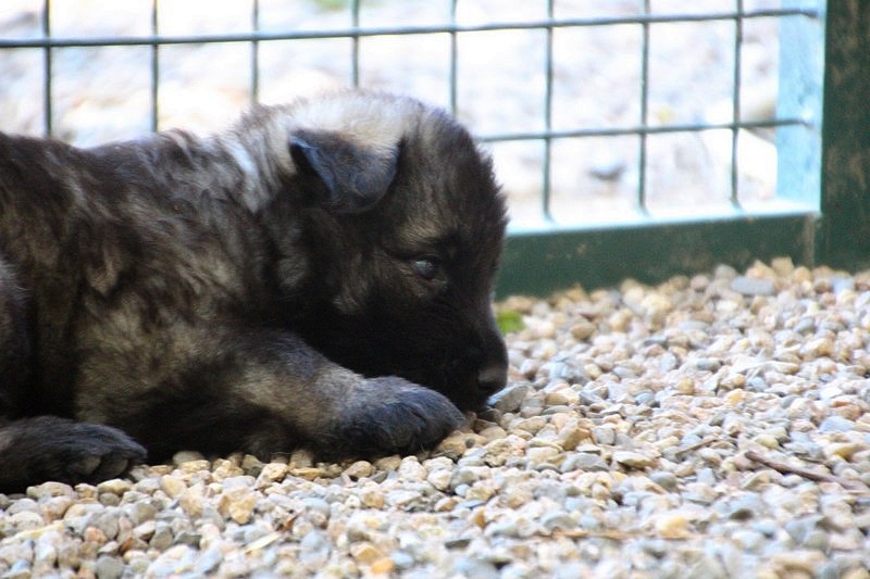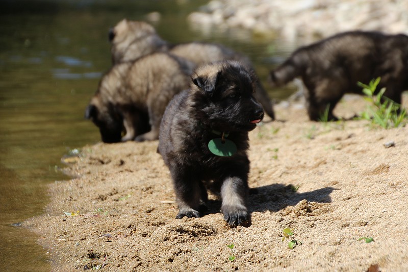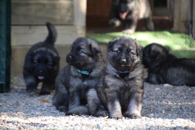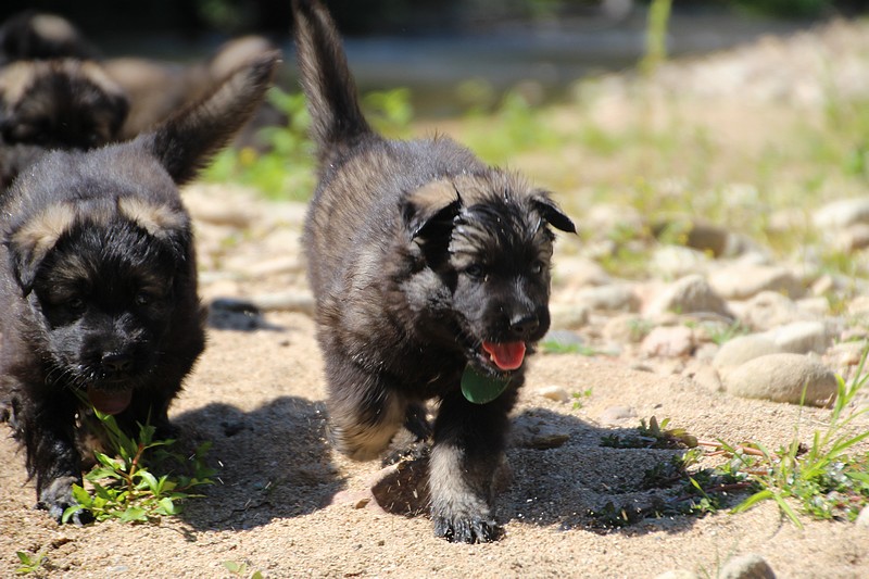 C’est à peu prés notre hauteur, nous gambadons de plus en plus vite et maintenant le parc à chiot n’a plus de secret pour nous. Nous sortons également du parc et apprenons à nous repérer dans les grands espaces et c’est toujours accompagné de maman et du restant de la meute que nous grandissons sereinement.