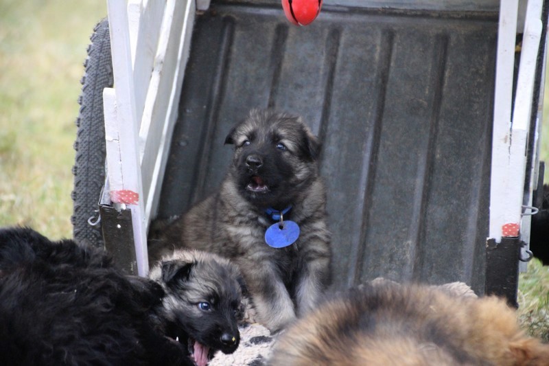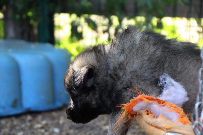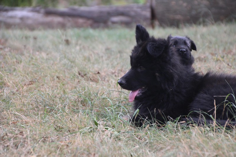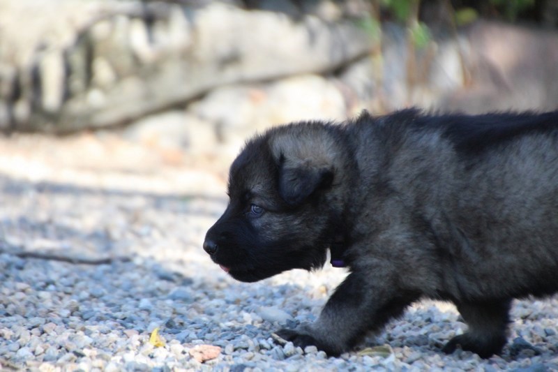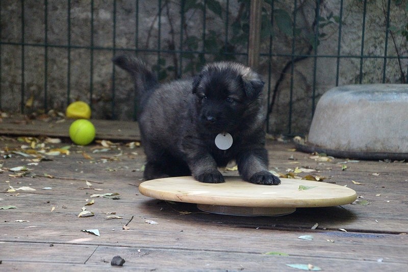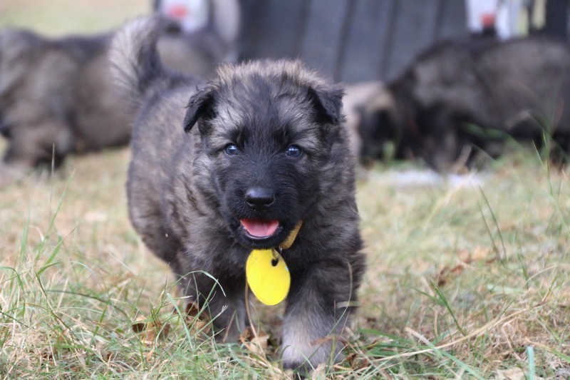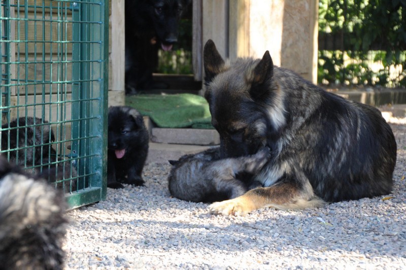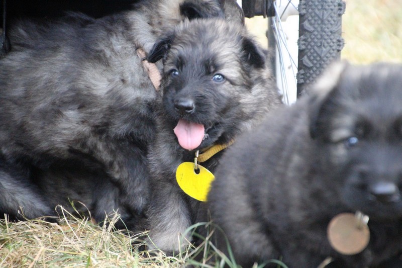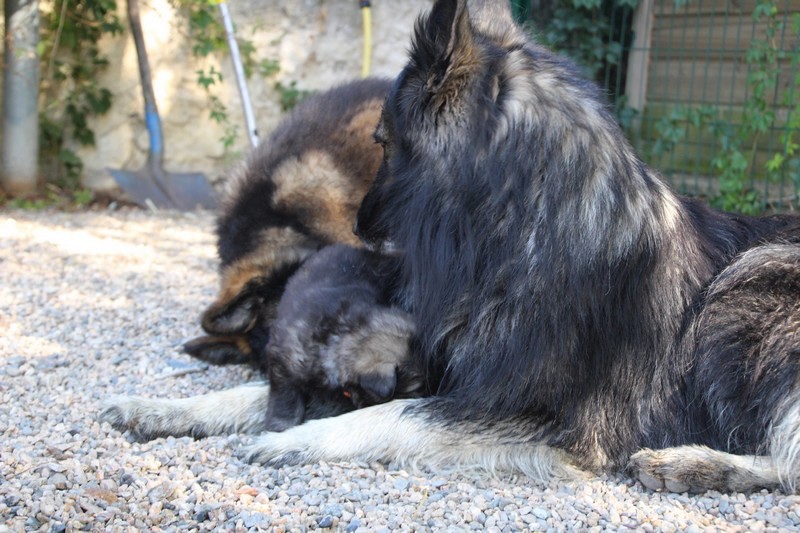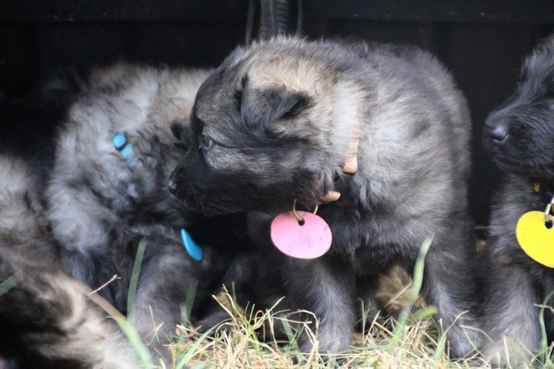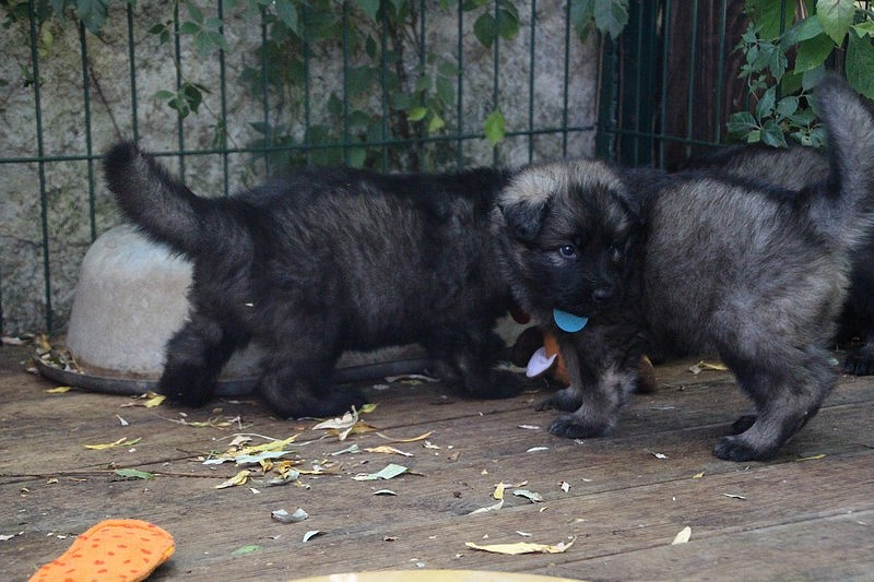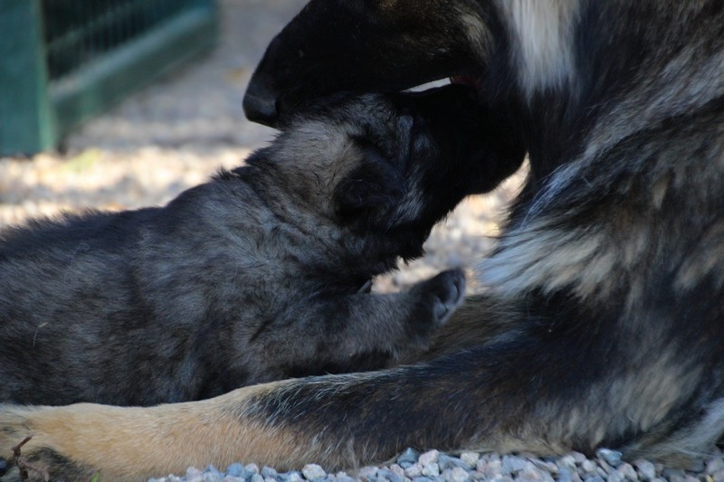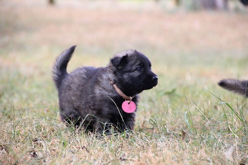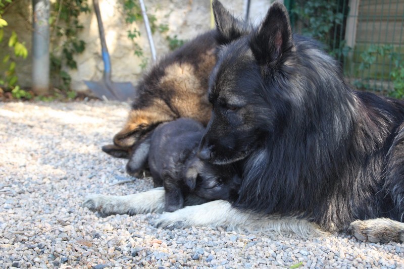 C’est à peu prés notre hauteur, nous gambadons de plus en plus vite et maintenant le parc à chiot n’a plus de secret pour nous. Nous sortons également du parc et apprenons à nous repérer dans les grands espaces et c’est toujours accompagné de maman et du restant de la meute que nous grandissons sereinement.