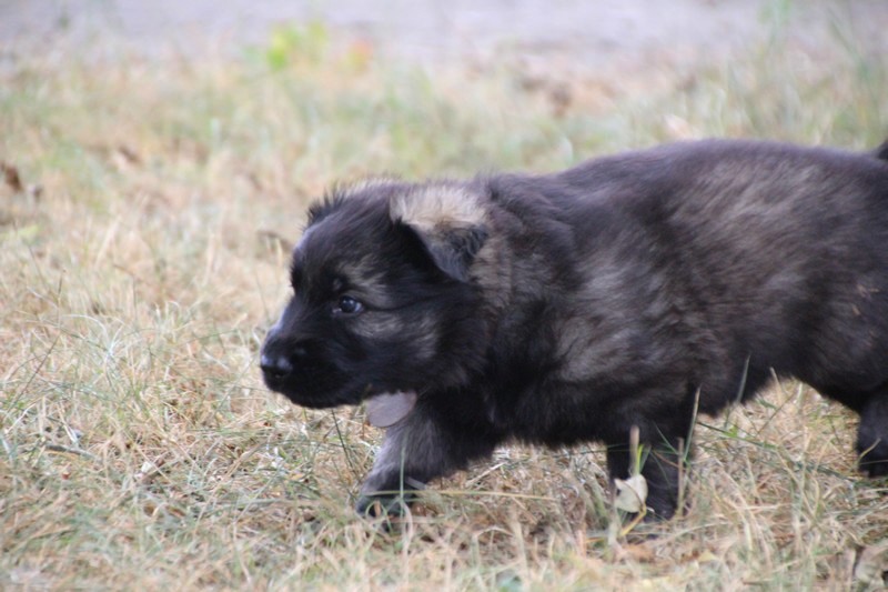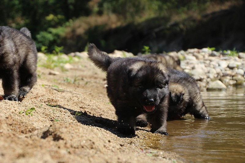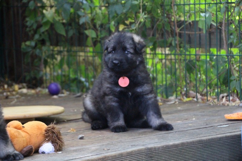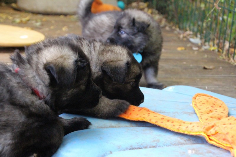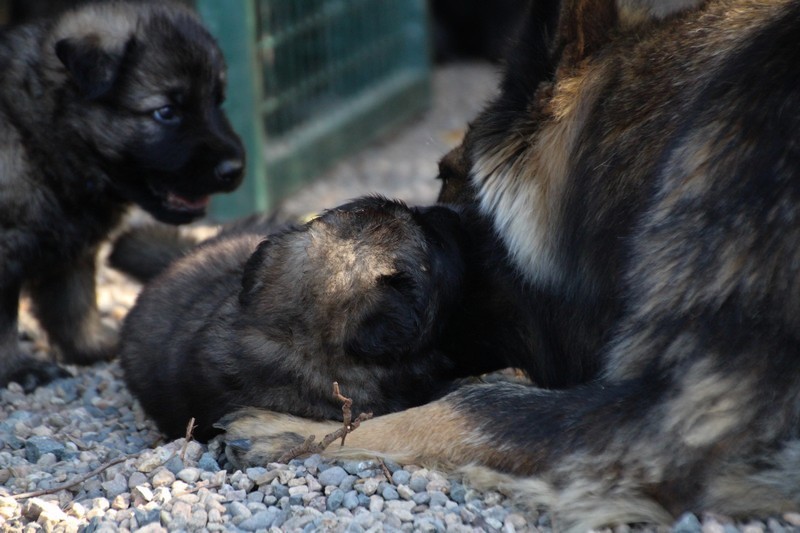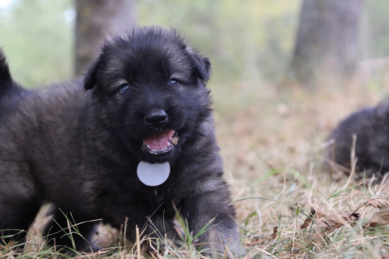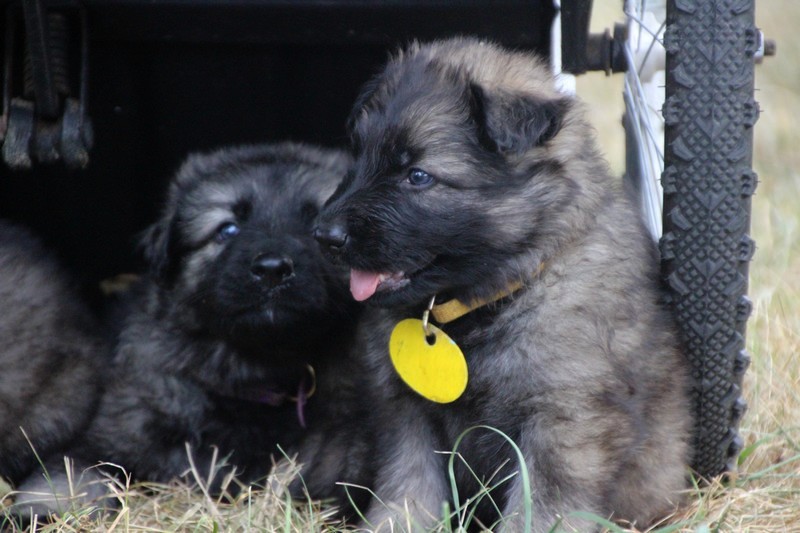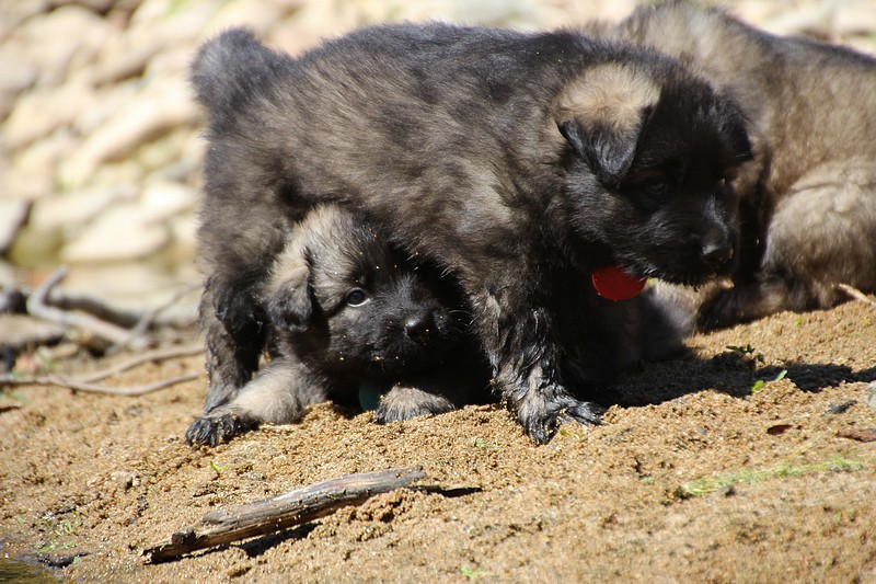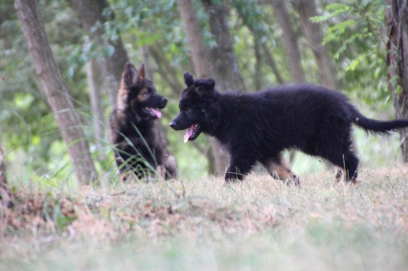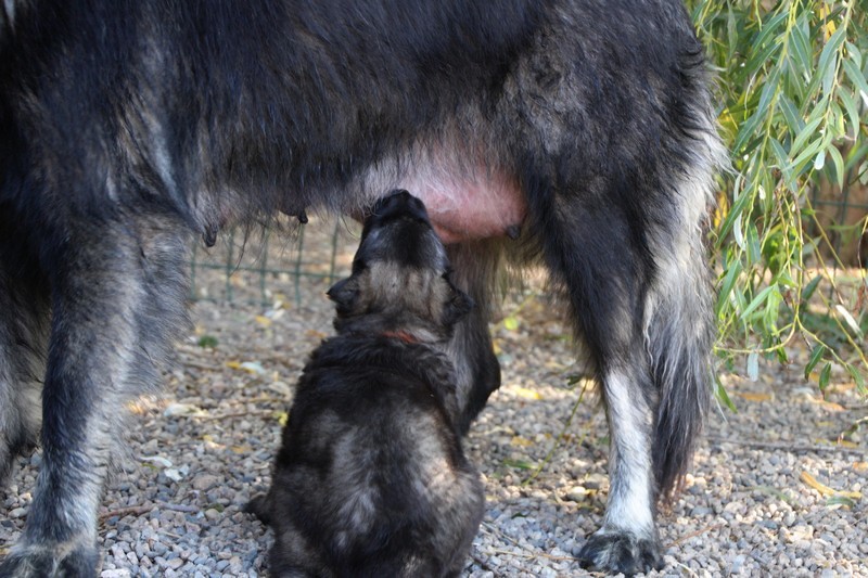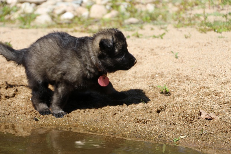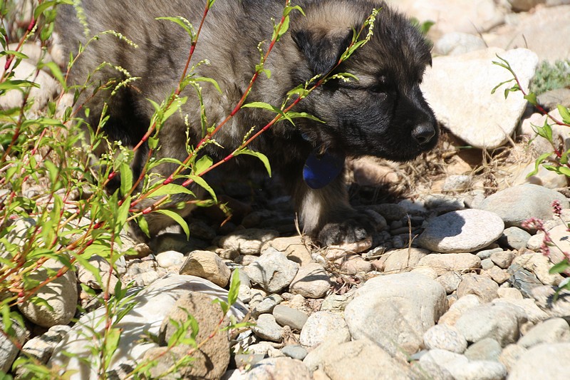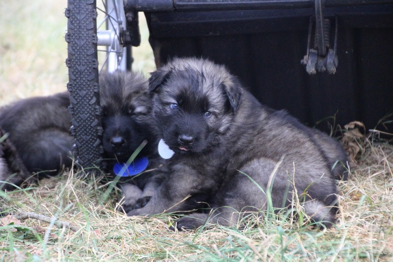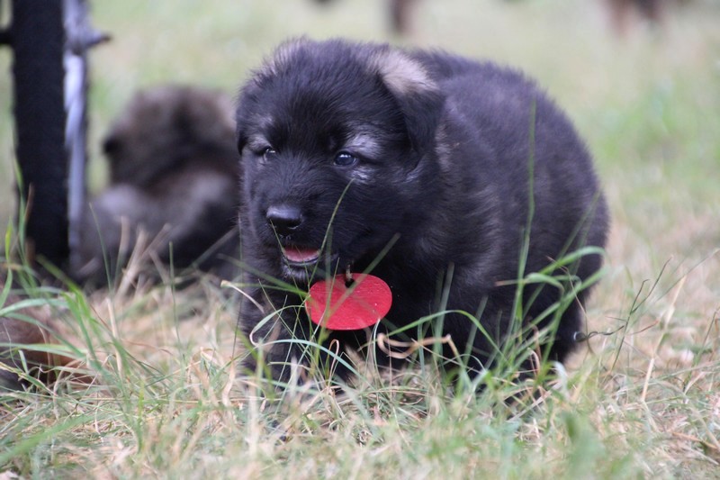 C’est à peu prés notre hauteur, nous gambadons de plus en plus vite et maintenant le parc à chiot n’a plus de secret pour nous. Nous sortons également du parc et apprenons à nous repérer dans les grands espaces et c’est toujours accompagné de maman et du restant de la meute que nous grandissons sereinement.