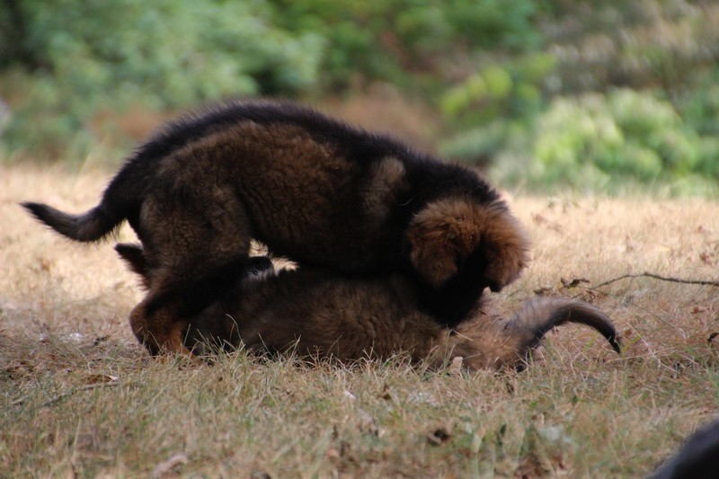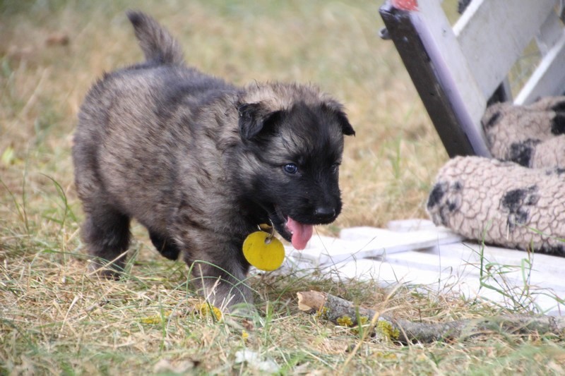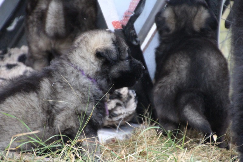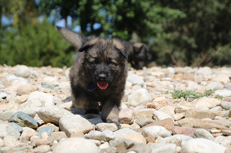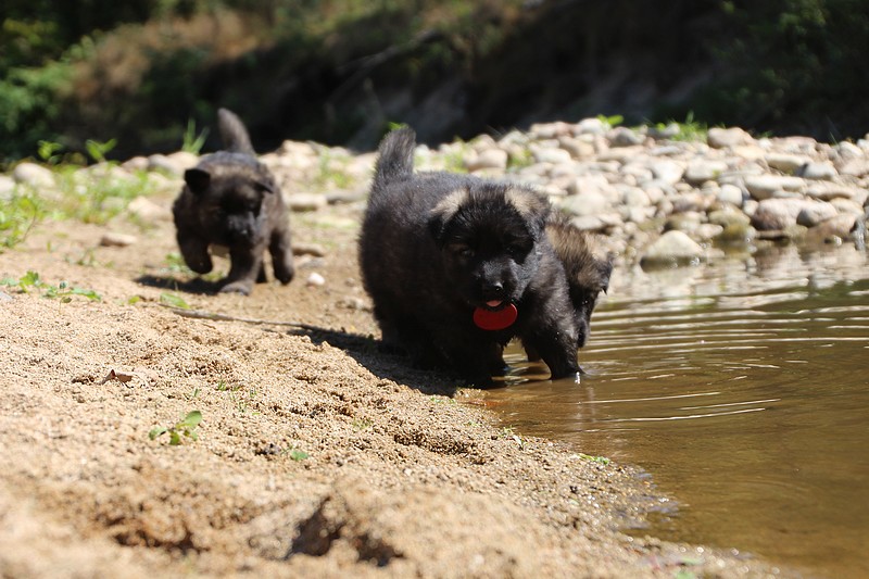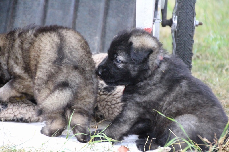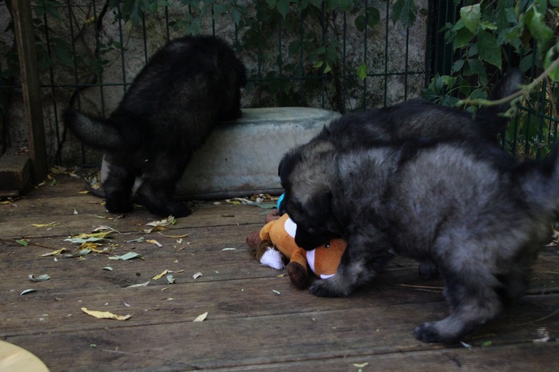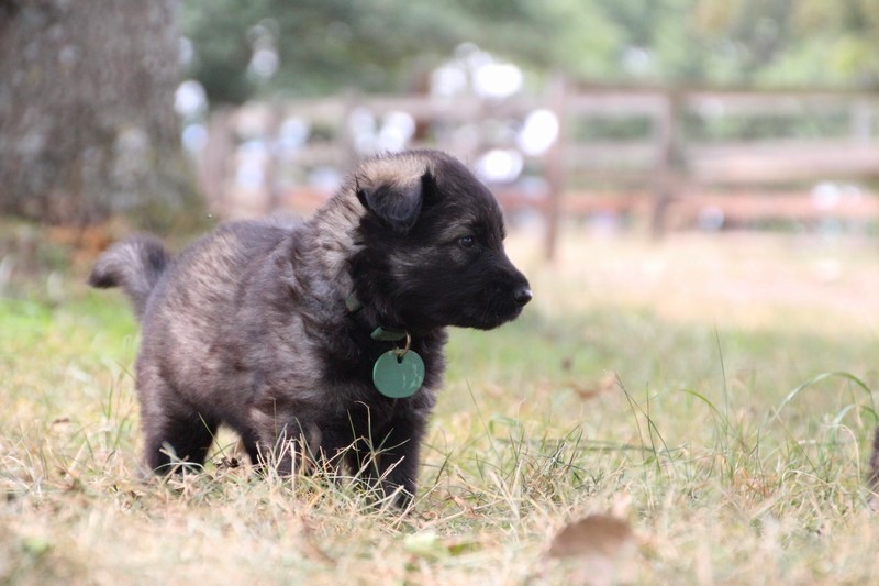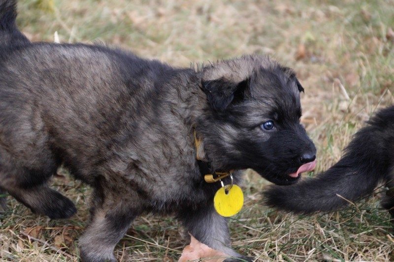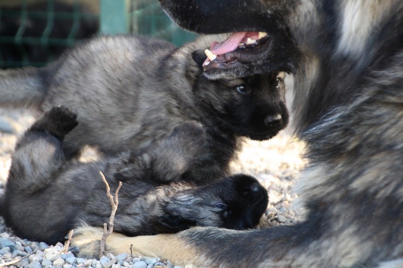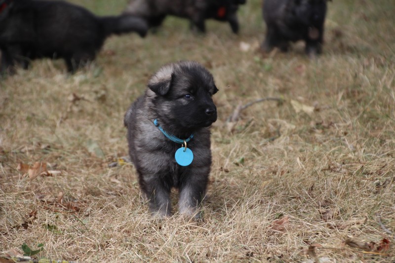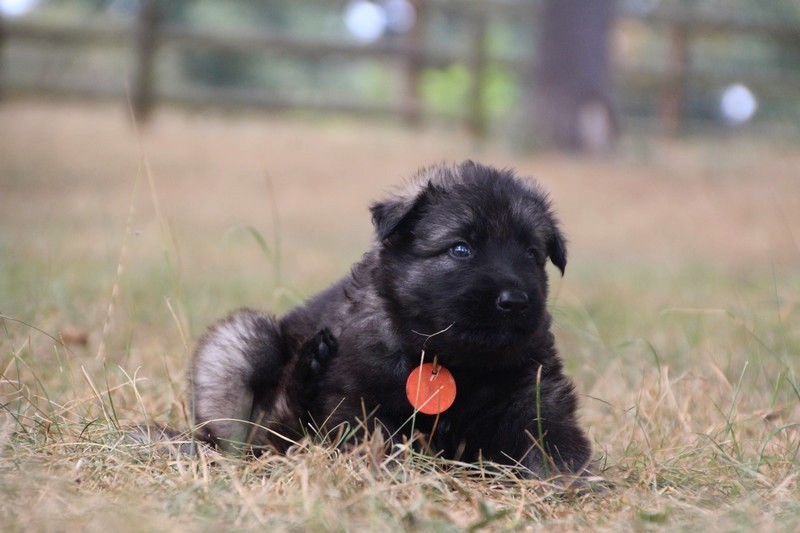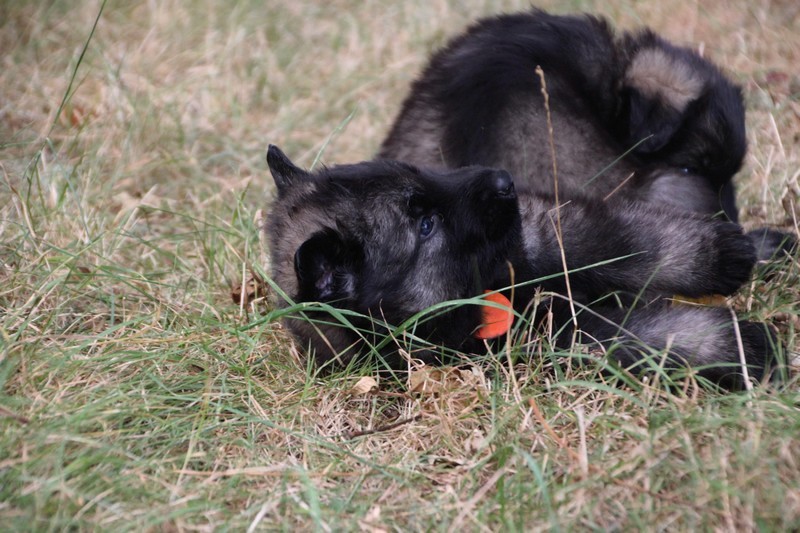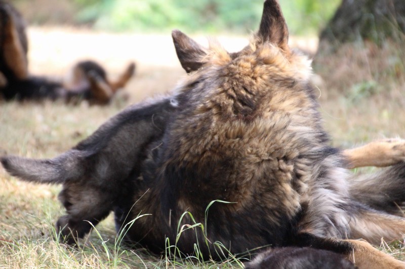 C’est à peu prés notre hauteur, nous gambadons de plus en plus vite et maintenant le parc à chiot n’a plus de secret pour nous. Nous sortons également du parc et apprenons à nous repérer dans les grands espaces et c’est toujours accompagné de maman et du restant de la meute que nous grandissons sereinement.