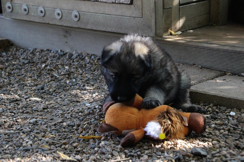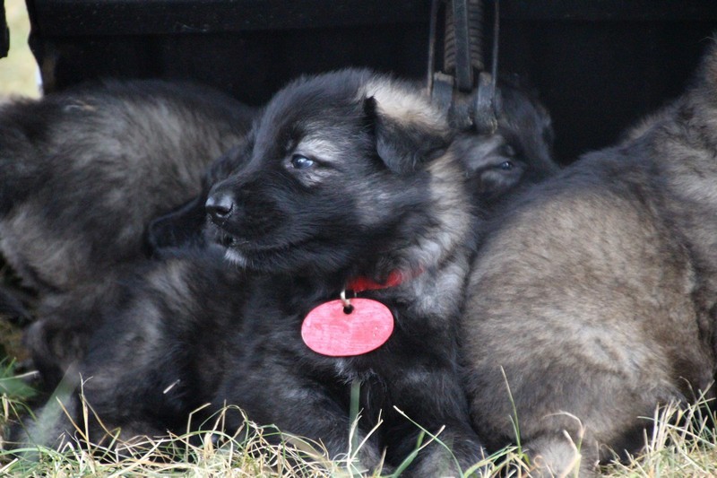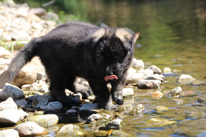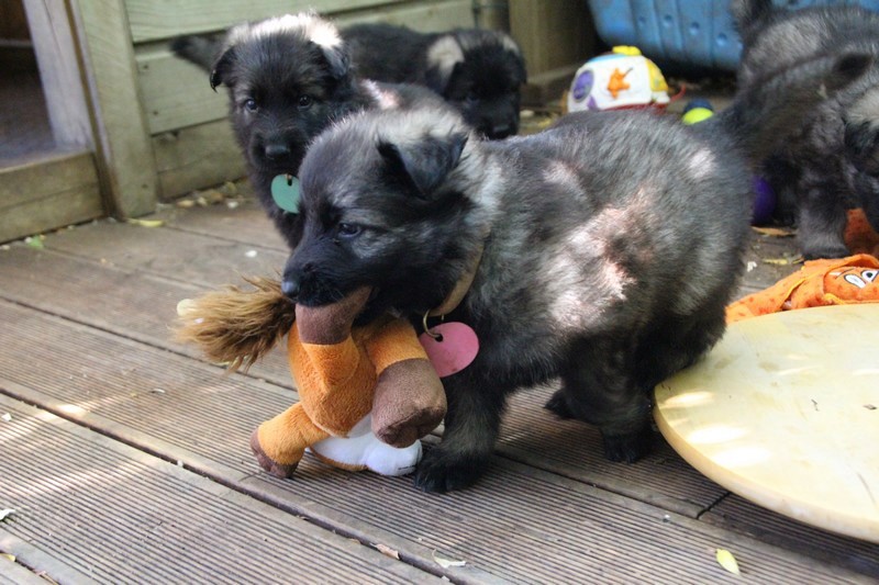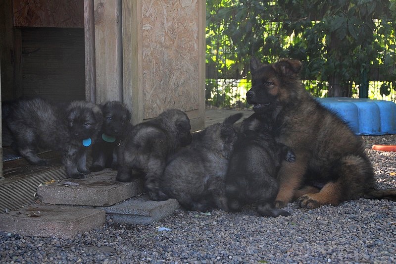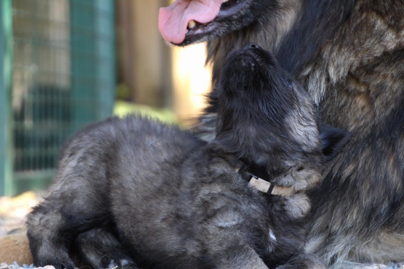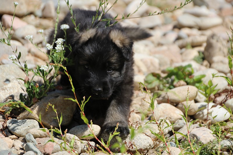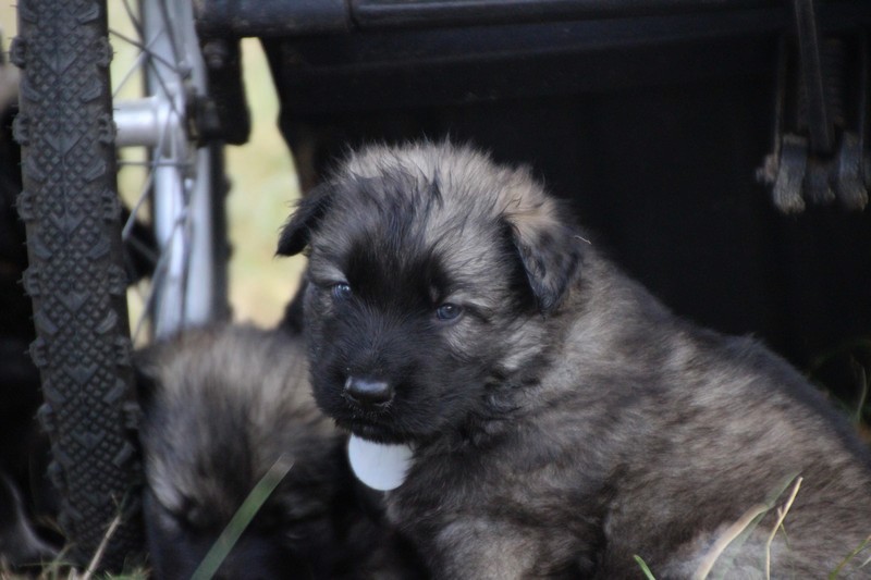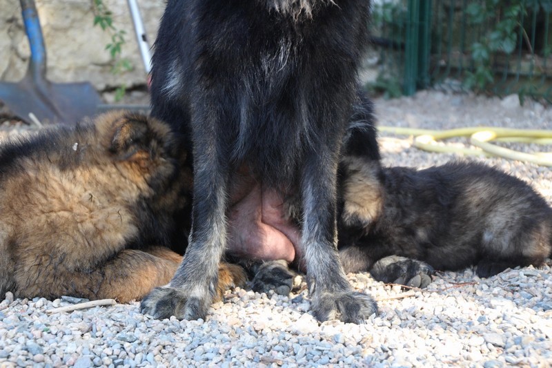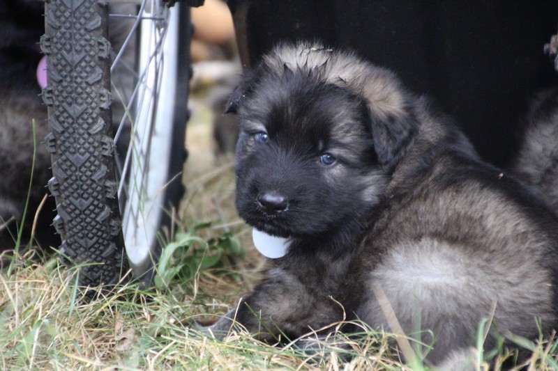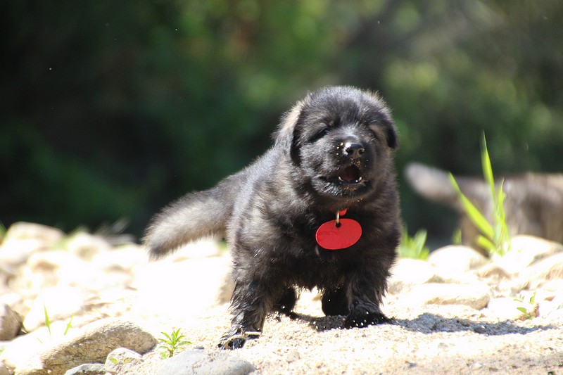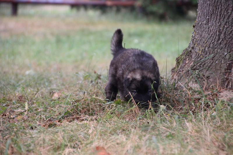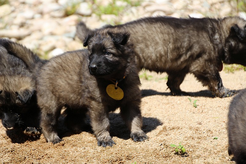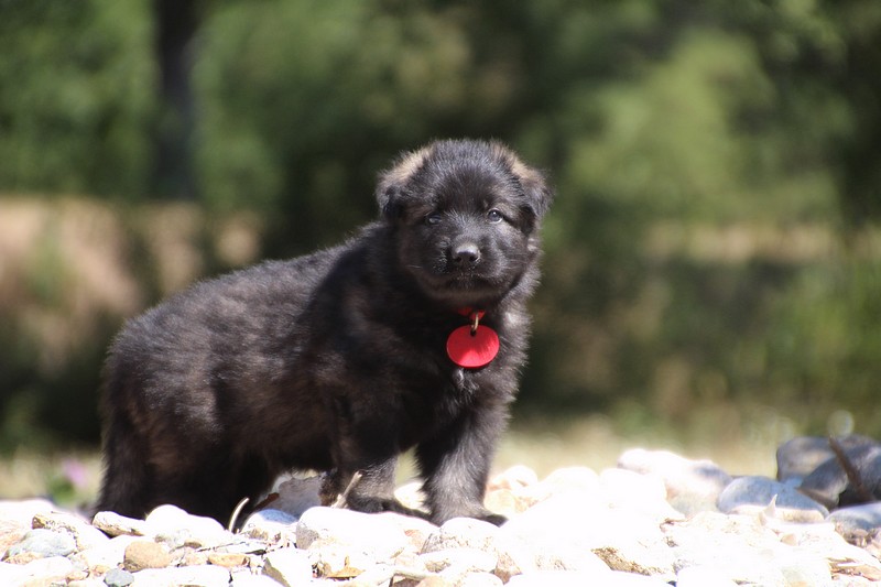 C’est à peu prés notre hauteur, nous gambadons de plus en plus vite et maintenant le parc à chiot n’a plus de secret pour nous. Nous sortons également du parc et apprenons à nous repérer dans les grands espaces et c’est toujours accompagné de maman et du restant de la meute que nous grandissons sereinement.