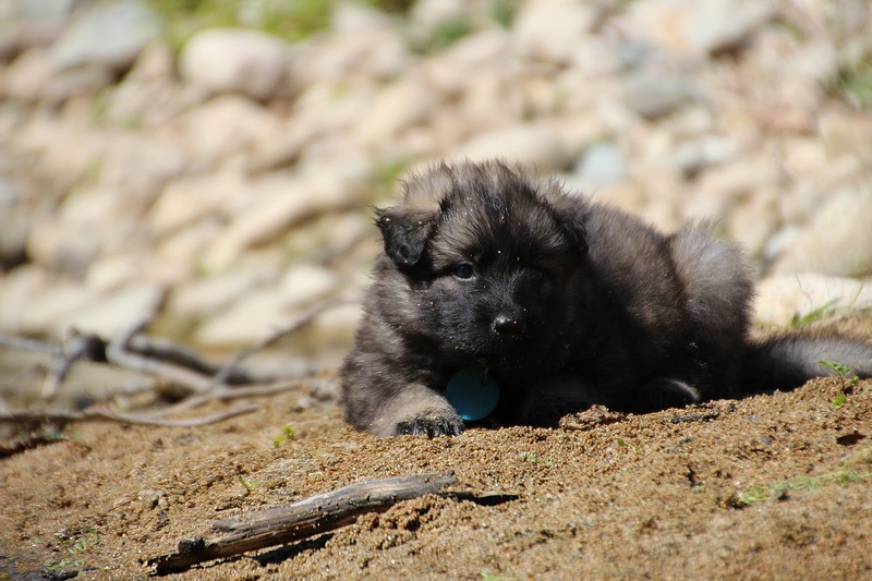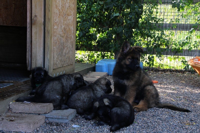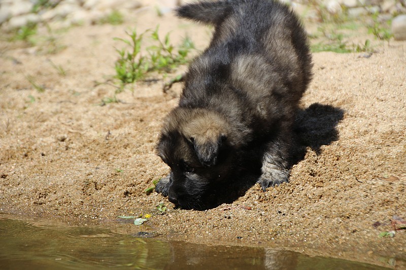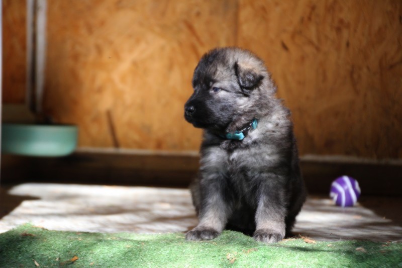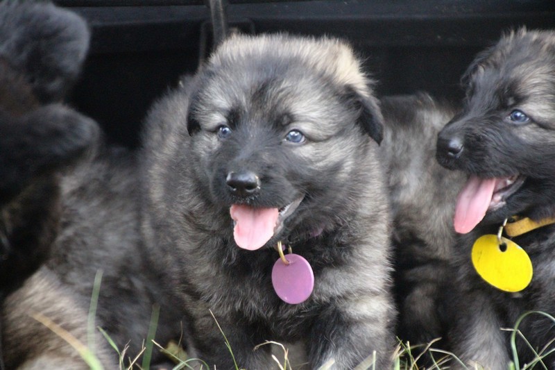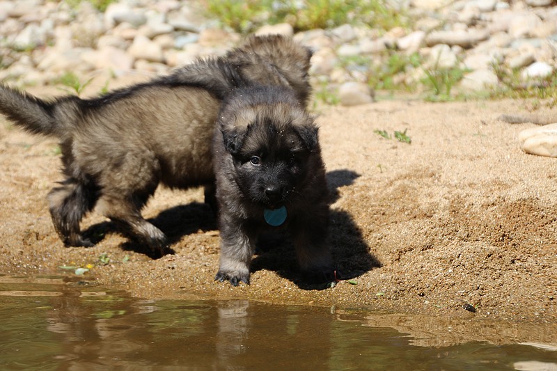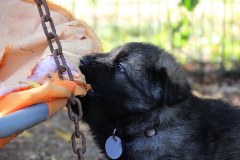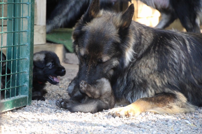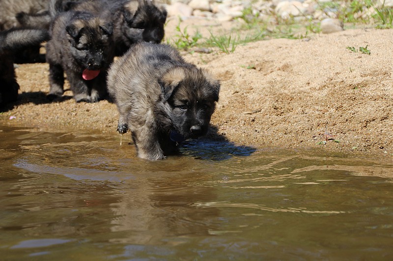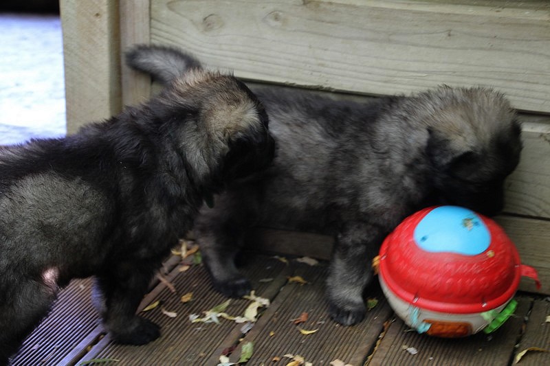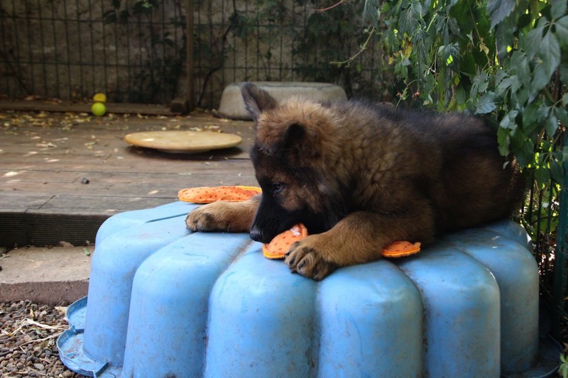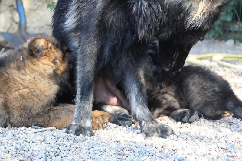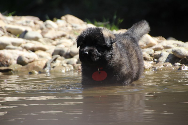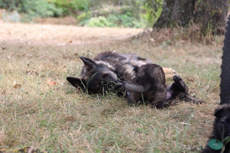 C’est à peu prés notre hauteur, nous gambadons de plus en plus vite et maintenant le parc à chiot n’a plus de secret pour nous. Nous sortons également du parc et apprenons à nous repérer dans les grands espaces et c’est toujours accompagné de maman et du restant de la meute que nous grandissons sereinement.