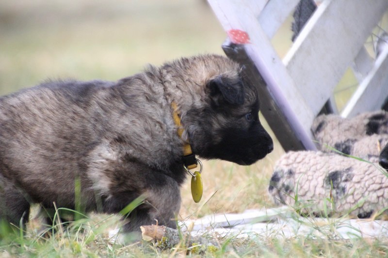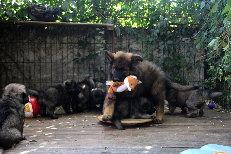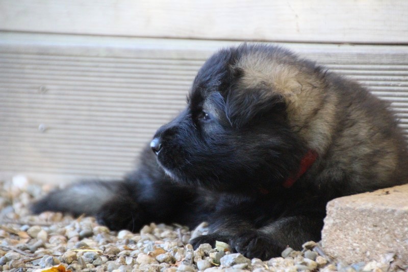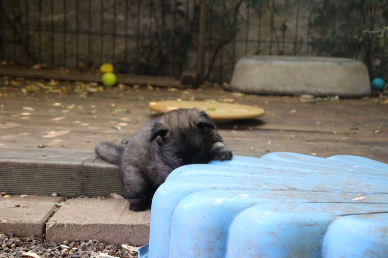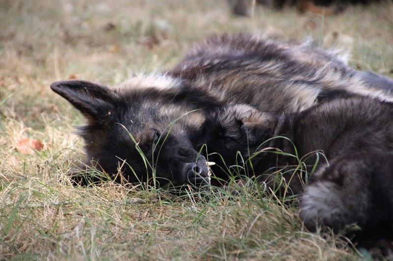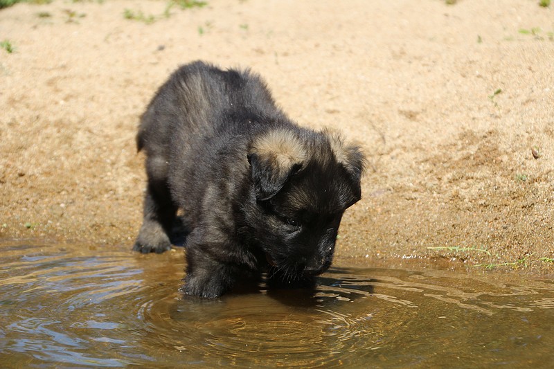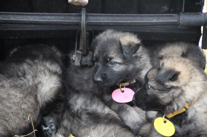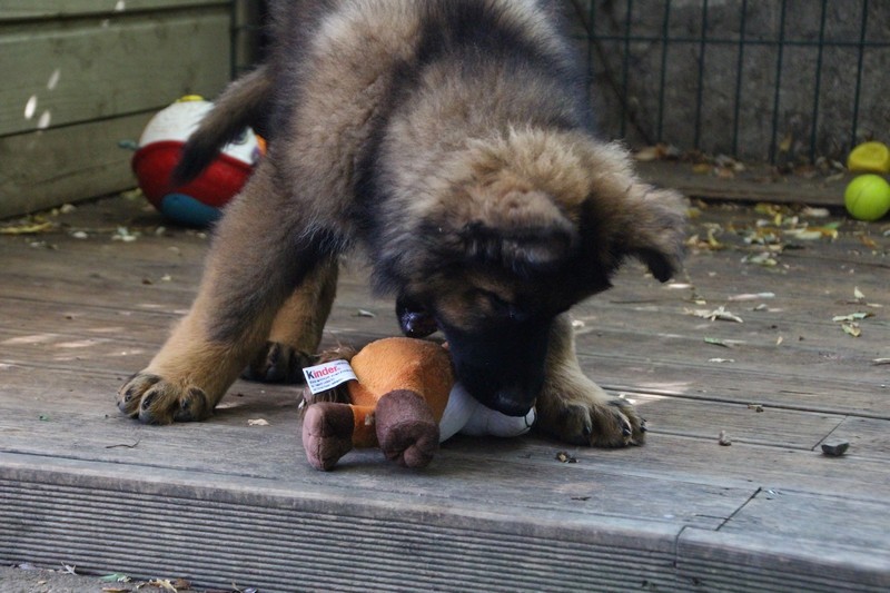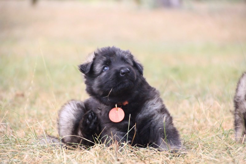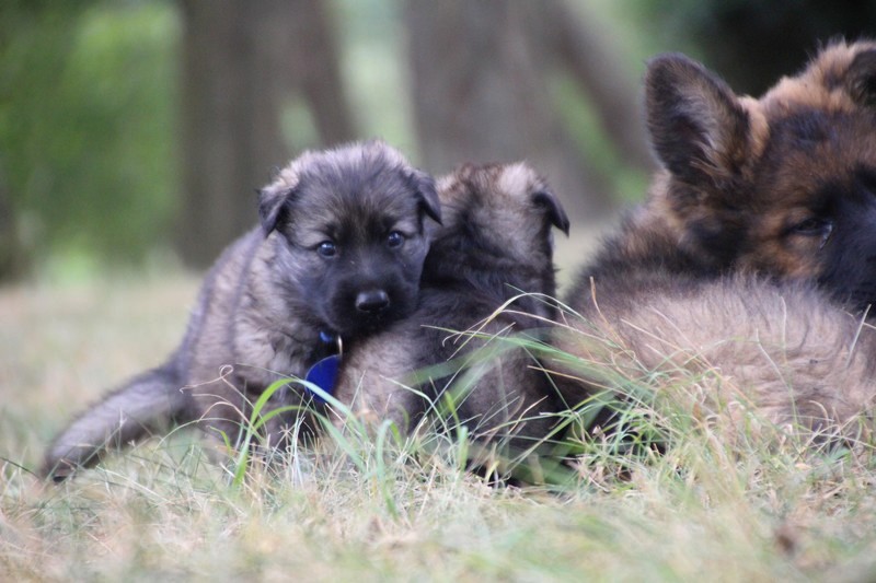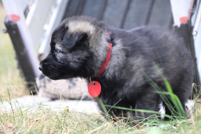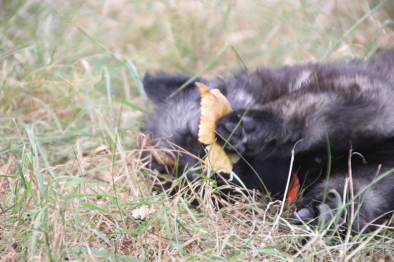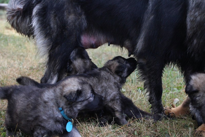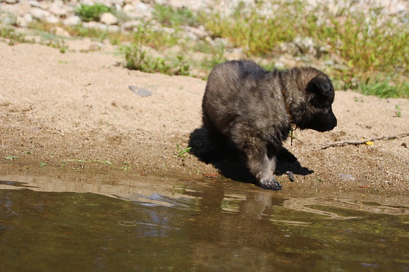 C’est à peu prés notre hauteur, nous gambadons de plus en plus vite et maintenant le parc à chiot n’a plus de secret pour nous. Nous sortons également du parc et apprenons à nous repérer dans les grands espaces et c’est toujours accompagné de maman et du restant de la meute que nous grandissons sereinement.