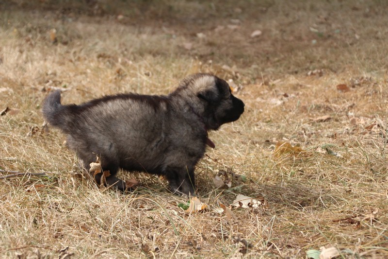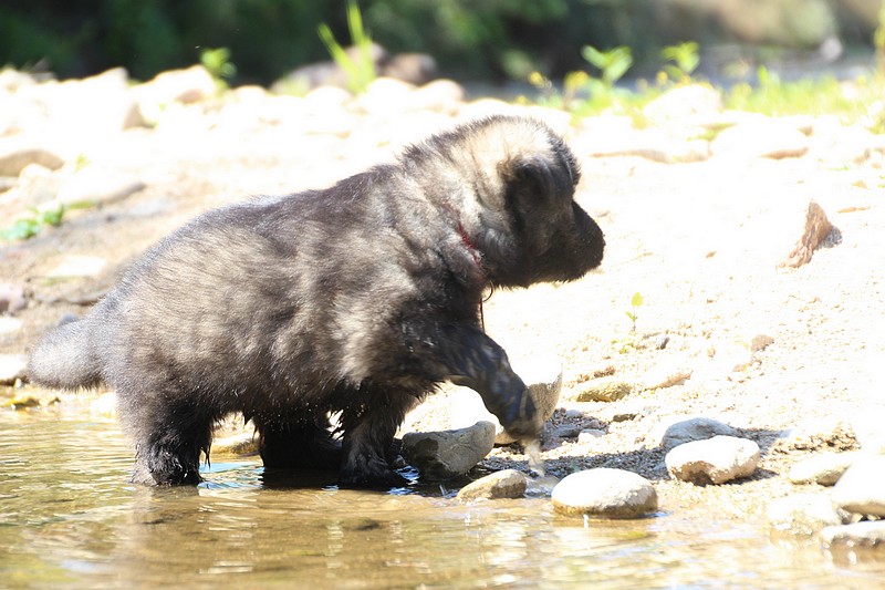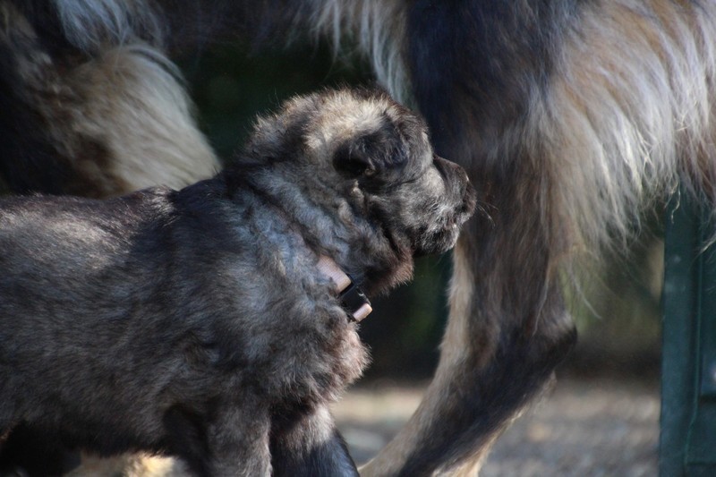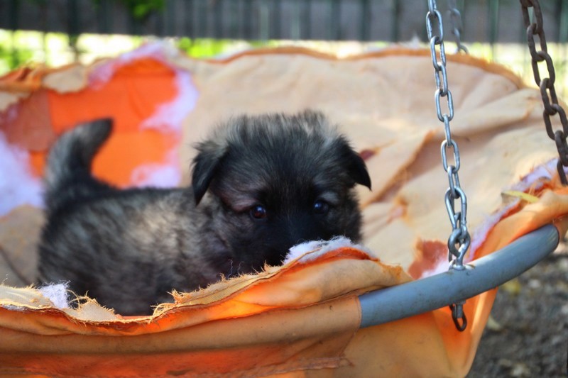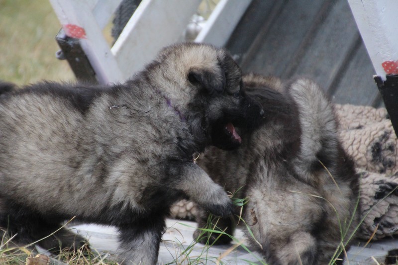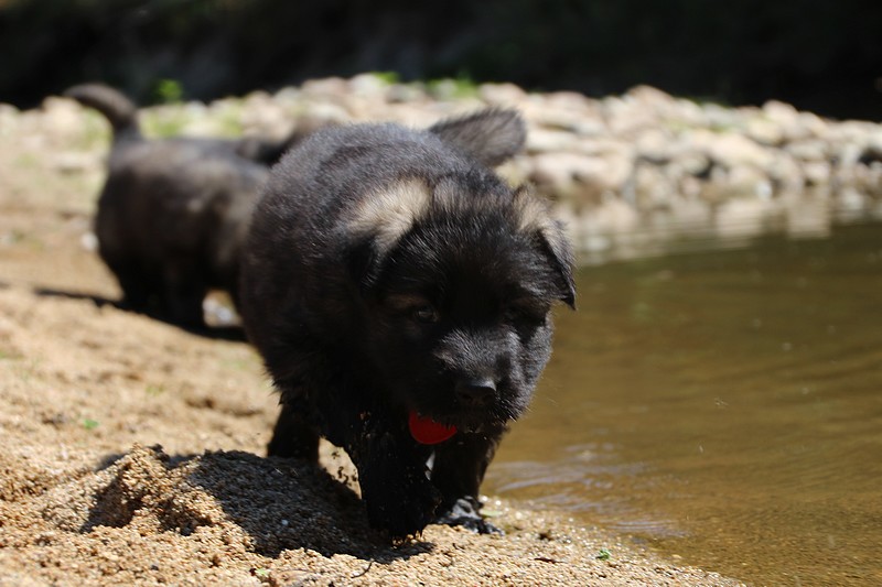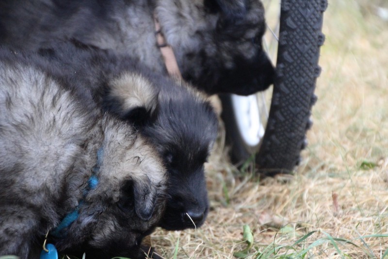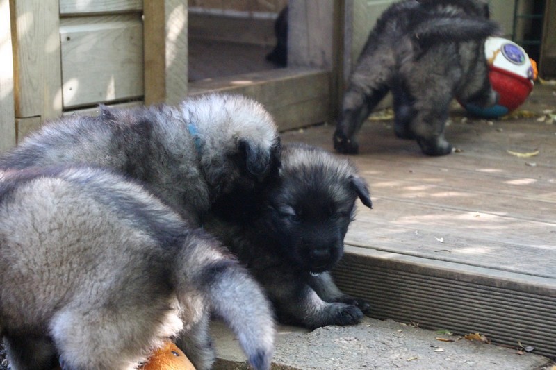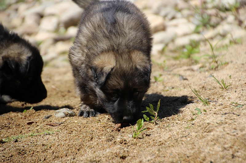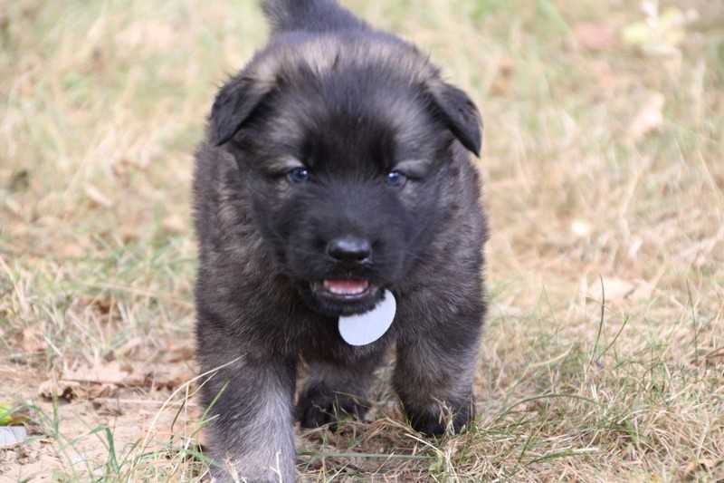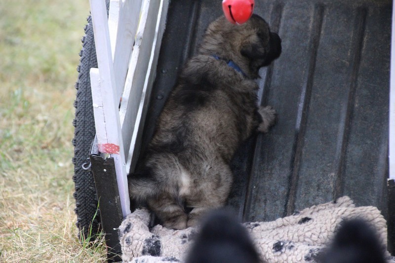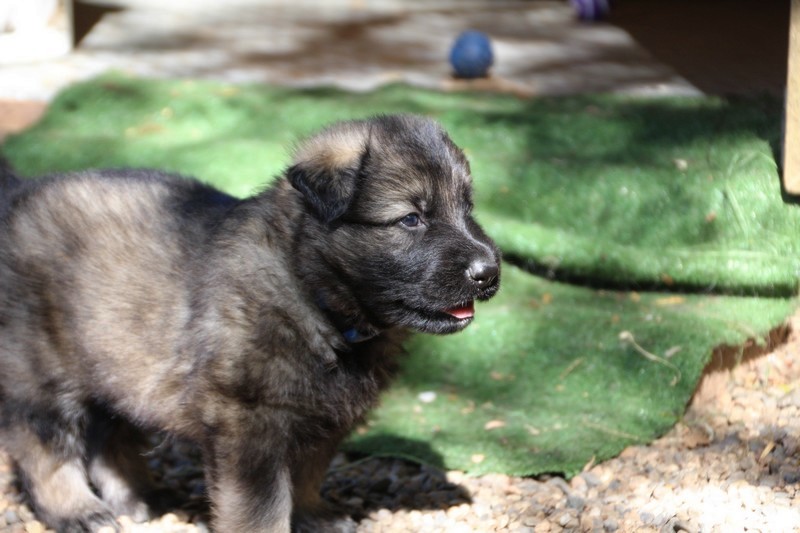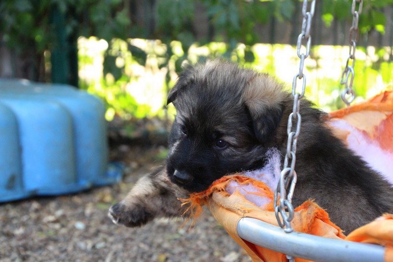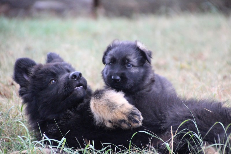 C’est à peu prés notre hauteur, nous gambadons de plus en plus vite et maintenant le parc à chiot n’a plus de secret pour nous. Nous sortons également du parc et apprenons à nous repérer dans les grands espaces et c’est toujours accompagné de maman et du restant de la meute que nous grandissons sereinement.
