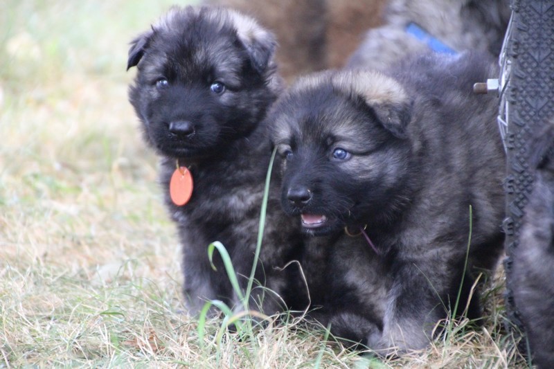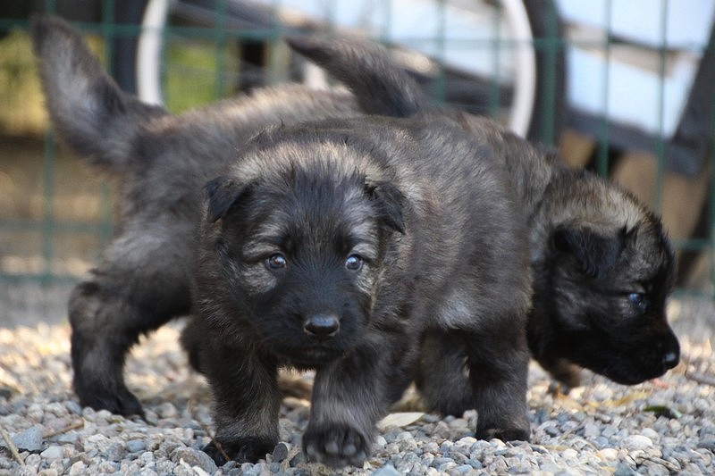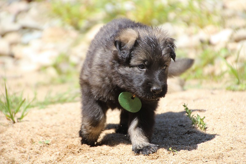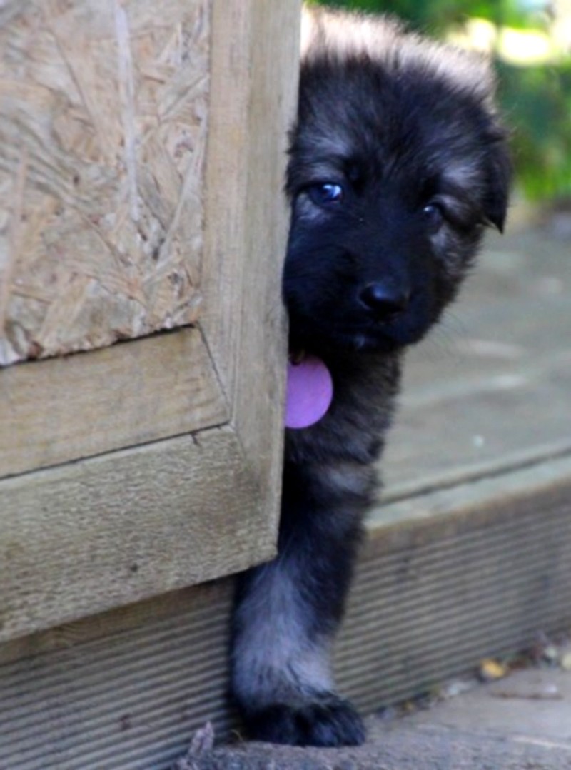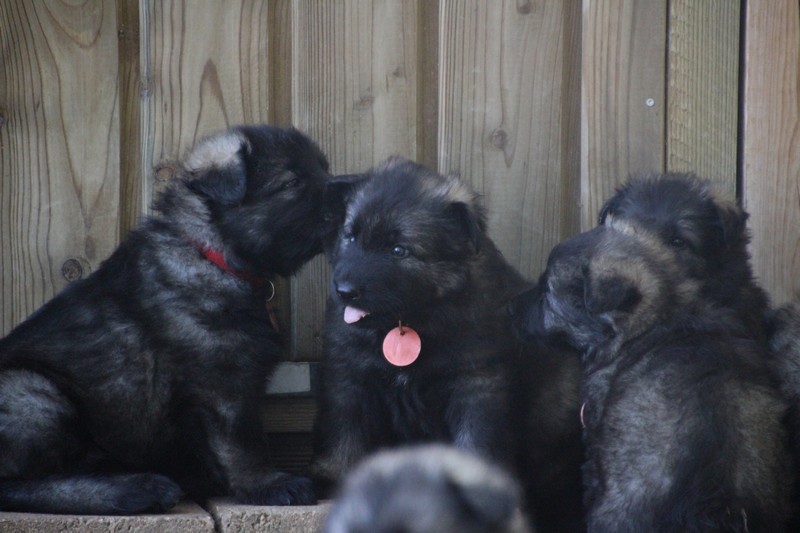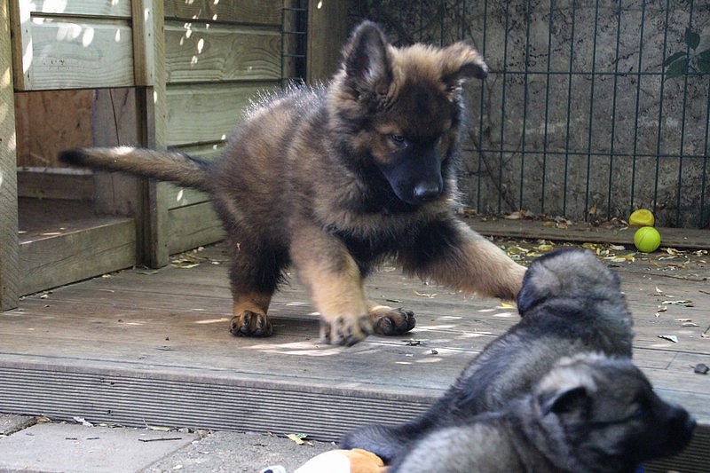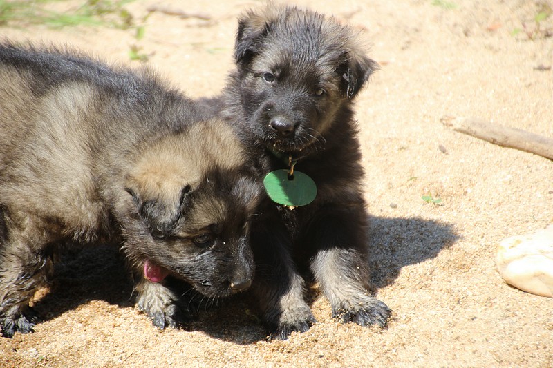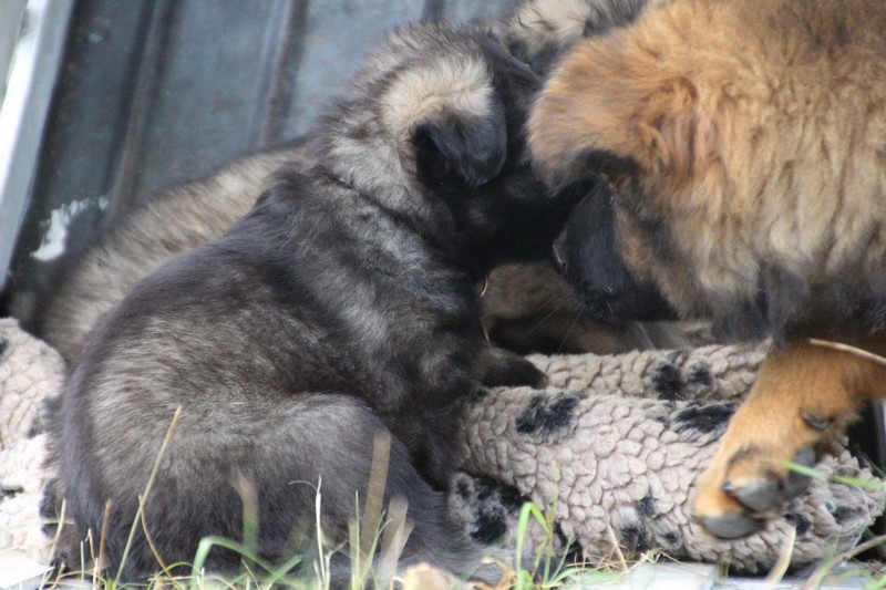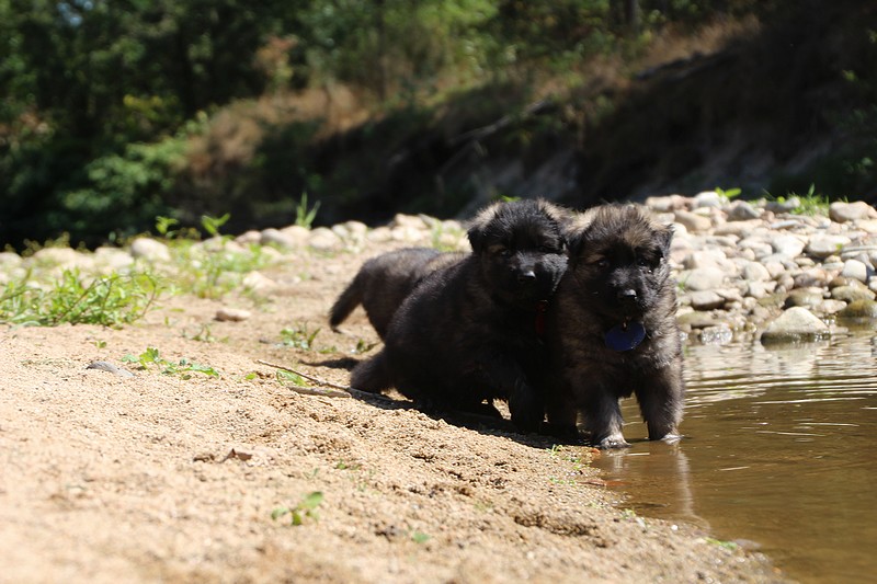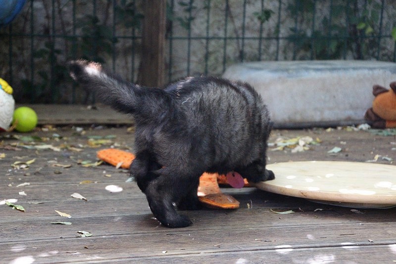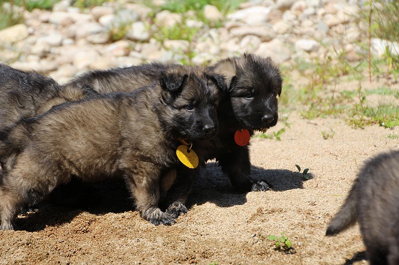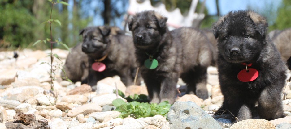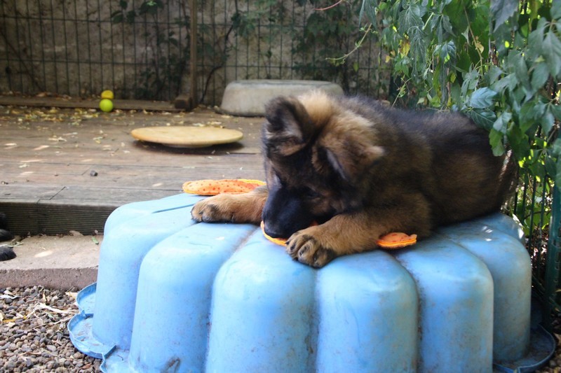 C’est à peu prés notre hauteur, nous gambadons de plus en plus vite et maintenant le parc à chiot n’a plus de secret pour nous. Nous sortons également du parc et apprenons à nous repérer dans les grands espaces et c’est toujours accompagné de maman et du restant de la meute que nous grandissons sereinement.