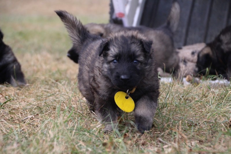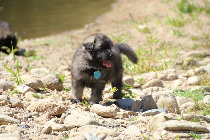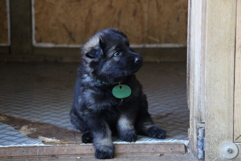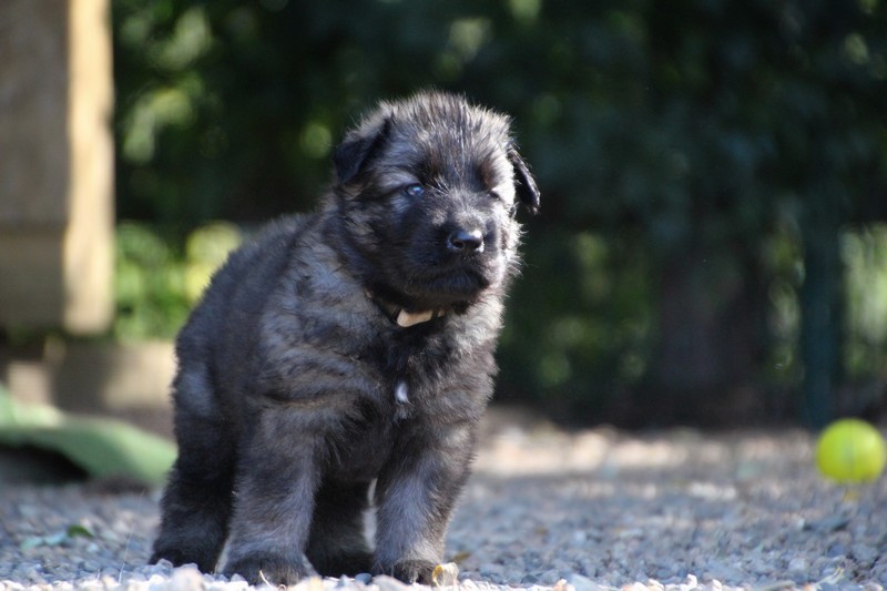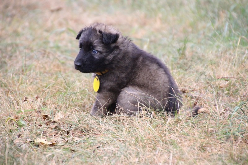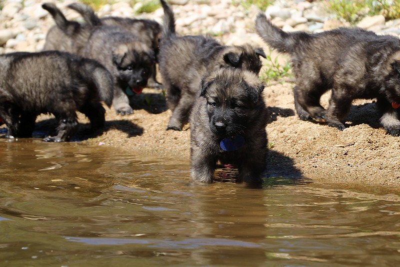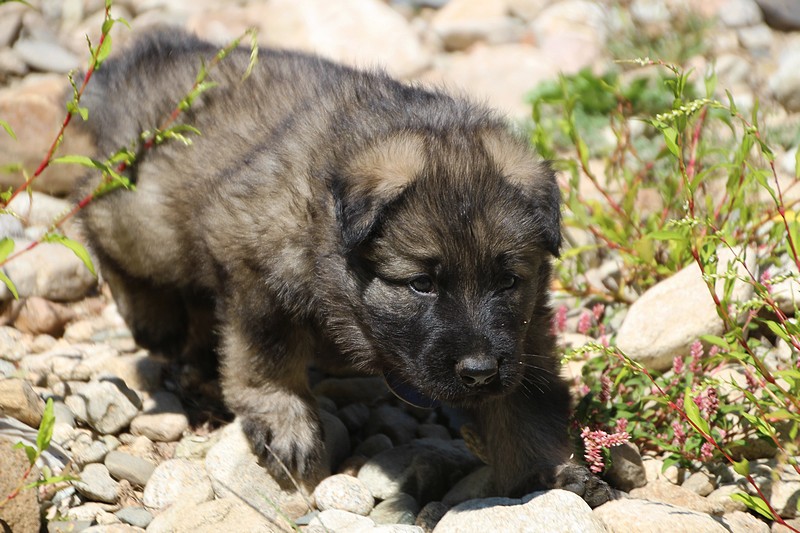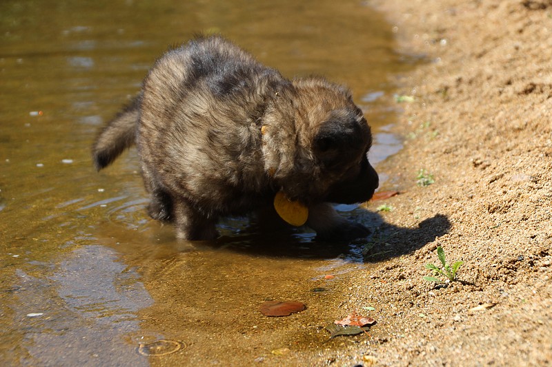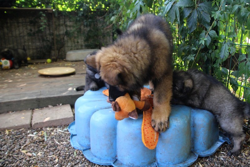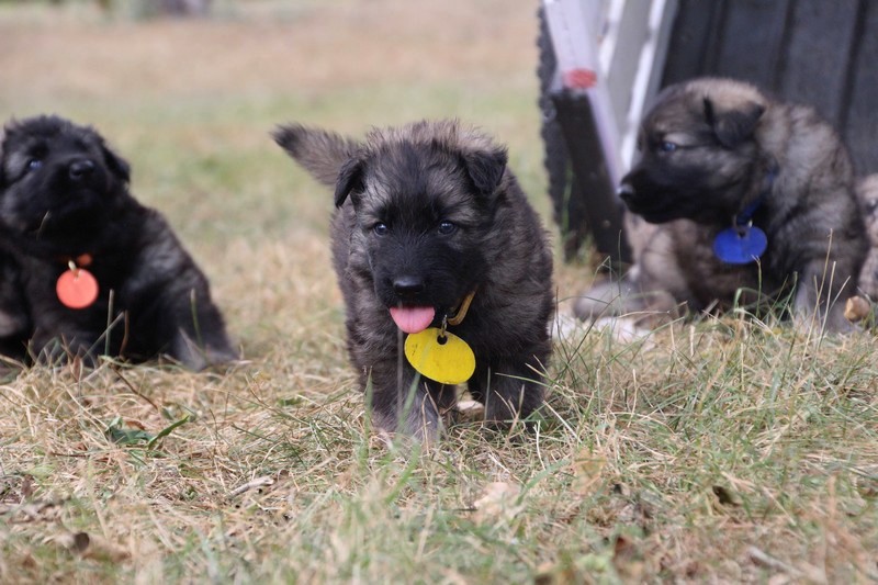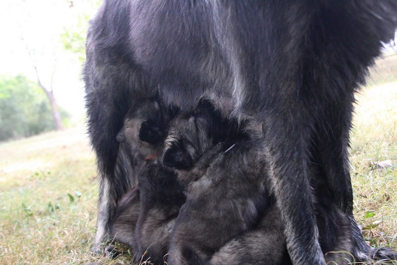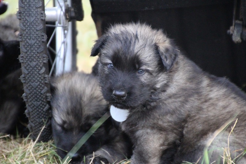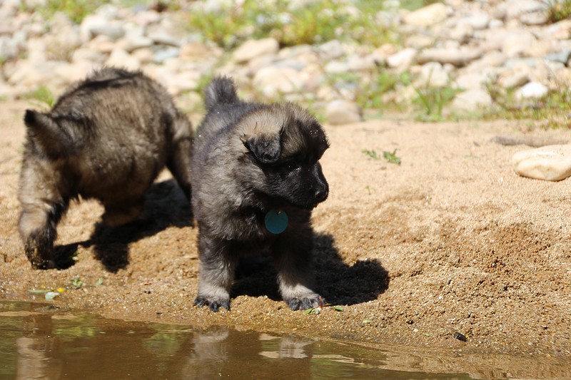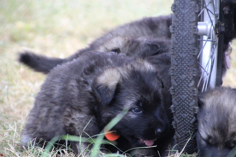 C’est à peu prés notre hauteur, nous gambadons de plus en plus vite et maintenant le parc à chiot n’a plus de secret pour nous. Nous sortons également du parc et apprenons à nous repérer dans les grands espaces et c’est toujours accompagné de maman et du restant de la meute que nous grandissons sereinement.
