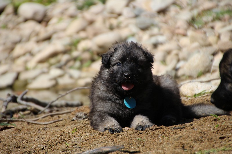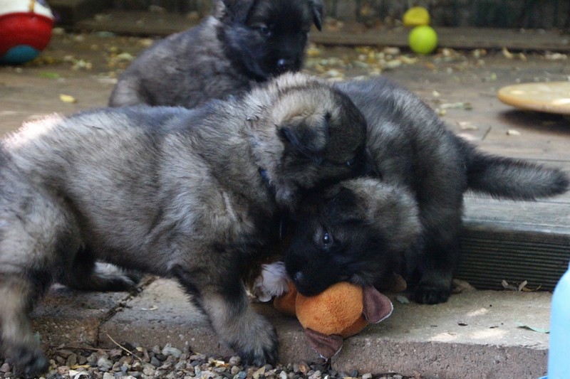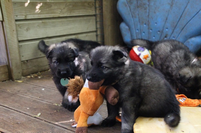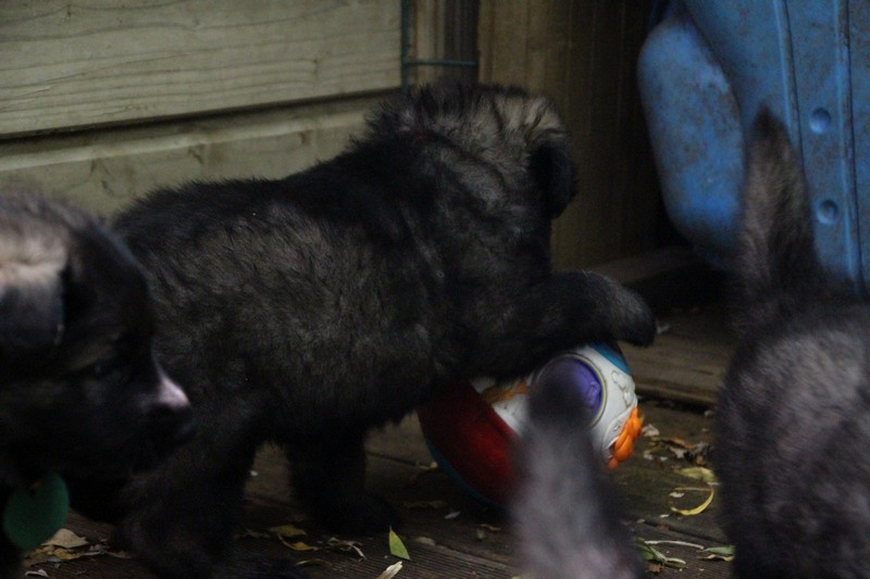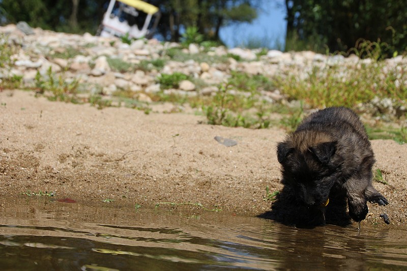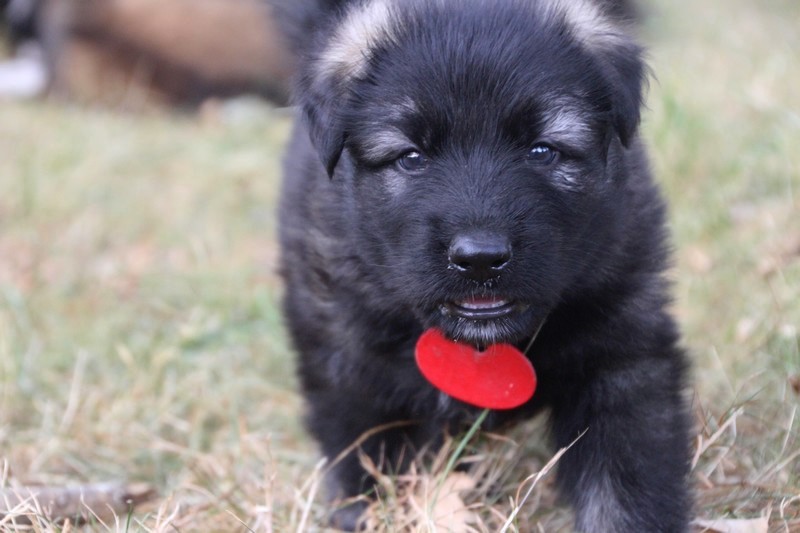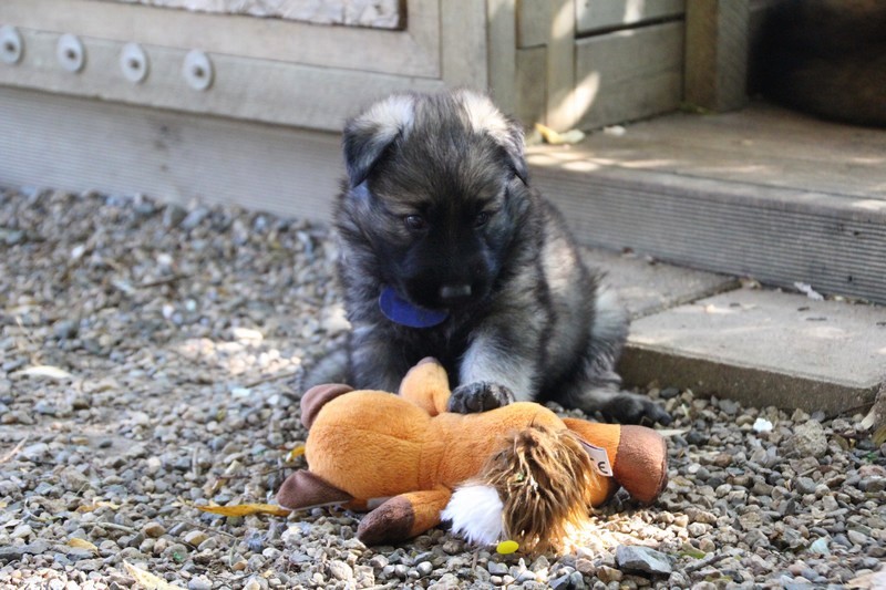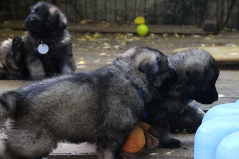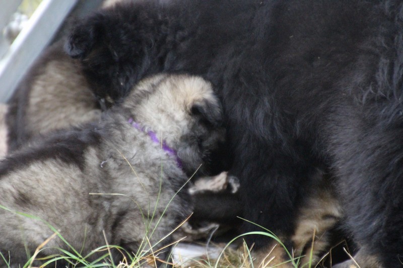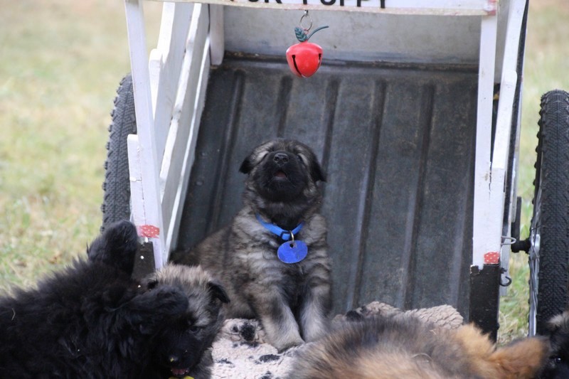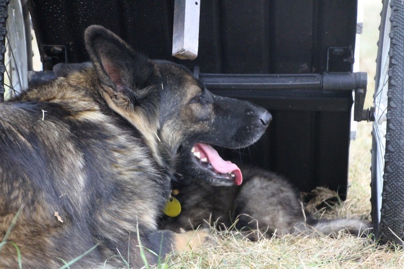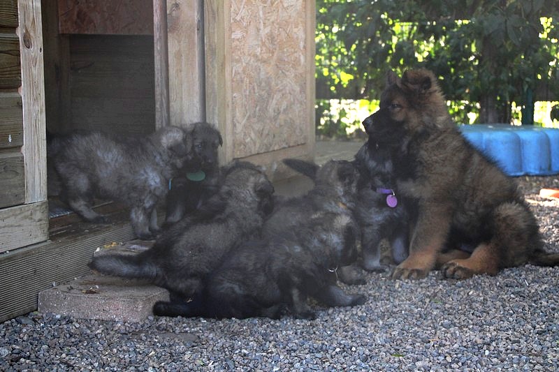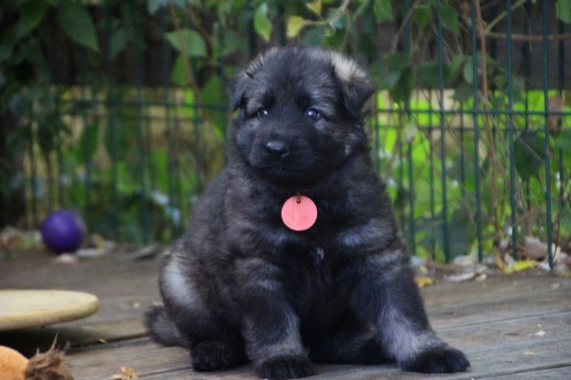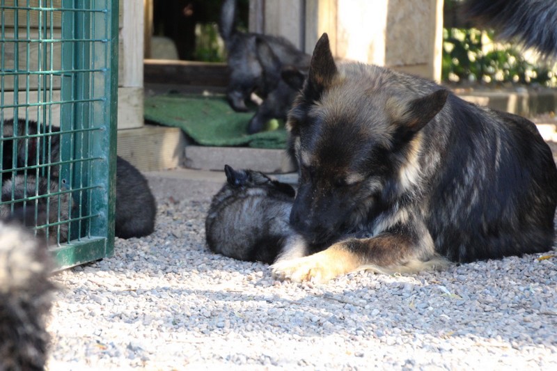 C’est à peu prés notre hauteur, nous gambadons de plus en plus vite et maintenant le parc à chiot n’a plus de secret pour nous. Nous sortons également du parc et apprenons à nous repérer dans les grands espaces et c’est toujours accompagné de maman et du restant de la meute que nous grandissons sereinement.