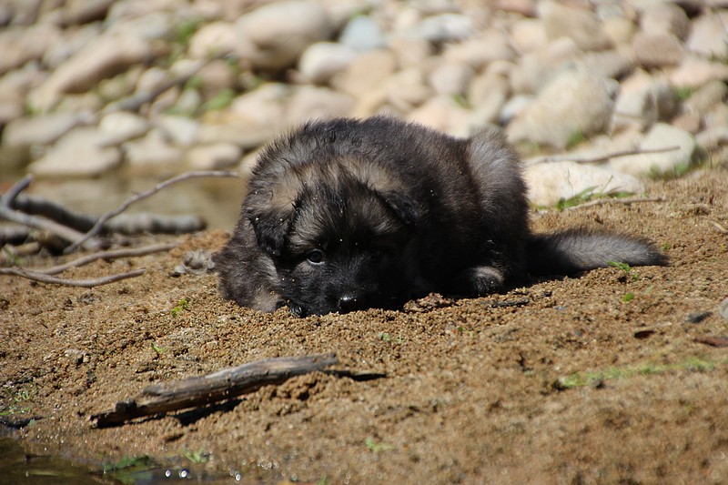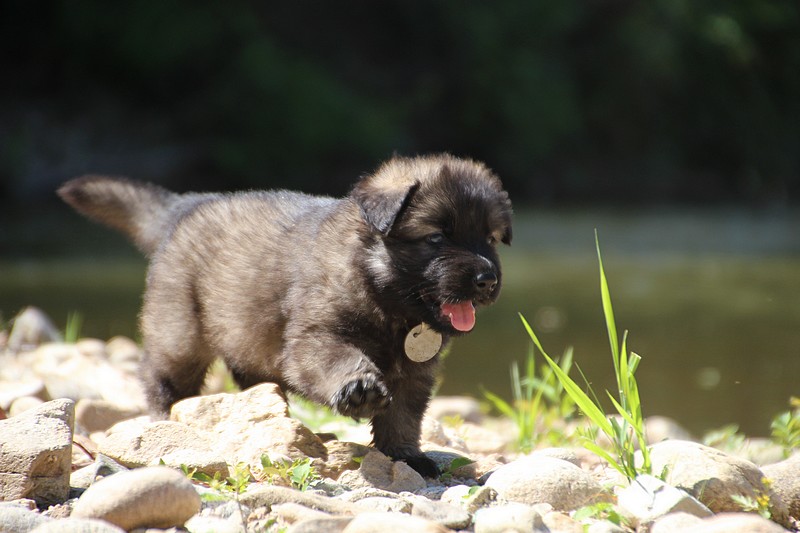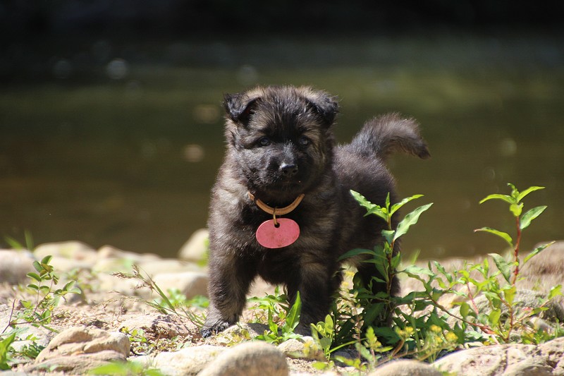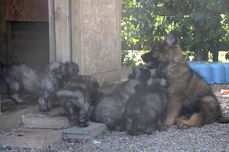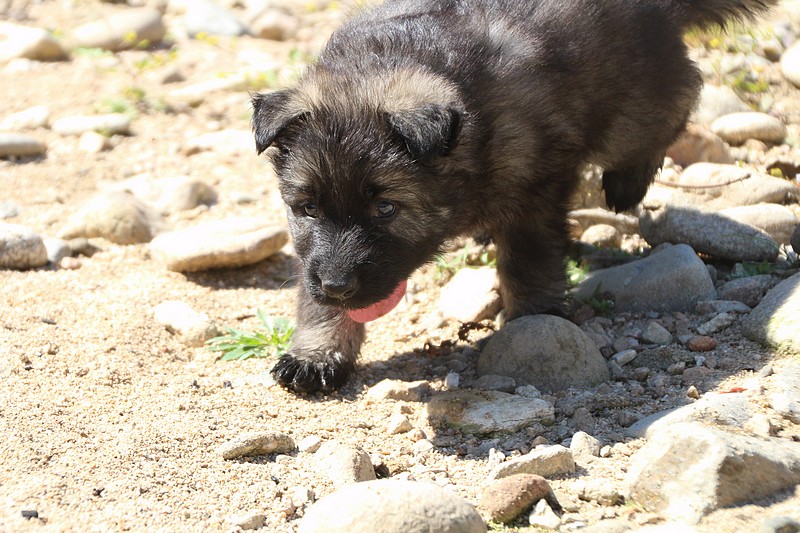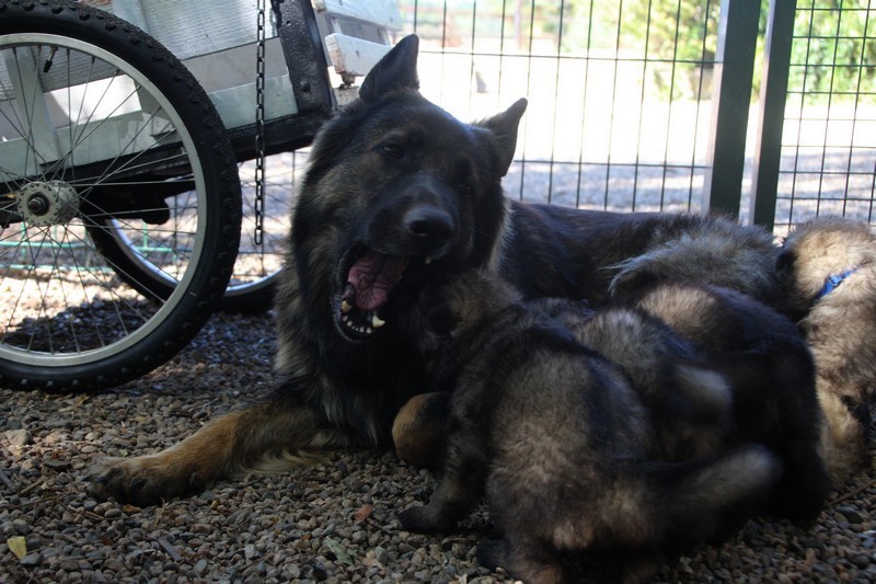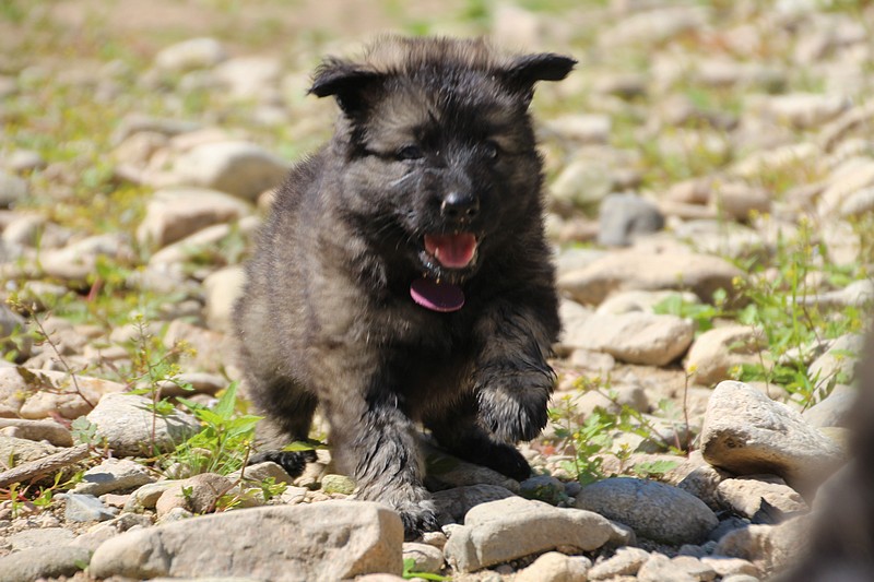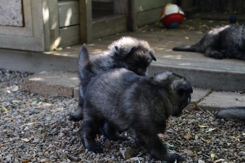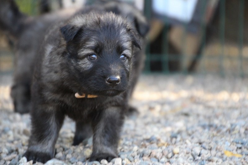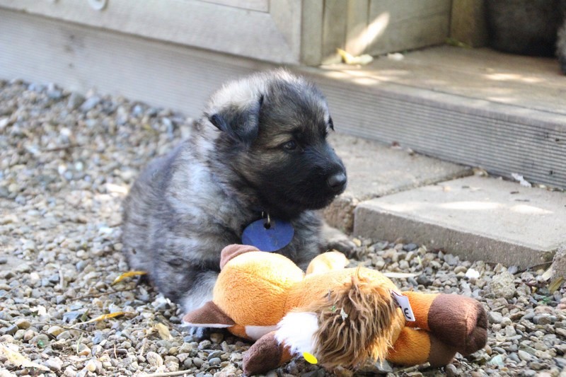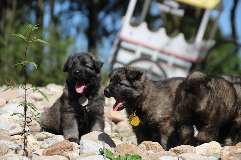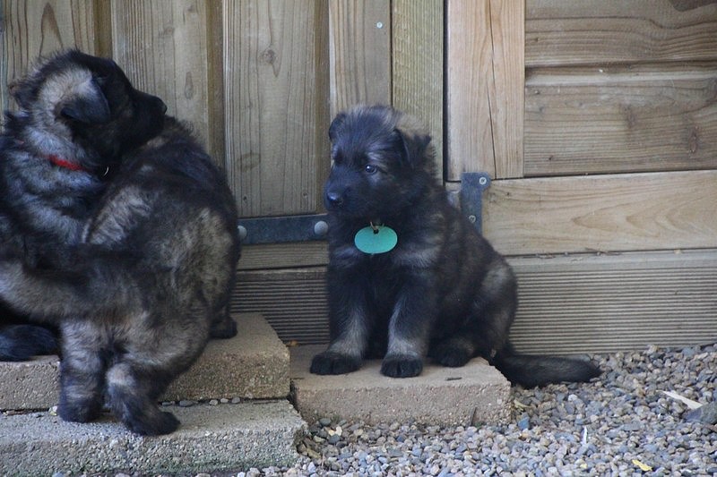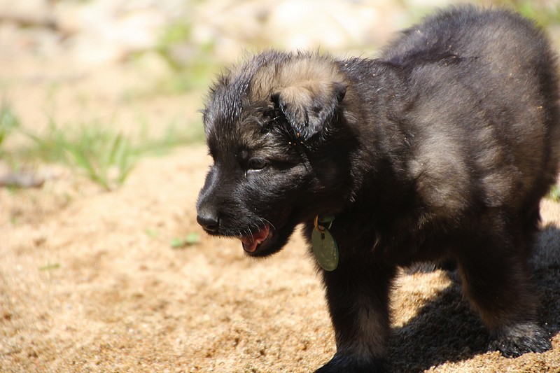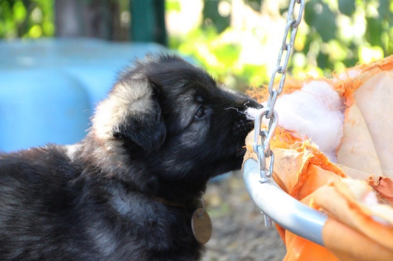C’est à peu prés notre hauteur, nous gambadons de plus en plus vite et maintenant le parc à chiot n’a plus de secret pour nous. Nous sortons également du parc et apprenons à nous repérer dans les grands espaces et c’est toujours accompagné de maman et du restant de la meute que nous grandissons sereinement.
