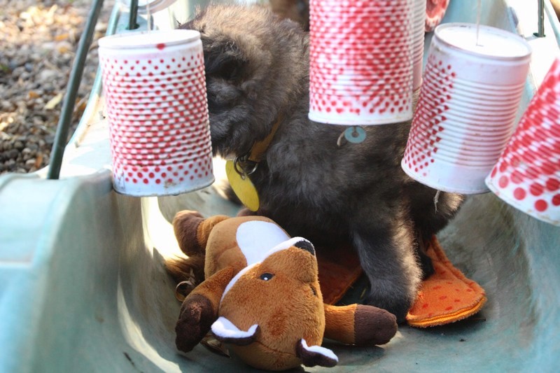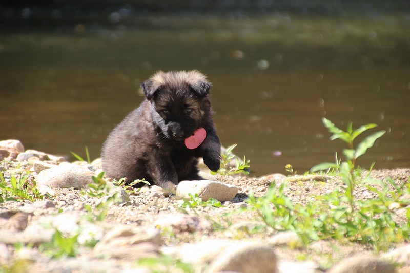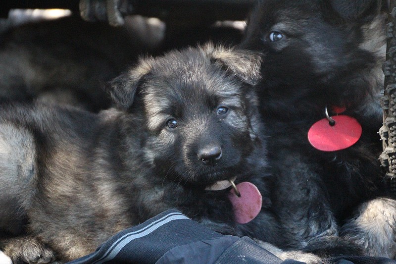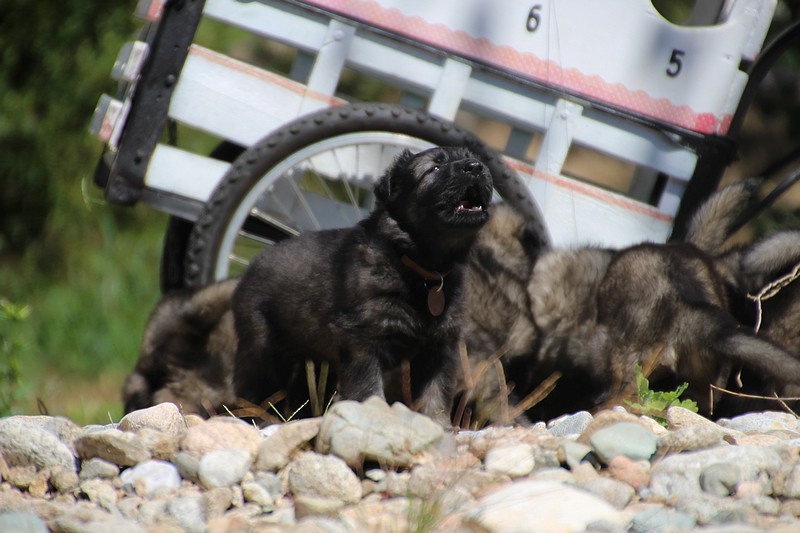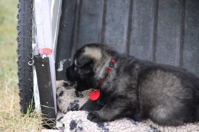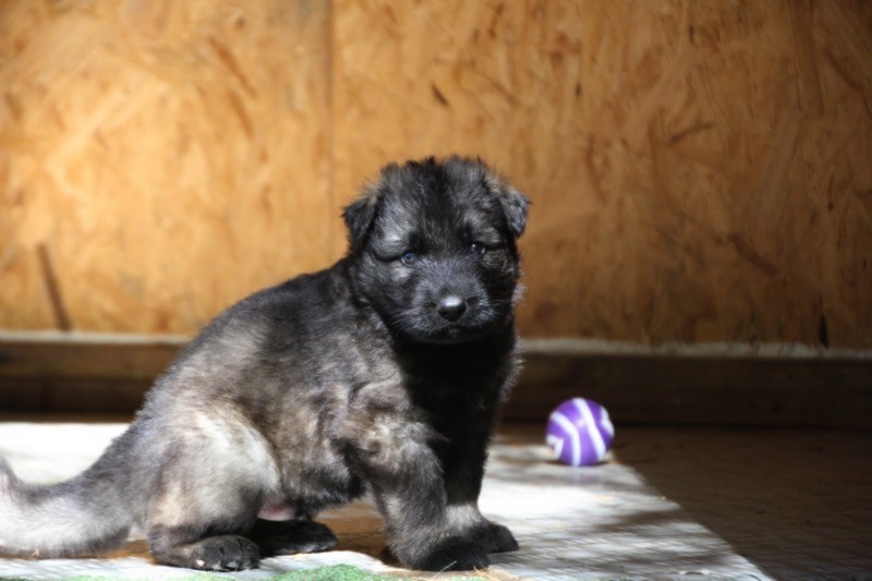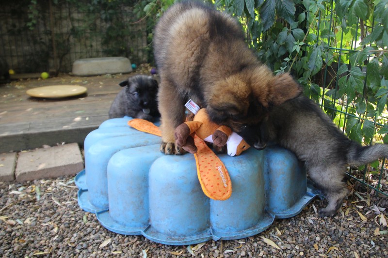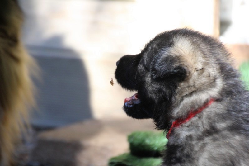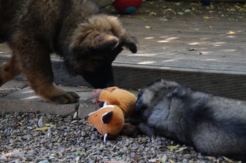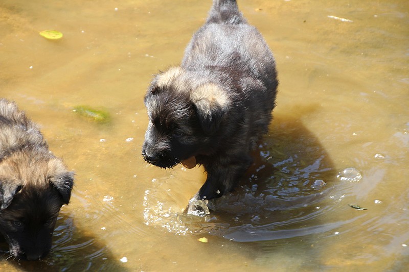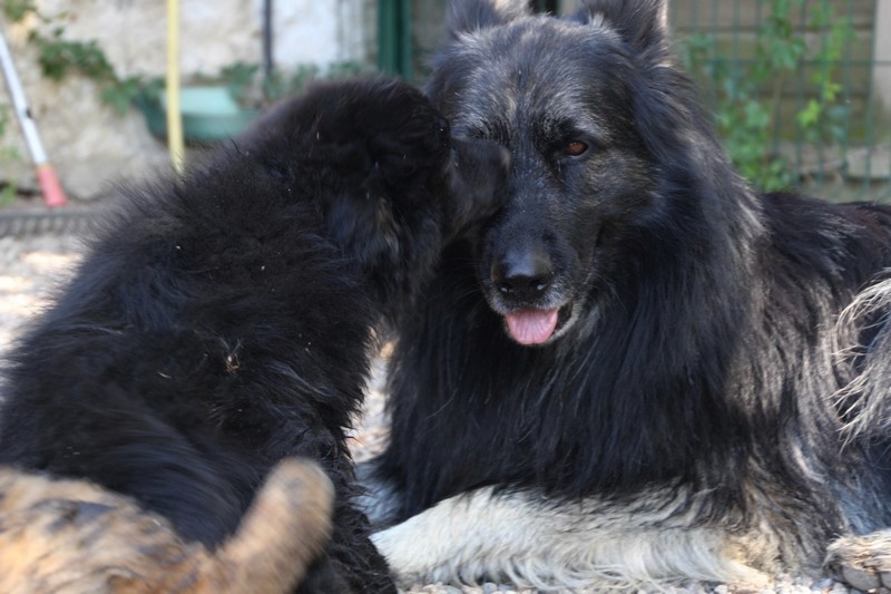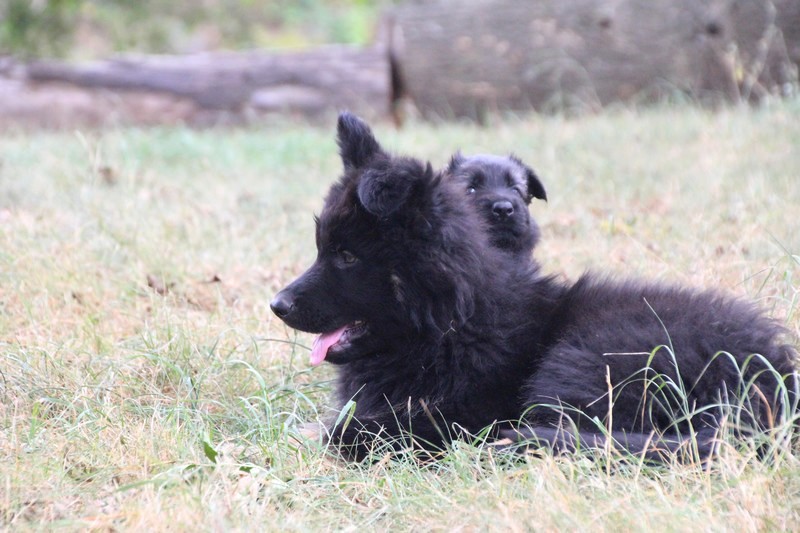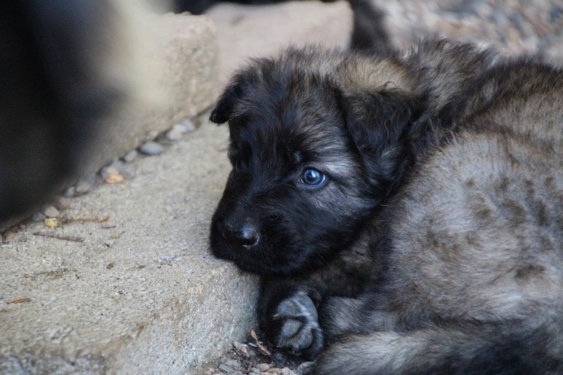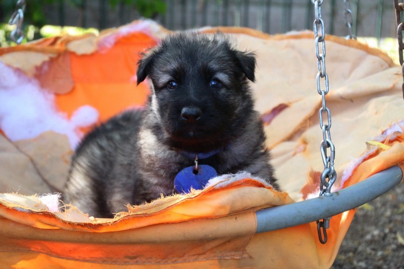C’est à peu prés notre hauteur, nous gambadons de plus en plus vite et maintenant le parc à chiot n’a plus de secret pour nous. Nous sortons également du parc et apprenons à nous repérer dans les grands espaces et c’est toujours accompagné de maman et du restant de la meute que nous grandissons sereinement.