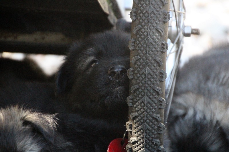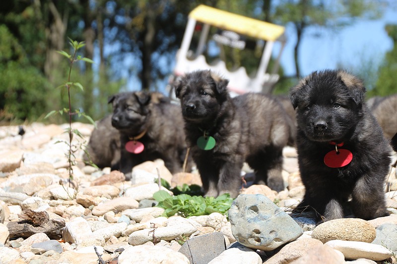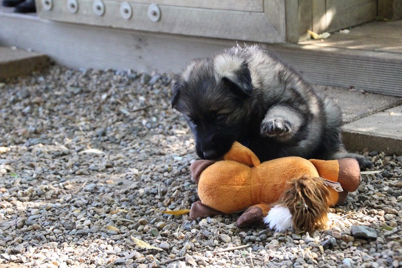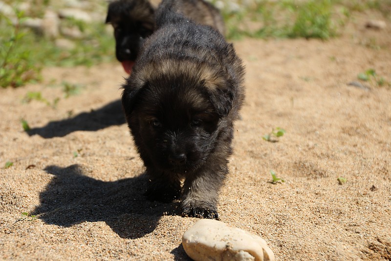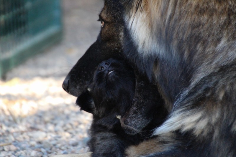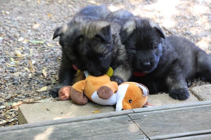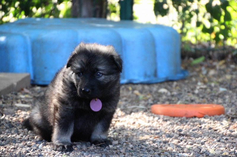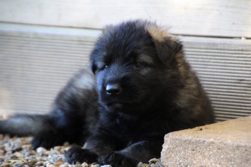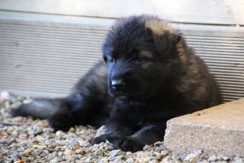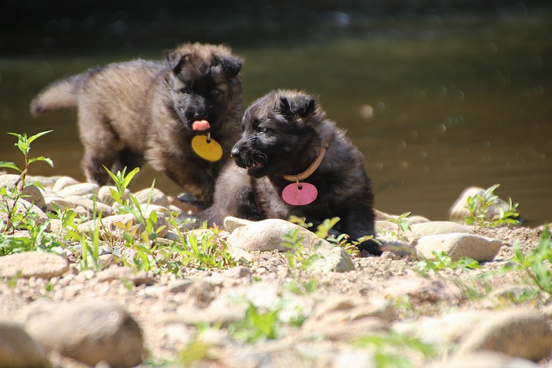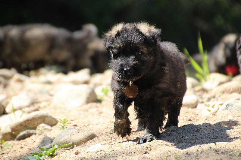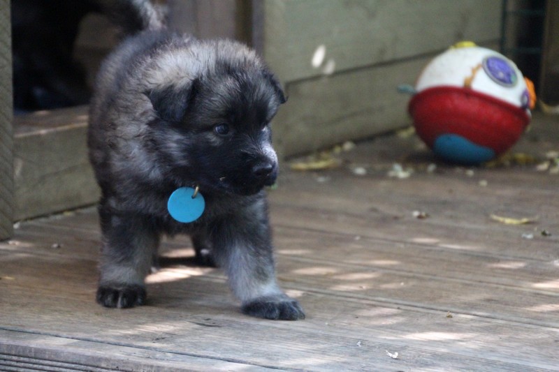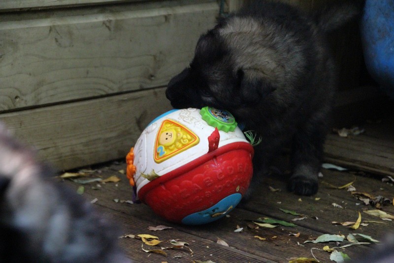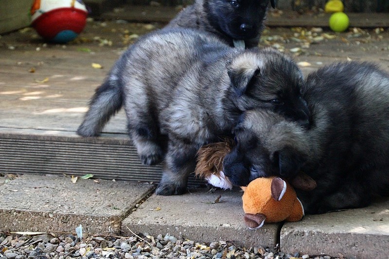 C’est à peu prés notre hauteur, nous gambadons de plus en plus vite et maintenant le parc à chiot n’a plus de secret pour nous. Nous sortons également du parc et apprenons à nous repérer dans les grands espaces et c’est toujours accompagné de maman et du restant de la meute que nous grandissons sereinement.
