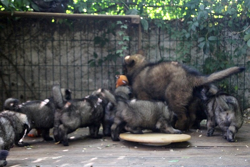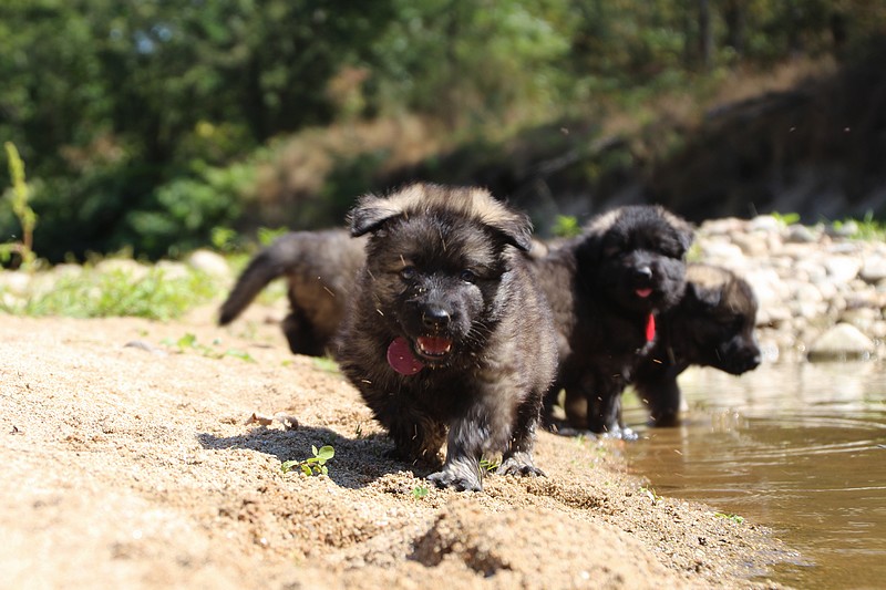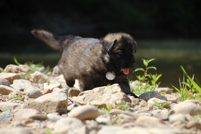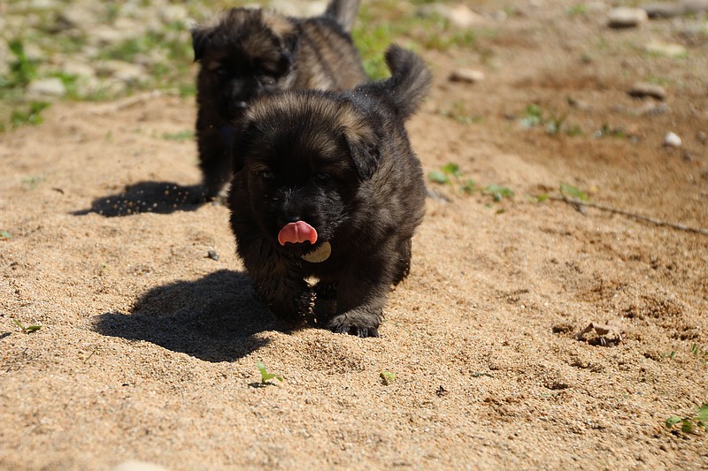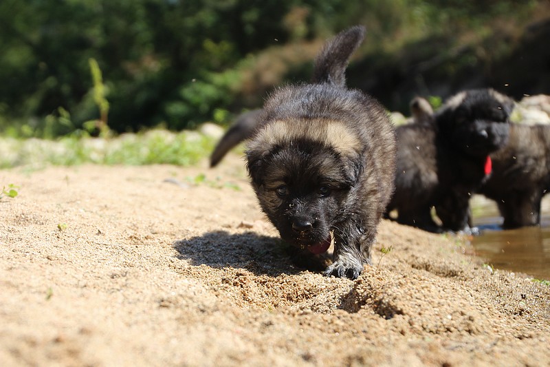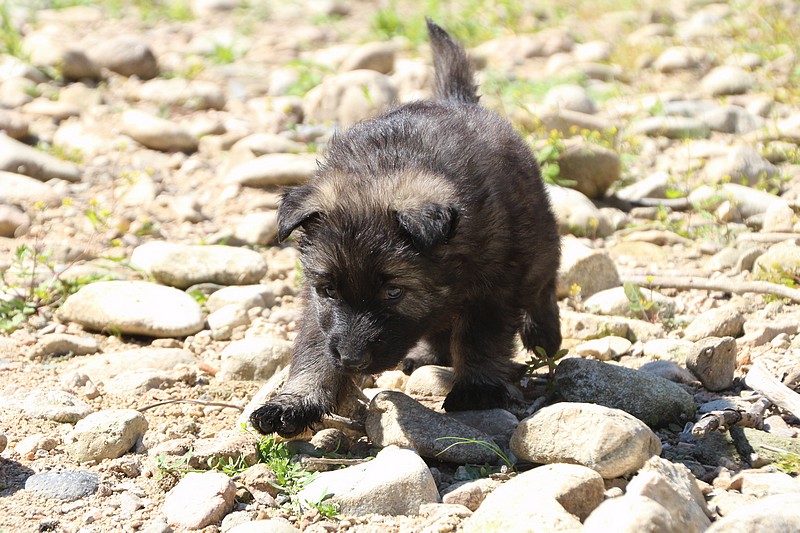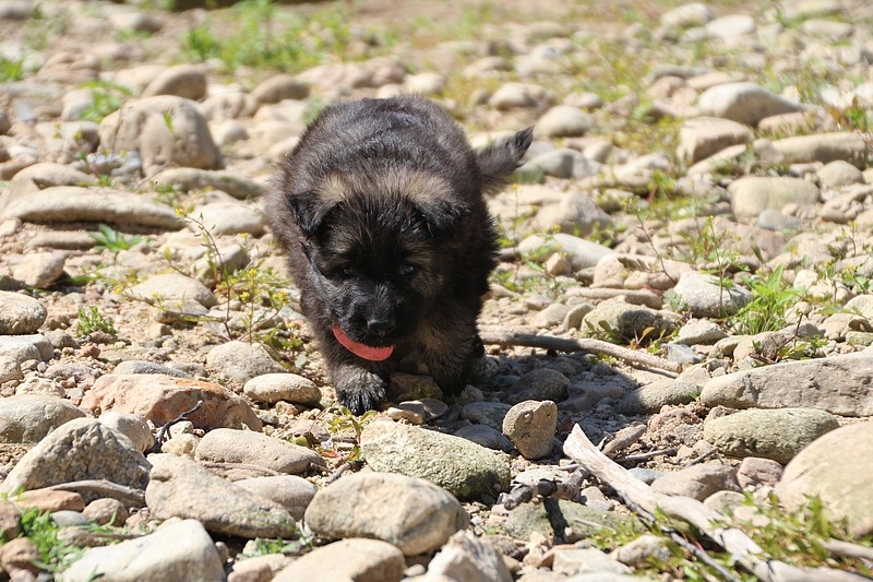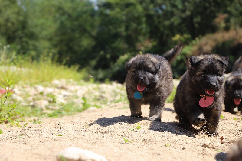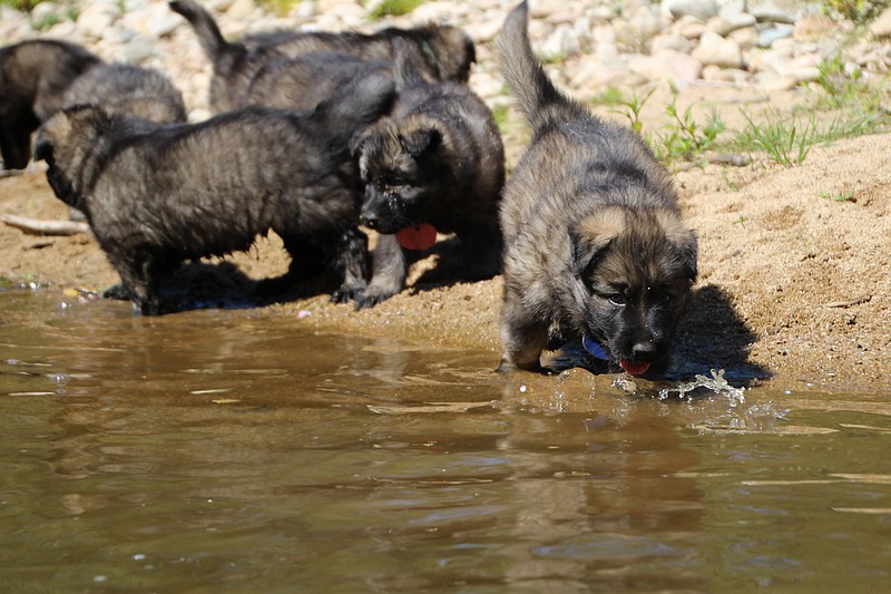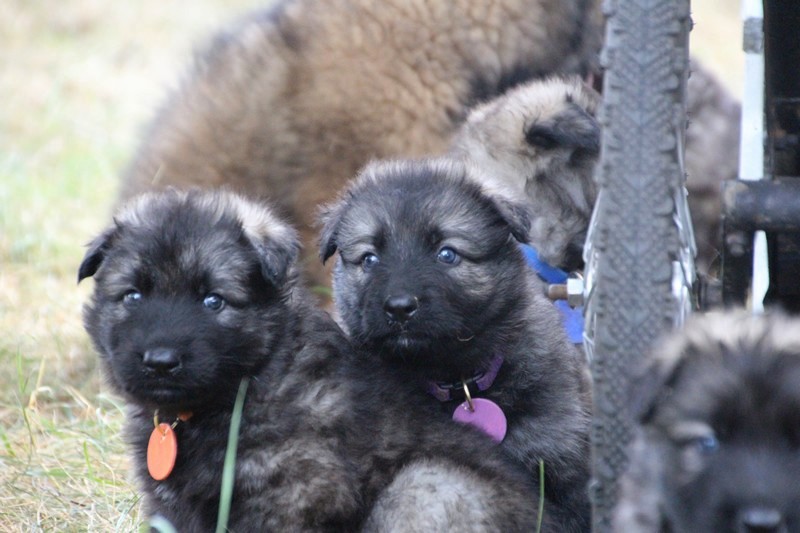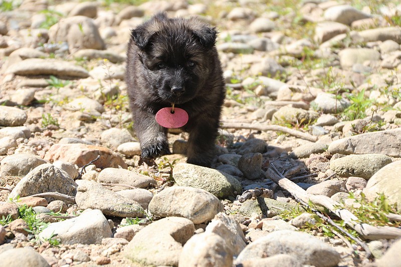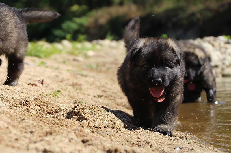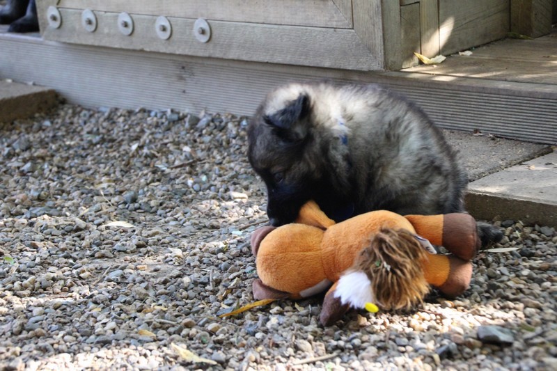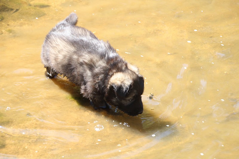 C’est à peu prés notre hauteur, nous gambadons de plus en plus vite et maintenant le parc à chiot n’a plus de secret pour nous. Nous sortons également du parc et apprenons à nous repérer dans les grands espaces et c’est toujours accompagné de maman et du restant de la meute que nous grandissons sereinement.