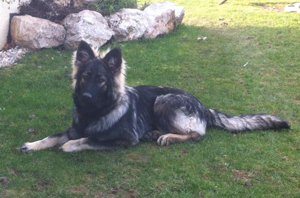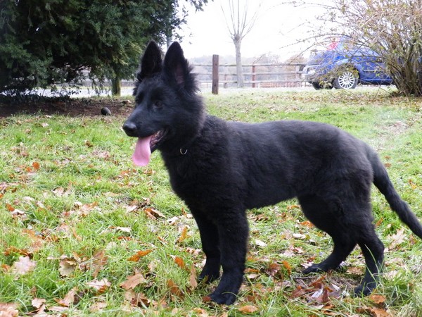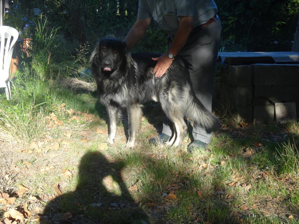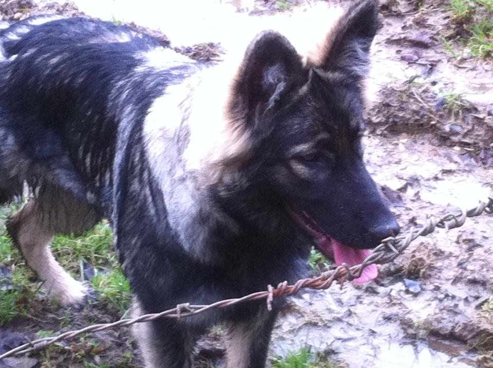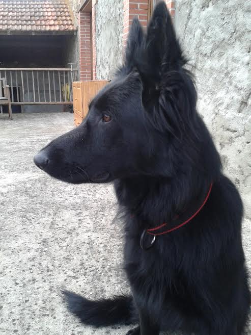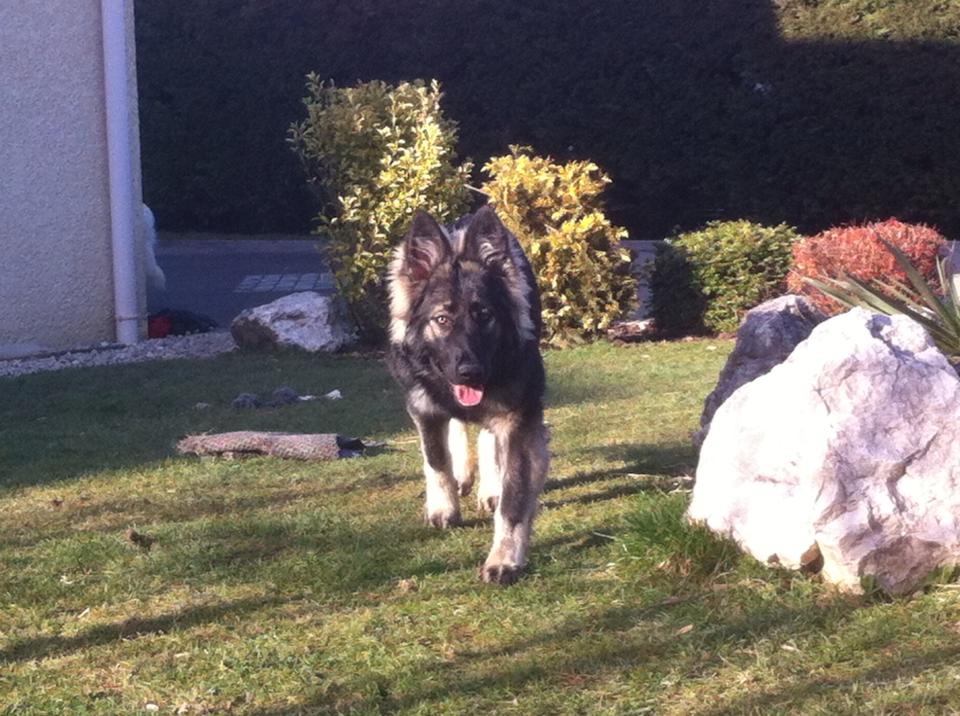 collier vert: Voici des photos de Kilan a 1 an ! Il est adorable, très gentil mais en même temps très nerveux et nous avons parfois du mal à le « canaliser ». Pour l’instant il aboie beaucoup sur les autres chiens mais pas sur les gens. Nous continuons l’éducation et sommes confiants dans notre Kilan que nous avons surnommé selon les cas, Kiki ou Kilanator…