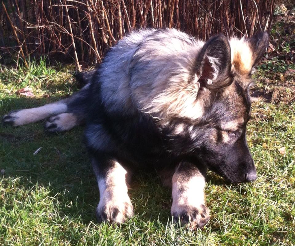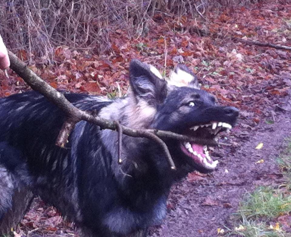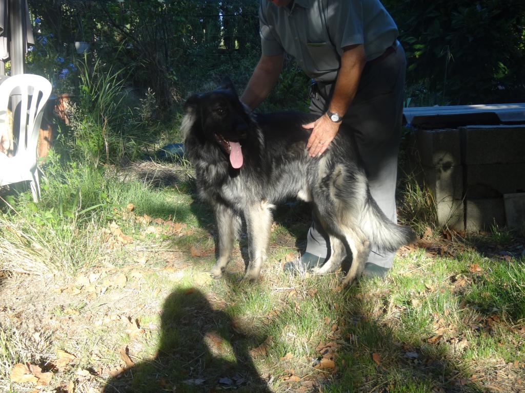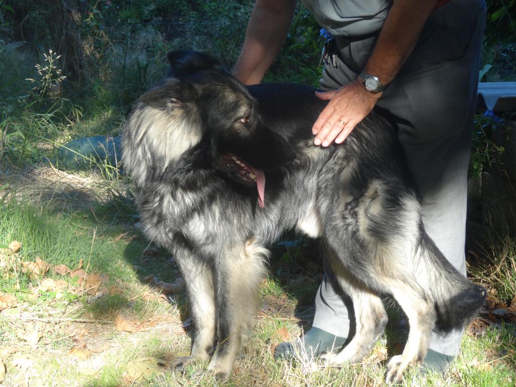 collier vert: Voici des photos de Kilan a 1 an ! Il est adorable, très gentil mais en même temps très nerveux et nous avons parfois du mal à le « canaliser ». Pour l’instant il aboie beaucoup sur les autres chiens mais pas sur les gens. Nous continuons l’éducation et sommes confiants dans notre Kilan que nous avons surnommé selon les cas, Kiki ou Kilanator…