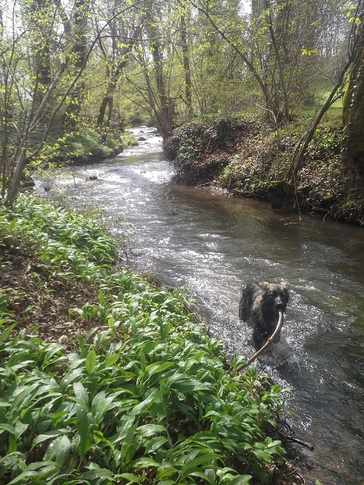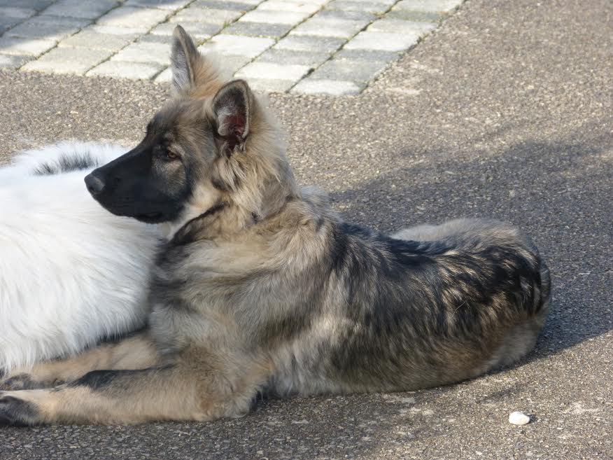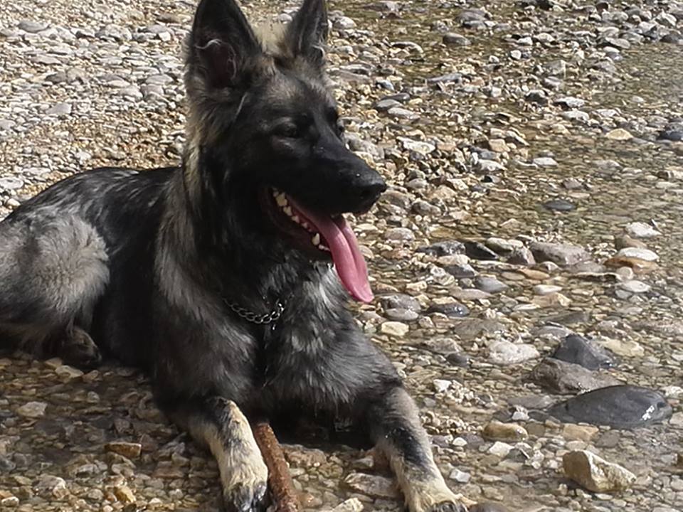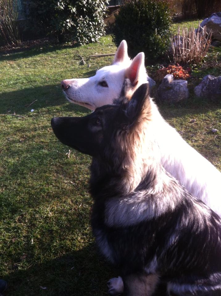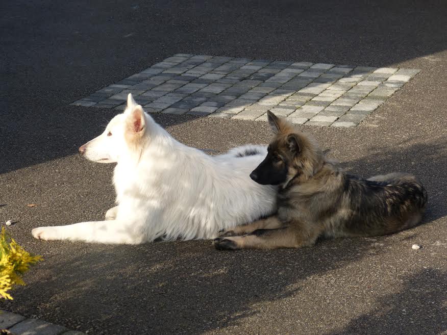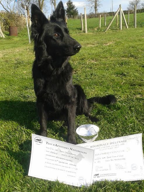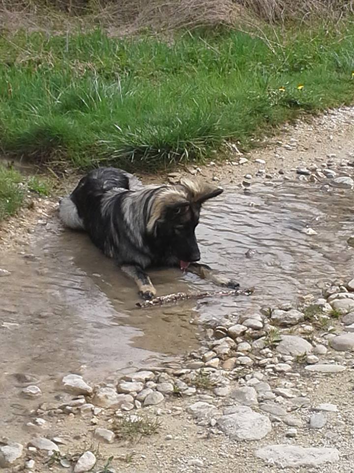 Notre Doudou!! Chienne parfaite, c’est notre valeur sûre avec chien inconnu et avec chiots extra, on a fait la sociabilisation de certains chiots avec son aide. Chienne très réfléchie, dévouée à son patron (il l’emmène avec lui n’importe où, elle suit, l’essentiel pour elle est d’être avec lui (à la ferme, aux bois, à la caserne, bref ! partout et à l’équitation avec moi), on voit dans son regard qu’elle donnerait tout pour lui. Très sportive, adore le cani-vtt (toujours avec Max) et l’eau aussi. Mais surtout c’est un chien de neige, on sait quand il va neiger!!! Depuis quelques temps mademoiselle adore courir les chats mais juste courir. Mais elle n’a pas oublier son éleveuse, il impossible de regarder une vidéo ou tu parles sinon je l’ai sur mon ordinateur en train de te chercher!!