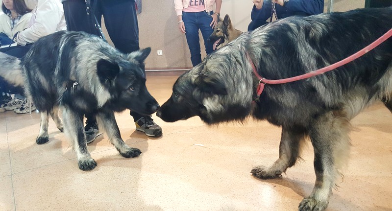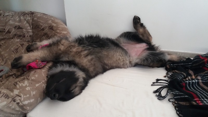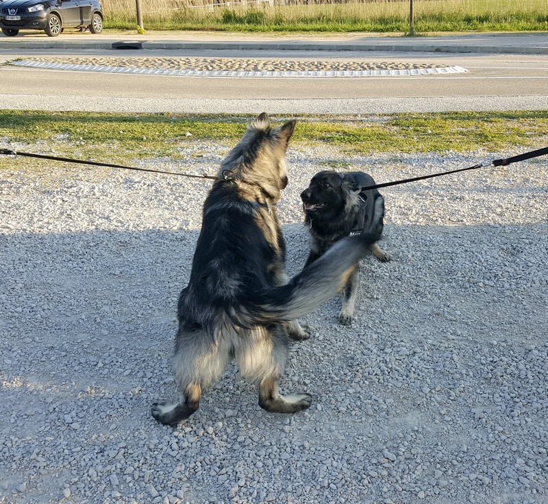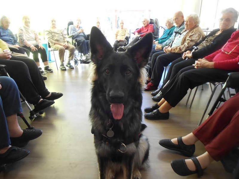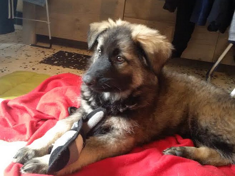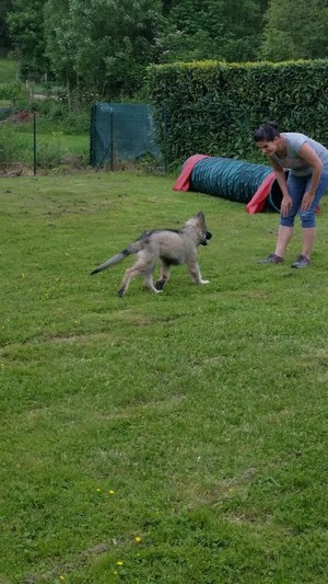 Tout se passe très bien, il est encore un peu craintif quand il y a un chien un peu agressif mais bon à côté de ça il est plus qu’adorable, il est hyper calme, posé et c’est un très bon chien de travail.