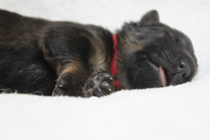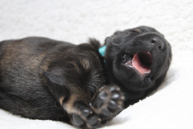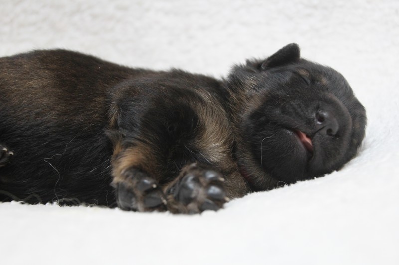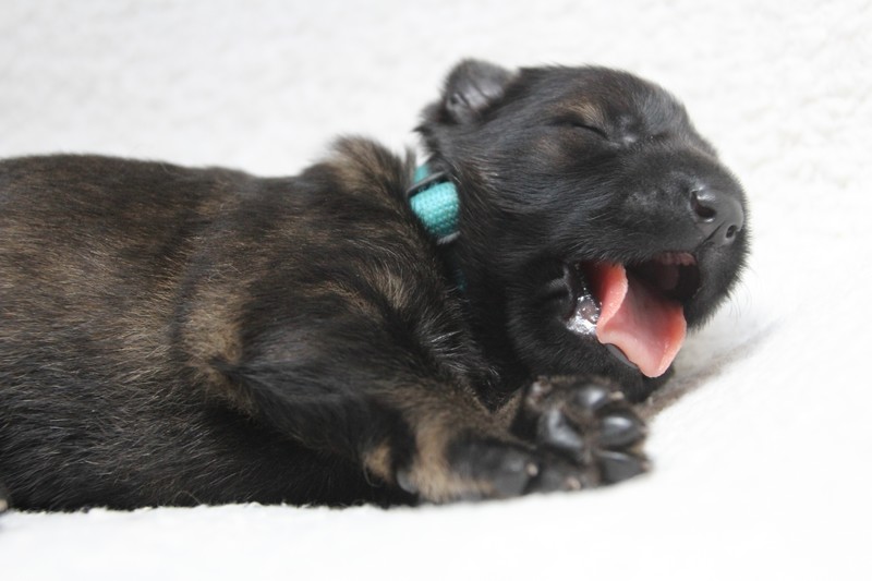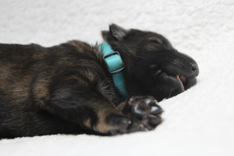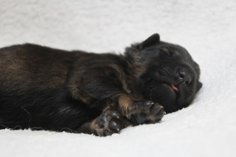 Nous avons passé le cap d’une semaine sans aucun encombre. Notre maman s’occupe très bien de nous et fidèle à ses bonnes habitudes, elle ne laisse aucun nous s’éloigner tel un bon chien de troupeau, nous sommes rassemblés au moindre écart…