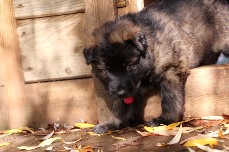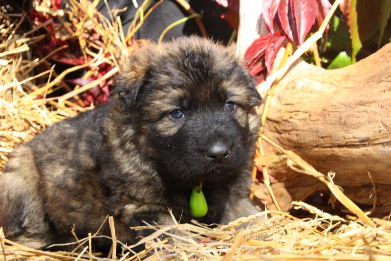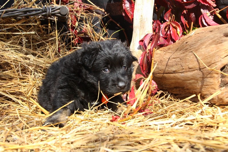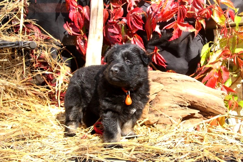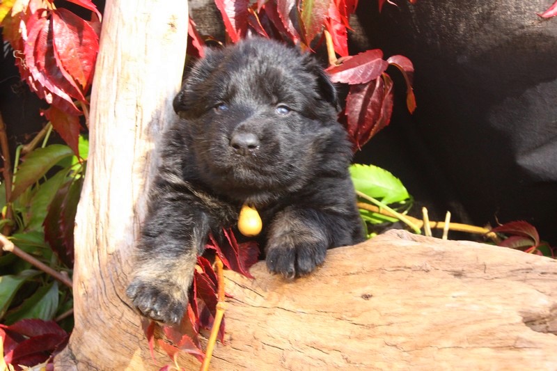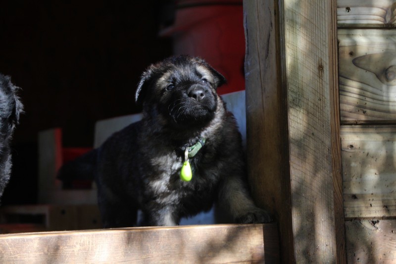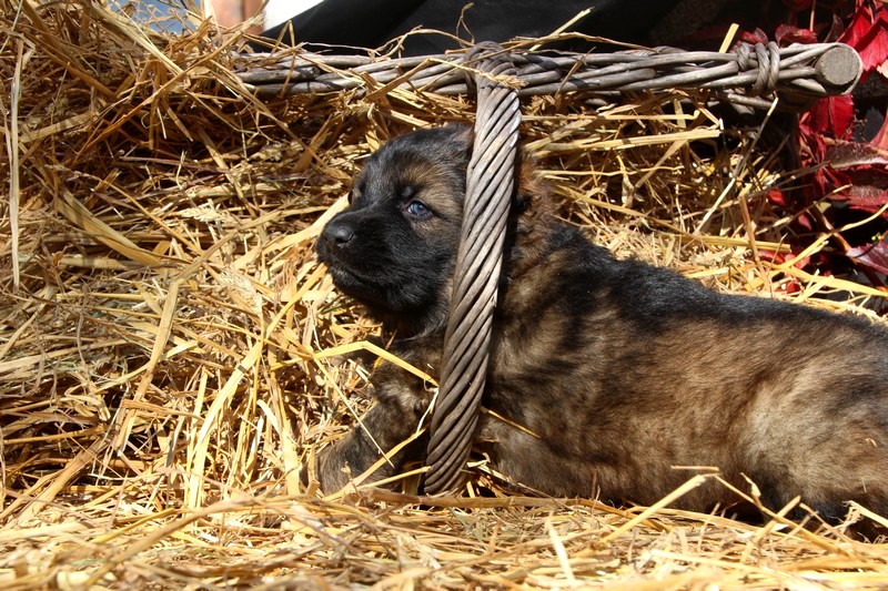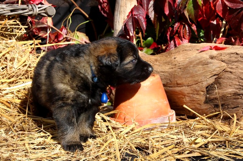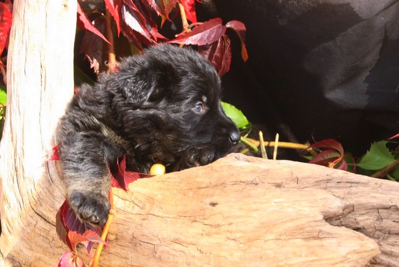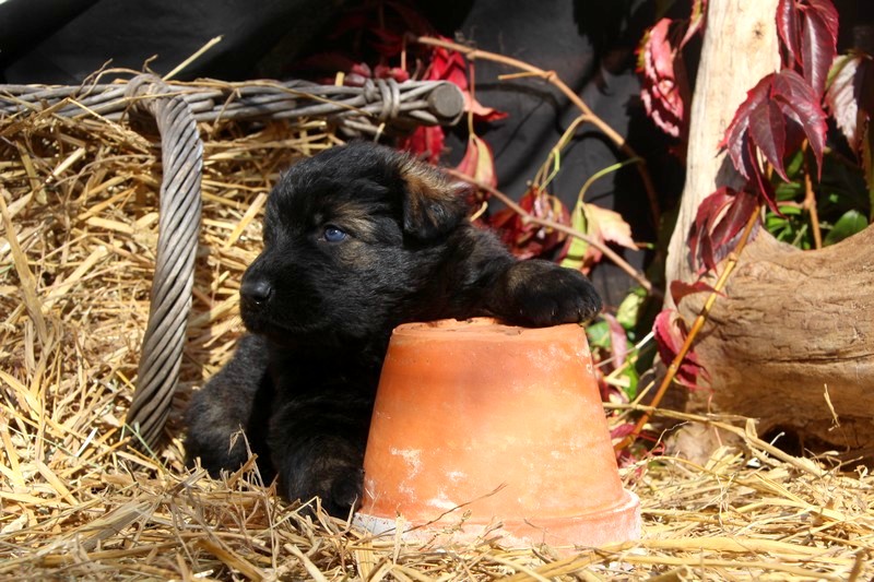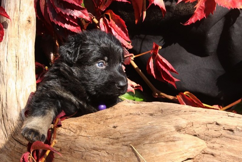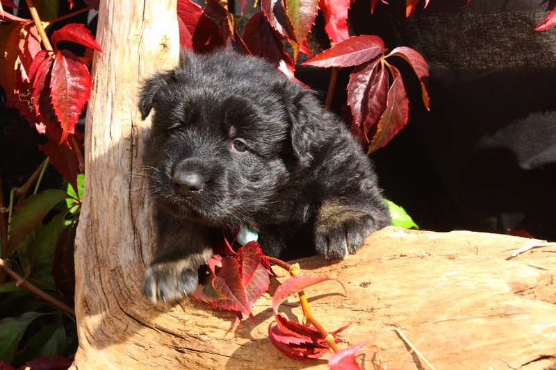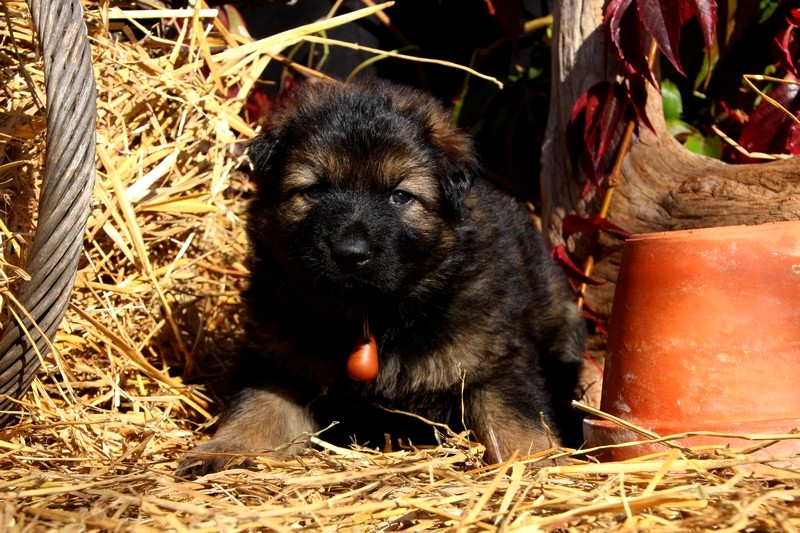 Notre première sortie s’est faite jeudi, dans le parc à chiots, sous un soleil automnale. Il semblerait que c’est là où nous allons apprendre à devenir autonomes et couper le cordon ombilical dans les futures semaines, cela ne nous inquiète pas trop, dès lors ou nous avons plus d’un cordon dans notre pelote… Hé oui ! tata Ice veut bien partager son lait avec nous et maman, elle donne aussi à manger à nos cousins. Si on rajoute à cela le restant de la meute qui nous materne, il va y avoir de quoi s’emmêler les cordons…