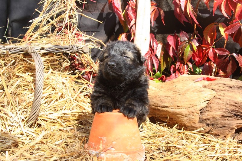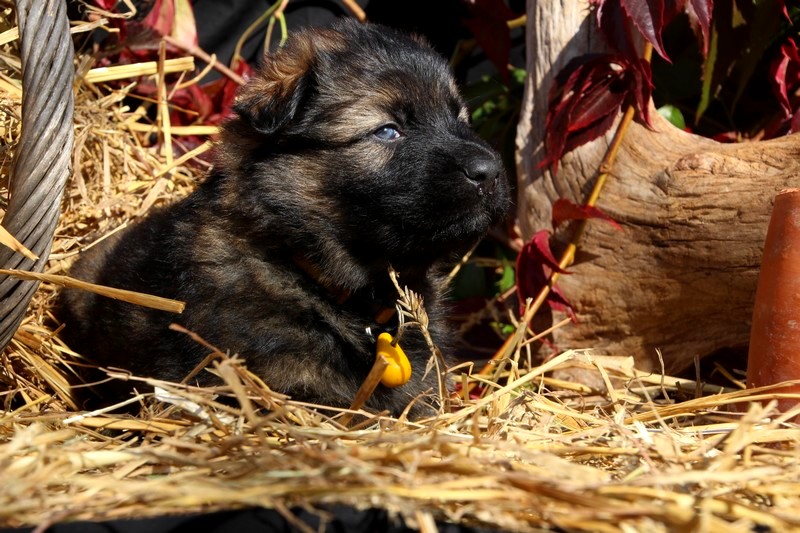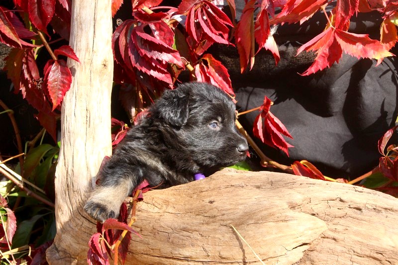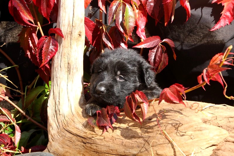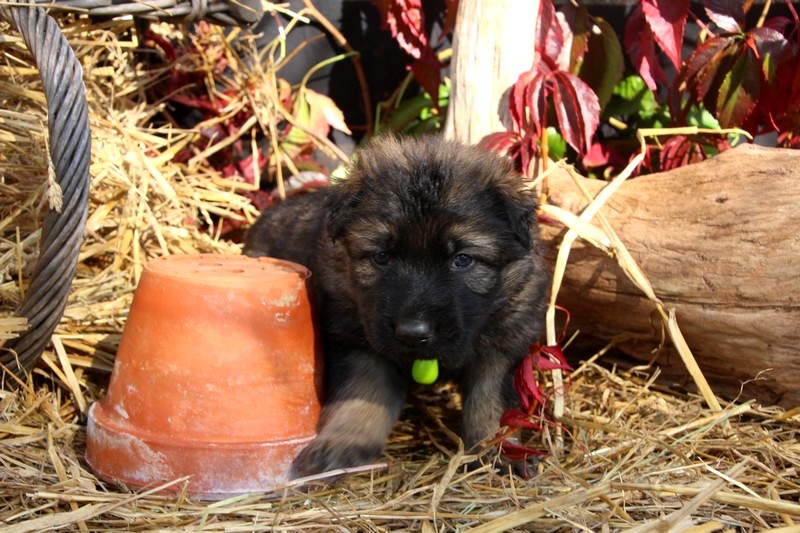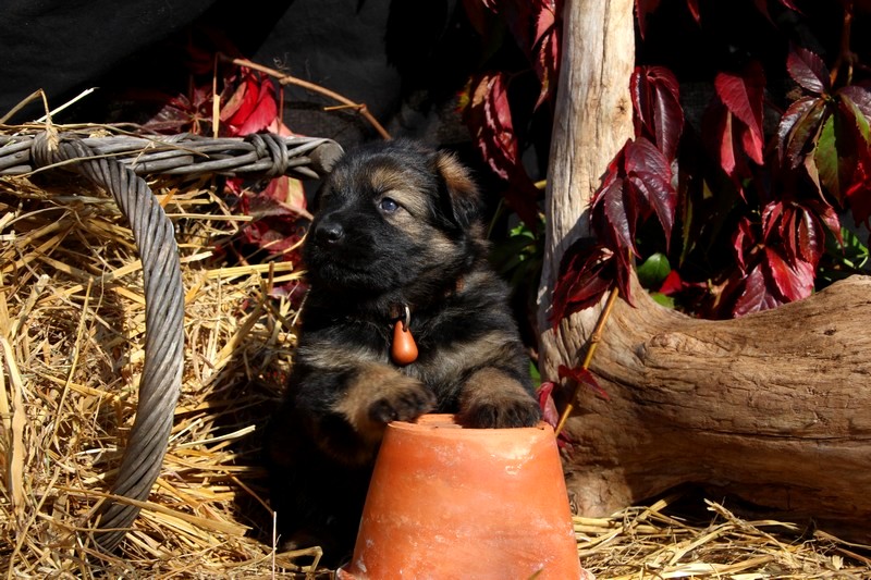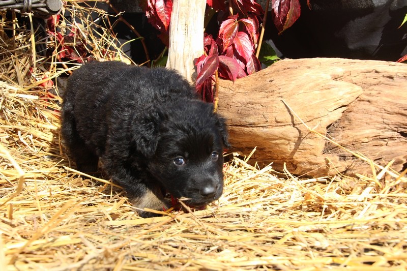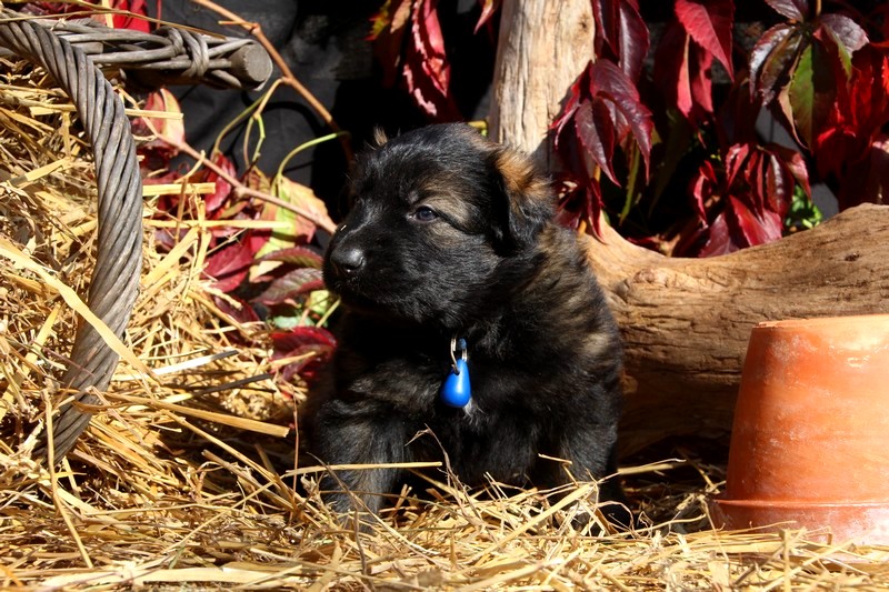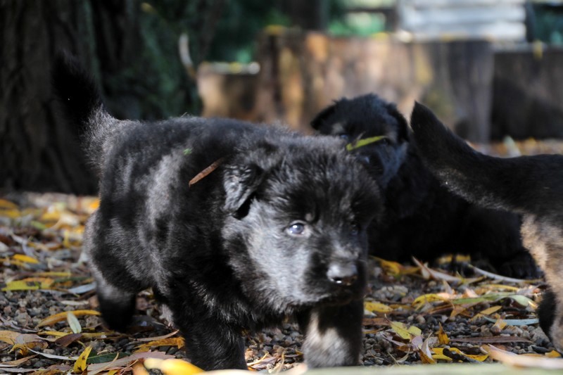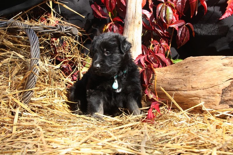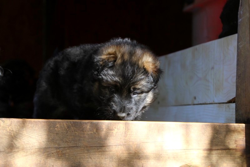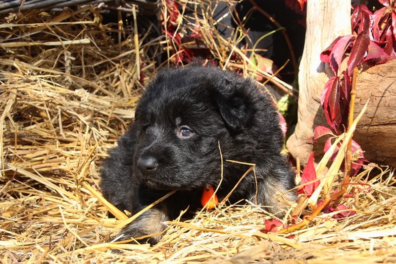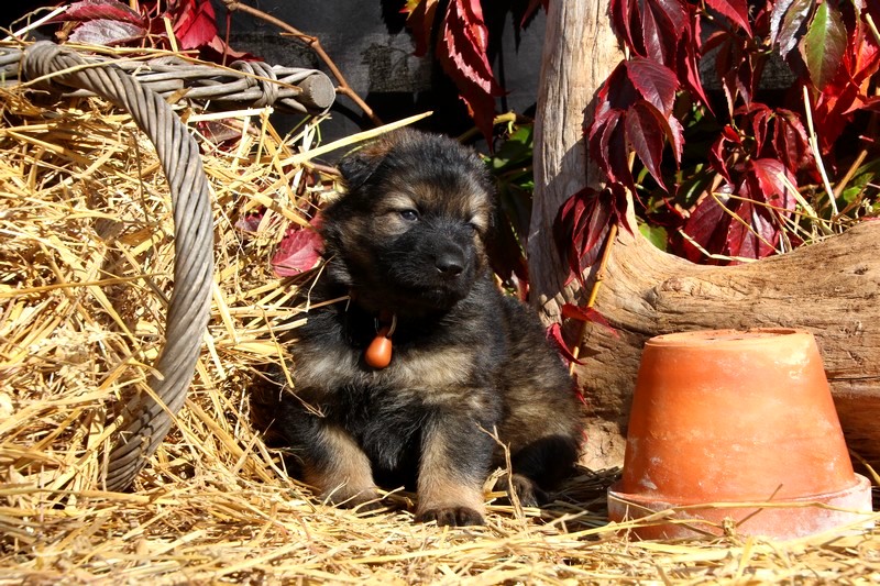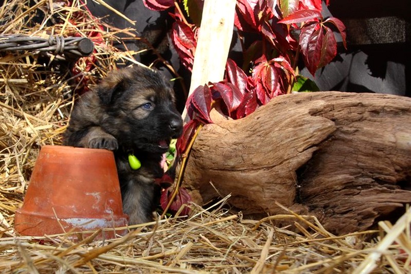 Notre première sortie s’est faite jeudi, dans le parc à chiots, sous un soleil automnale. Il semblerait que c’est là où nous allons apprendre à devenir autonomes et couper le cordon ombilical dans les futures semaines, cela ne nous inquiète pas trop, dès lors ou nous avons plus d’un cordon dans notre pelote… Hé oui ! tata Ice veut bien partager son lait avec nous et maman, elle donne aussi à manger à nos cousins. Si on rajoute à cela le restant de la meute qui nous materne, il va y avoir de quoi s’emmêler les cordons…