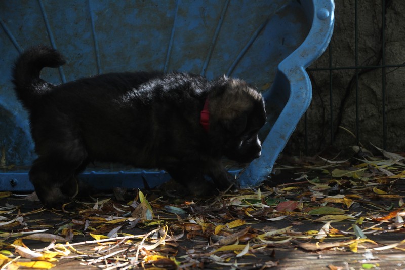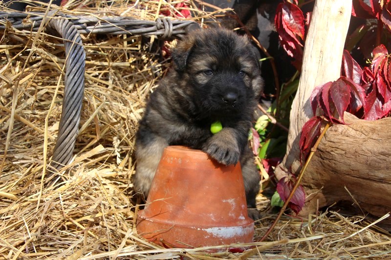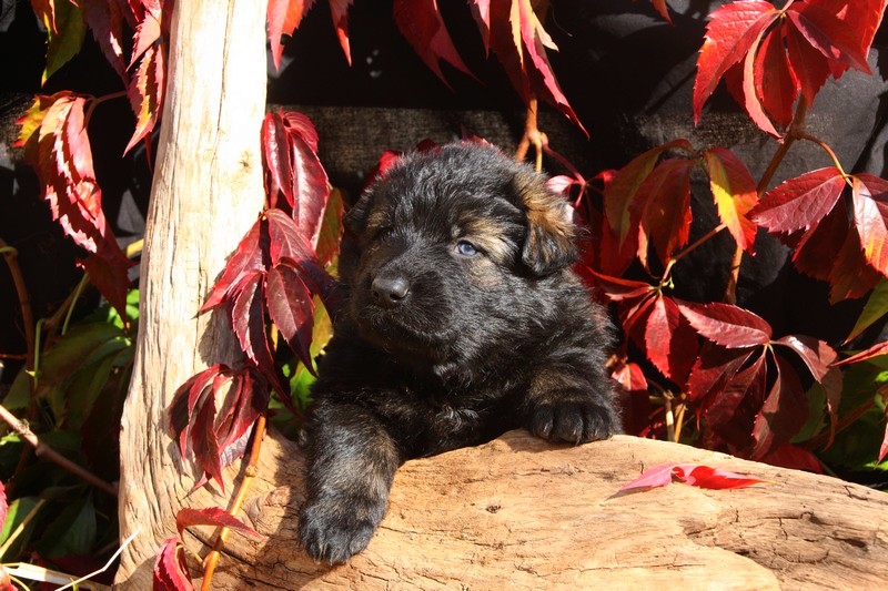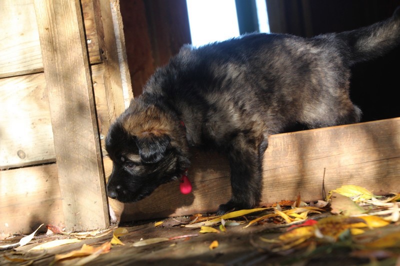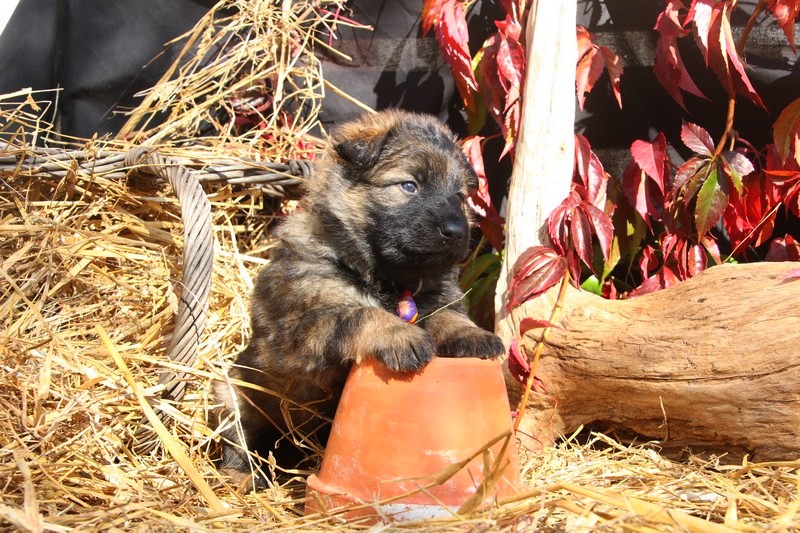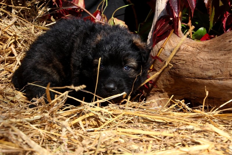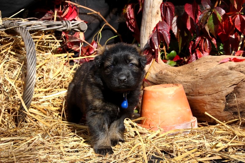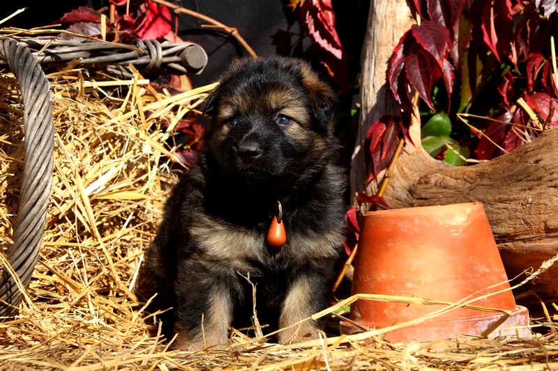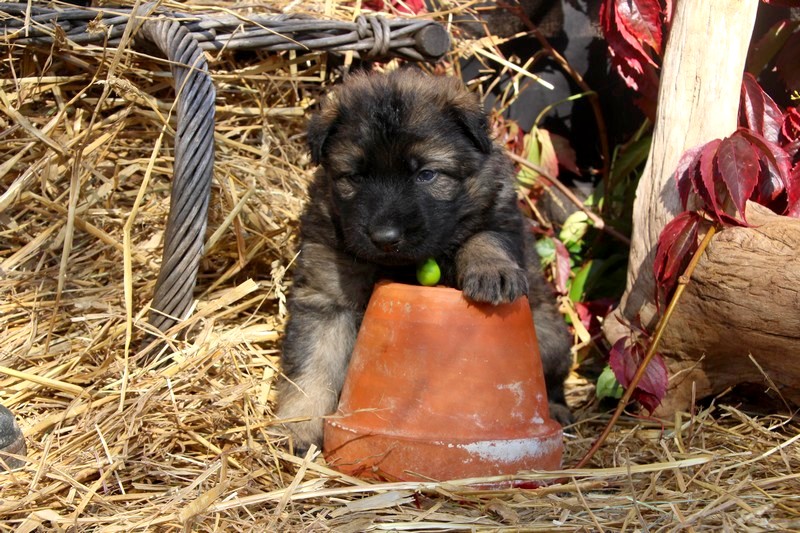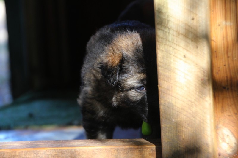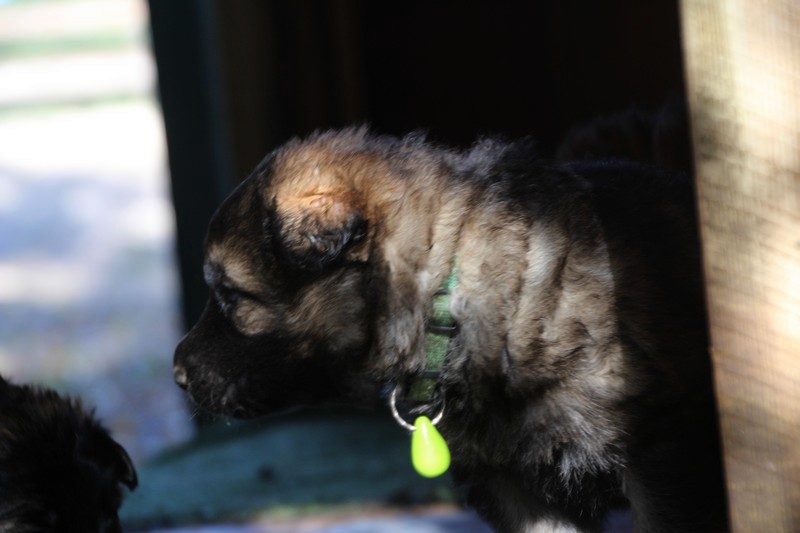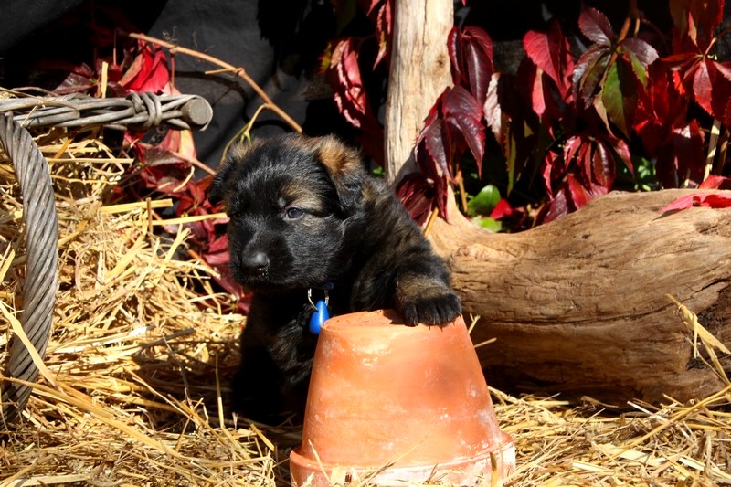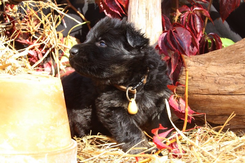 Notre première sortie s’est faite jeudi, dans le parc à chiots, sous un soleil automnale. Il semblerait que c’est là où nous allons apprendre à devenir autonomes et couper le cordon ombilical dans les futures semaines, cela ne nous inquiète pas trop, dès lors ou nous avons plus d’un cordon dans notre pelote… Hé oui ! tata Ice veut bien partager son lait avec nous et maman, elle donne aussi à manger à nos cousins. Si on rajoute à cela le restant de la meute qui nous materne, il va y avoir de quoi s’emmêler les cordons…