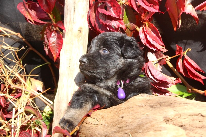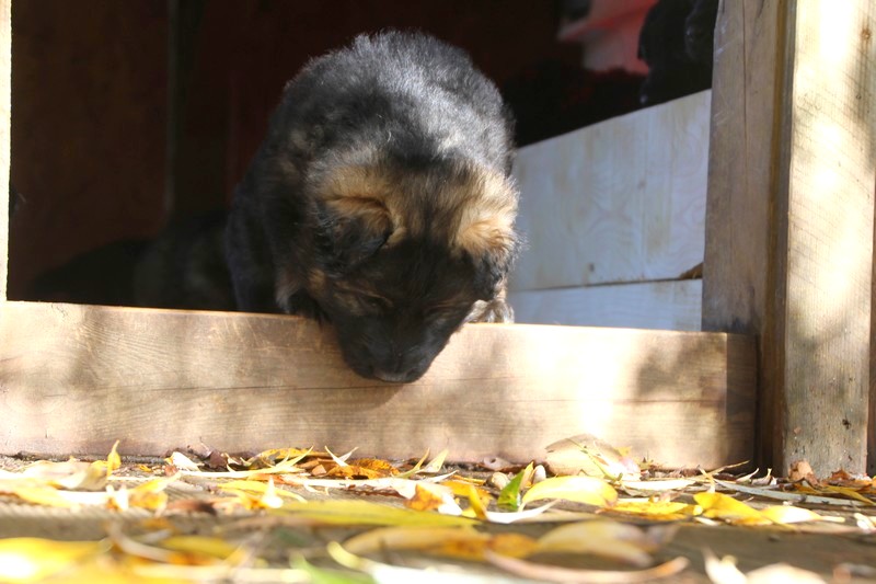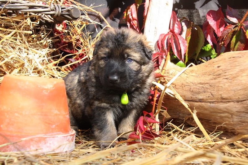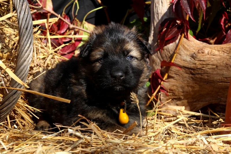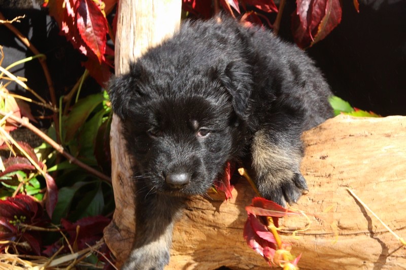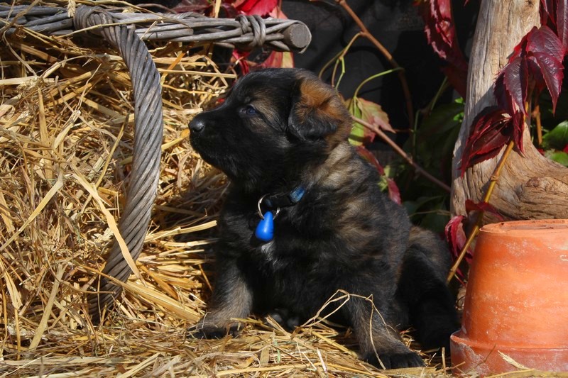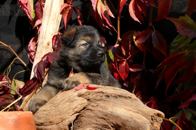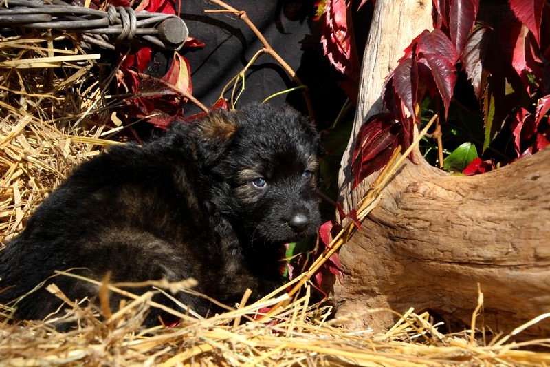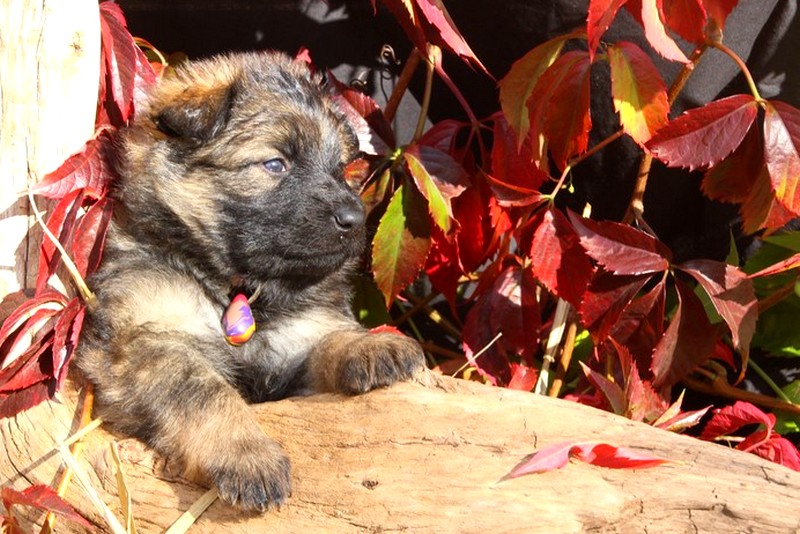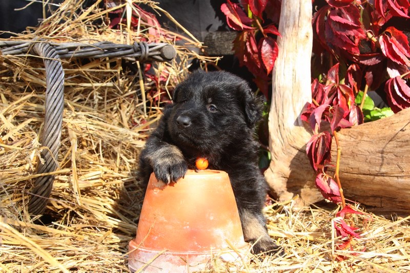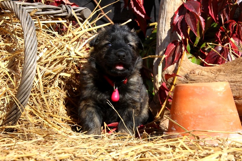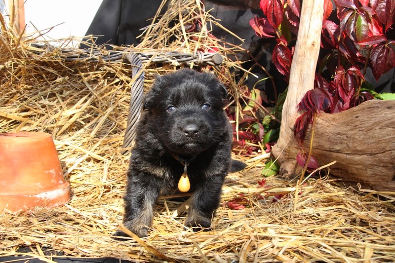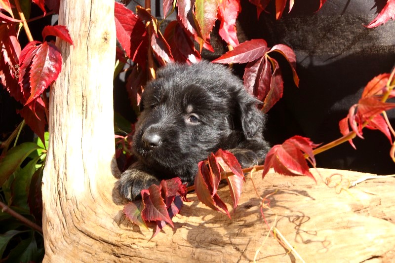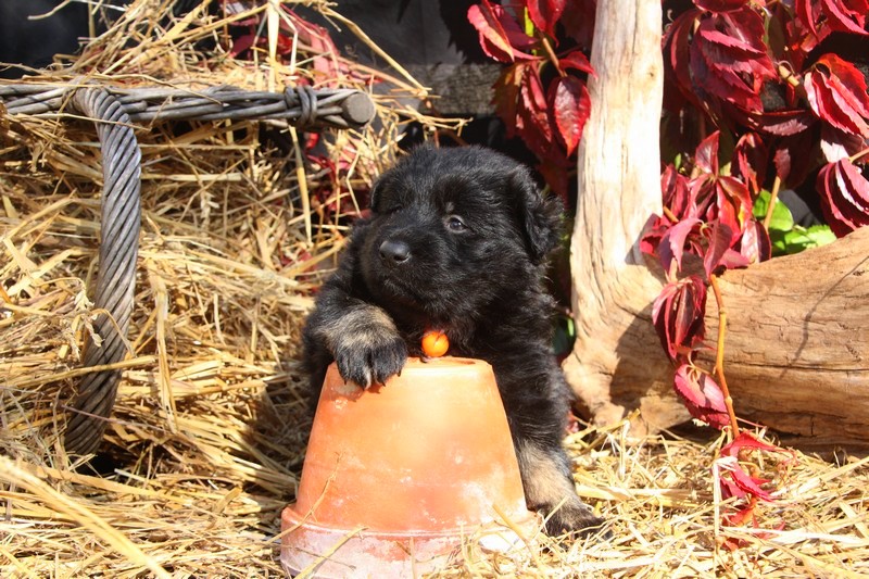 Notre première sortie s’est faite jeudi, dans le parc à chiots, sous un soleil automnale. Il semblerait que c’est là où nous allons apprendre à devenir autonomes et couper le cordon ombilical dans les futures semaines, cela ne nous inquiète pas trop, dès lors ou nous avons plus d’un cordon dans notre pelote… Hé oui ! tata Ice veut bien partager son lait avec nous et maman, elle donne aussi à manger à nos cousins. Si on rajoute à cela le restant de la meute qui nous materne, il va y avoir de quoi s’emmêler les cordons…