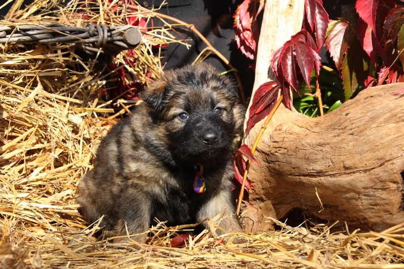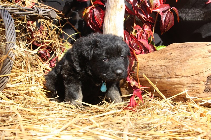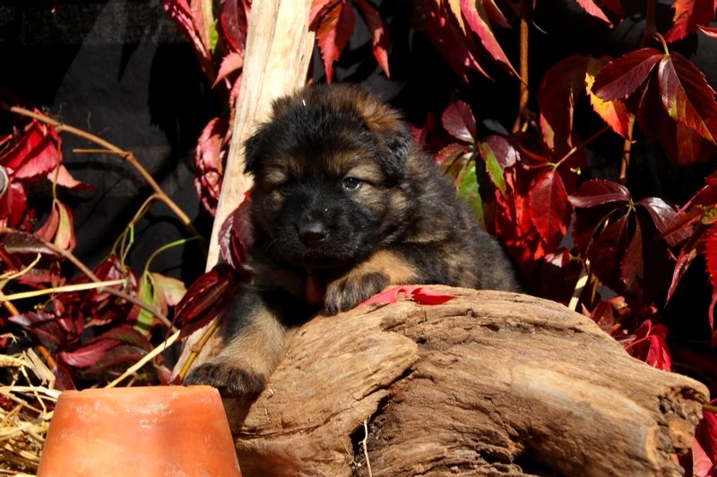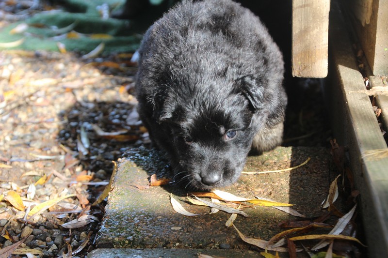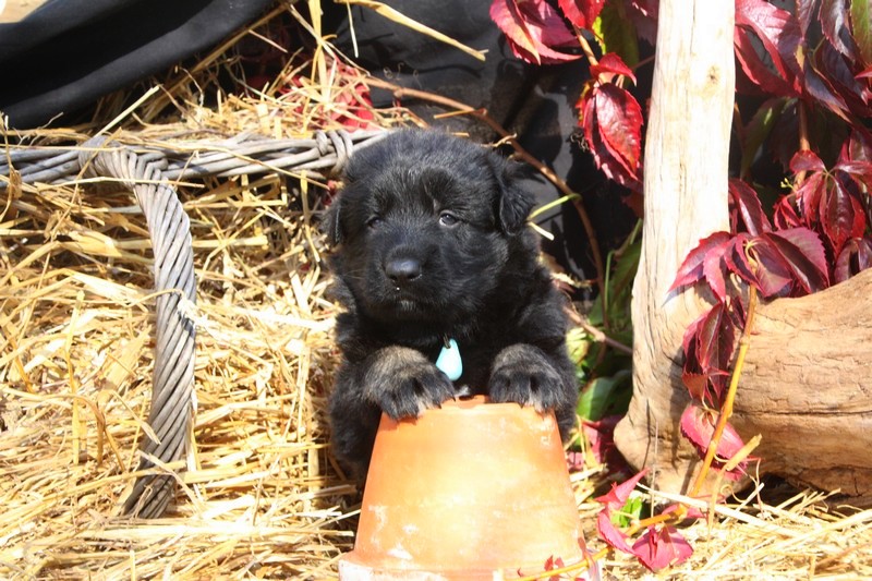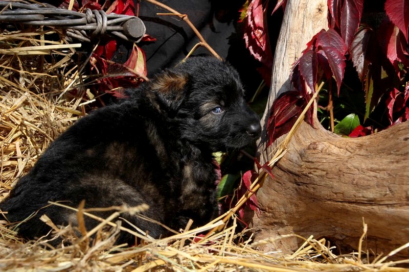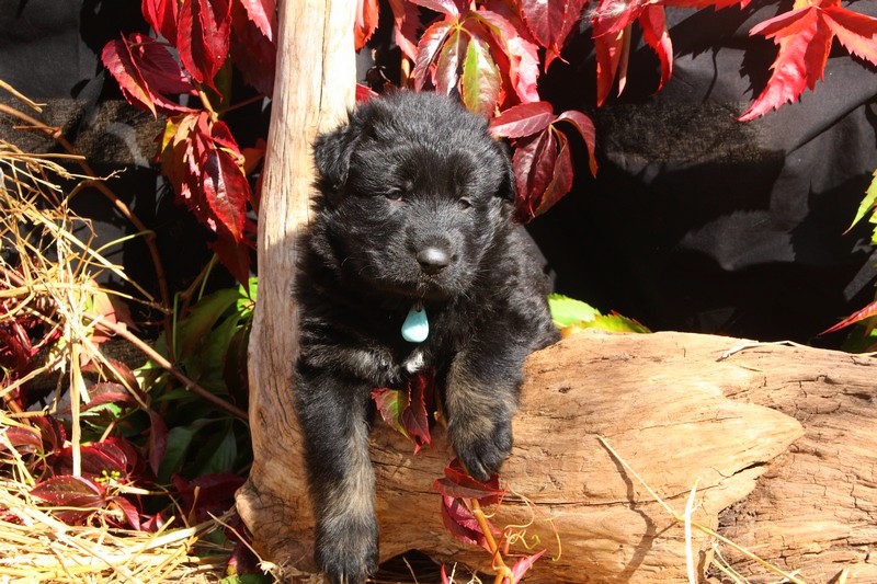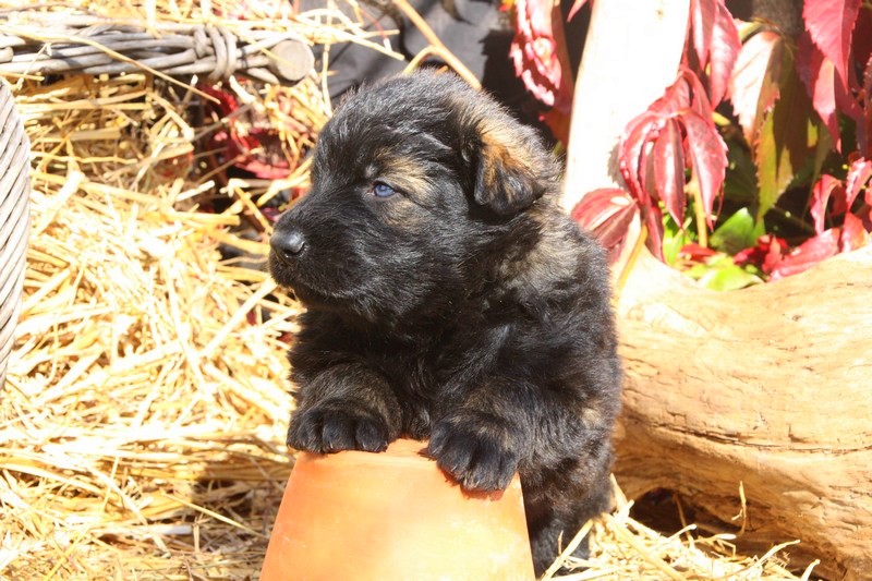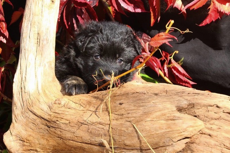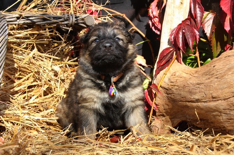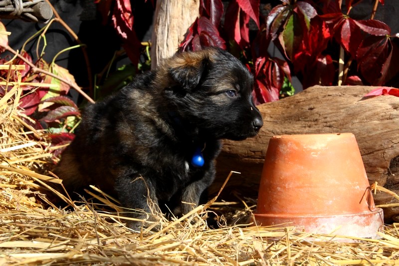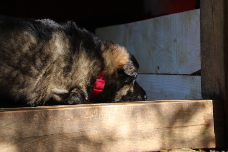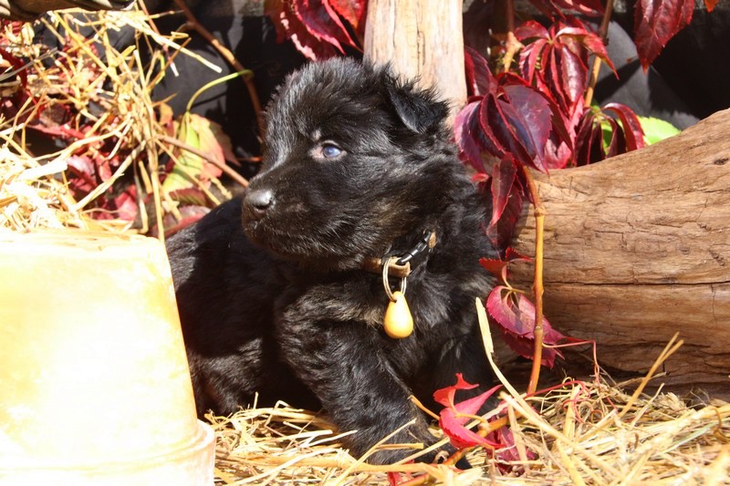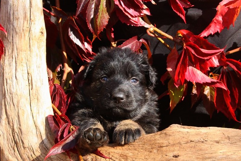 Notre première sortie s’est faite jeudi, dans le parc à chiots, sous un soleil automnale. Il semblerait que c’est là où nous allons apprendre à devenir autonomes et couper le cordon ombilical dans les futures semaines, cela ne nous inquiète pas trop, dès lors ou nous avons plus d’un cordon dans notre pelote… Hé oui ! tata Ice veut bien partager son lait avec nous et maman, elle donne aussi à manger à nos cousins. Si on rajoute à cela le restant de la meute qui nous materne, il va y avoir de quoi s’emmêler les cordons…