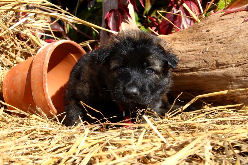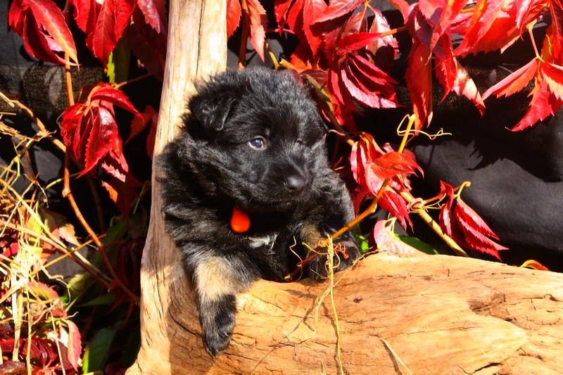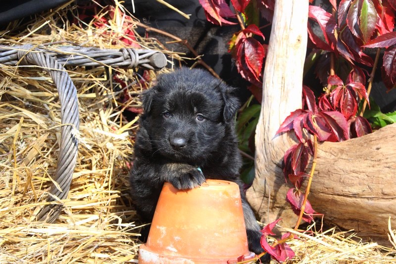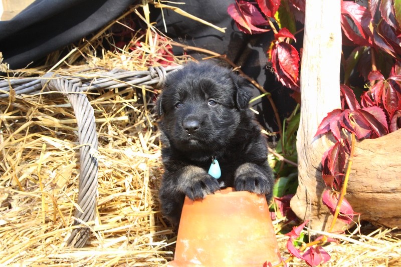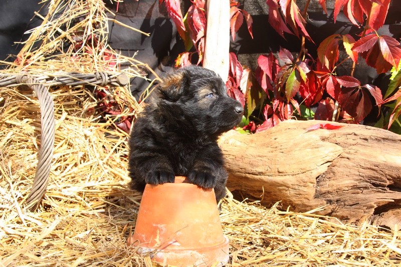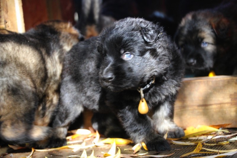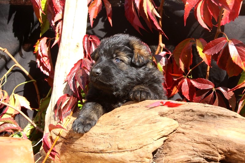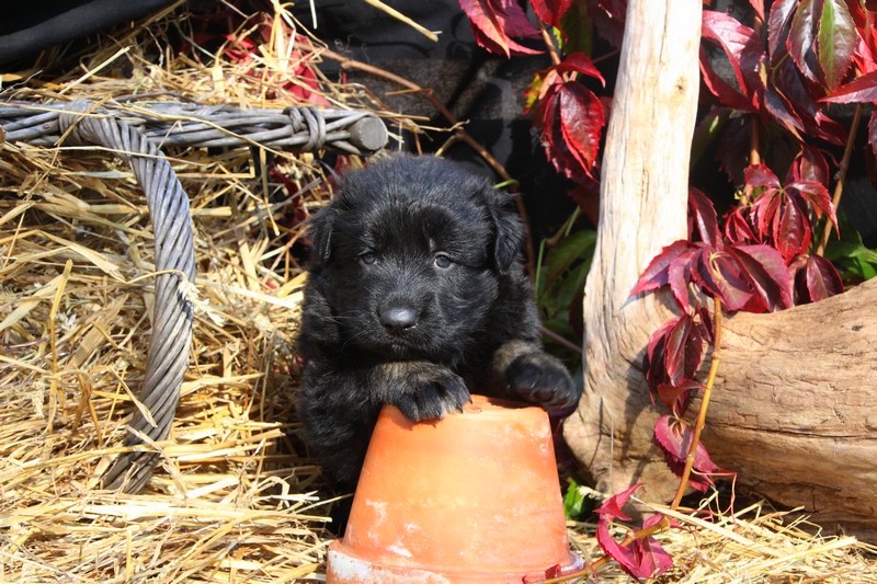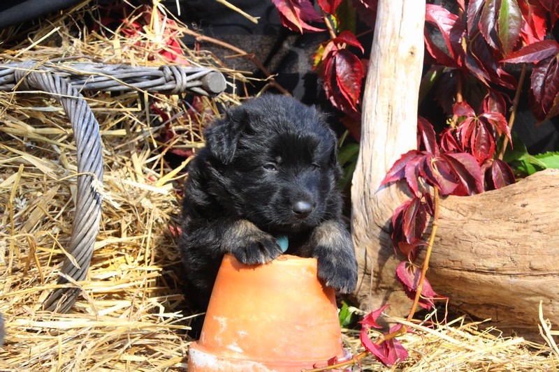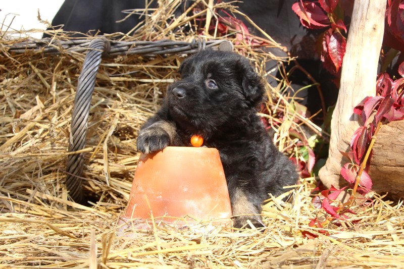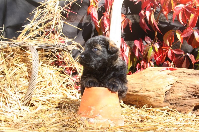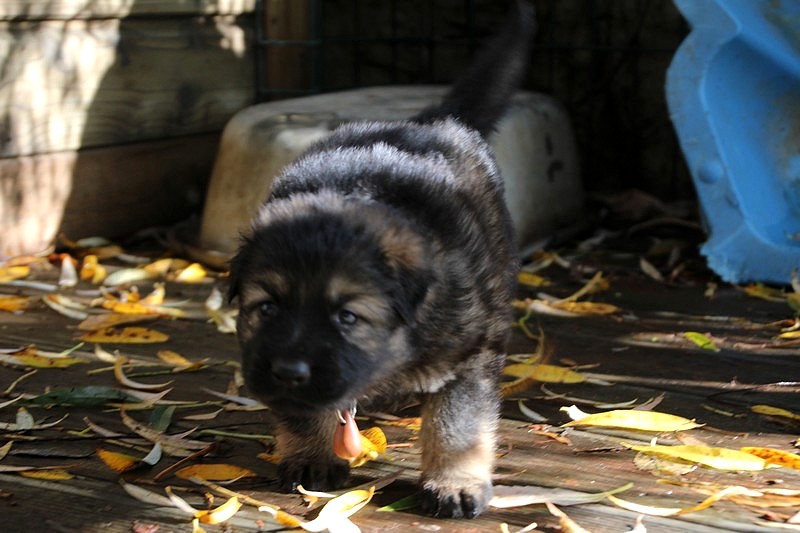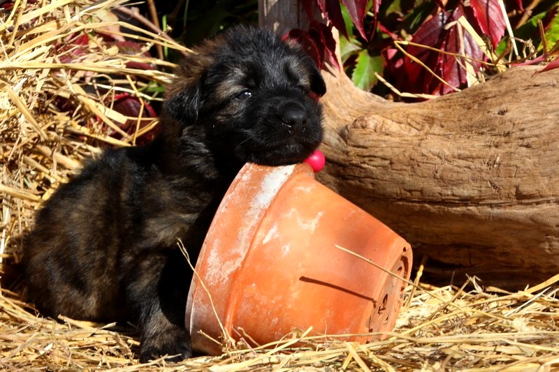 Notre première sortie s’est faite jeudi, dans le parc à chiots, sous un soleil automnale. Il semblerait que c’est là où nous allons apprendre à devenir autonomes et couper le cordon ombilical dans les futures semaines, cela ne nous inquiète pas trop, dès lors ou nous avons plus d’un cordon dans notre pelote… Hé oui ! tata Ice veut bien partager son lait avec nous et maman, elle donne aussi à manger à nos cousins. Si on rajoute à cela le restant de la meute qui nous materne, il va y avoir de quoi s’emmêler les cordons…