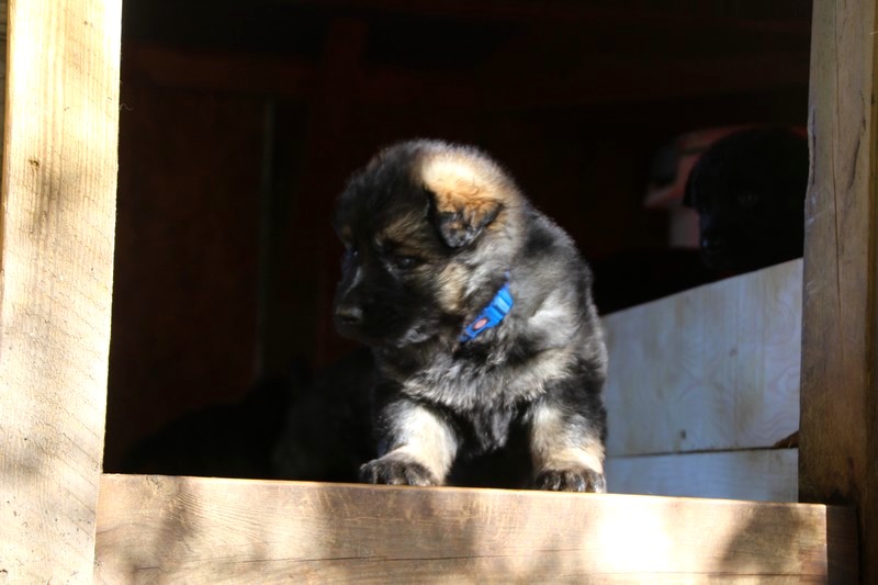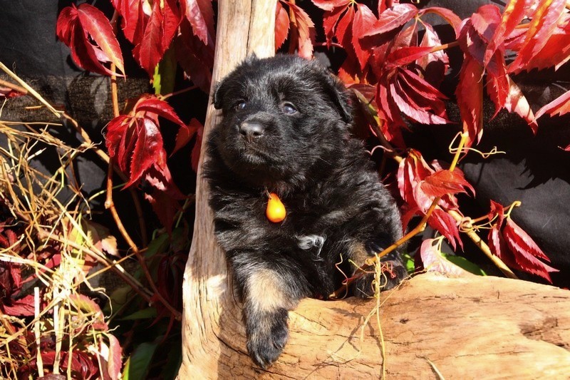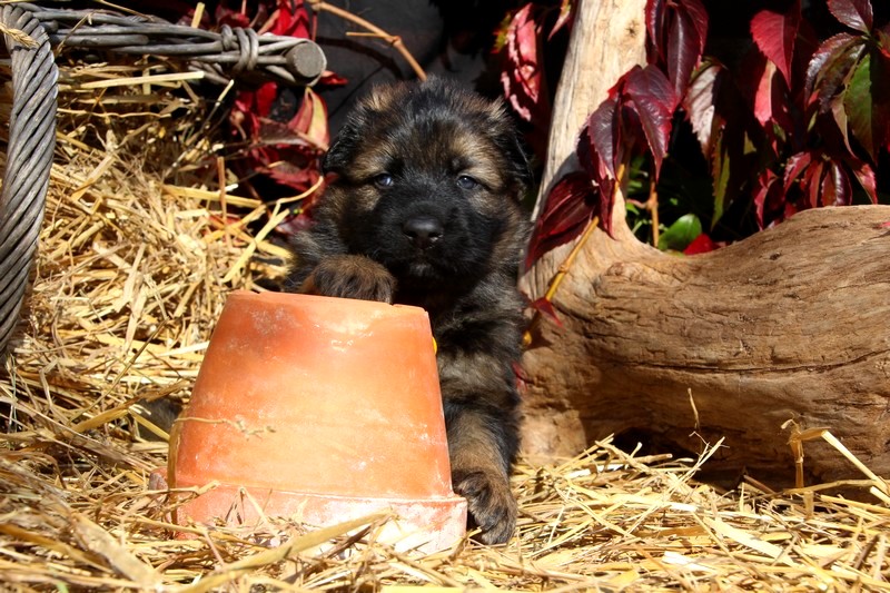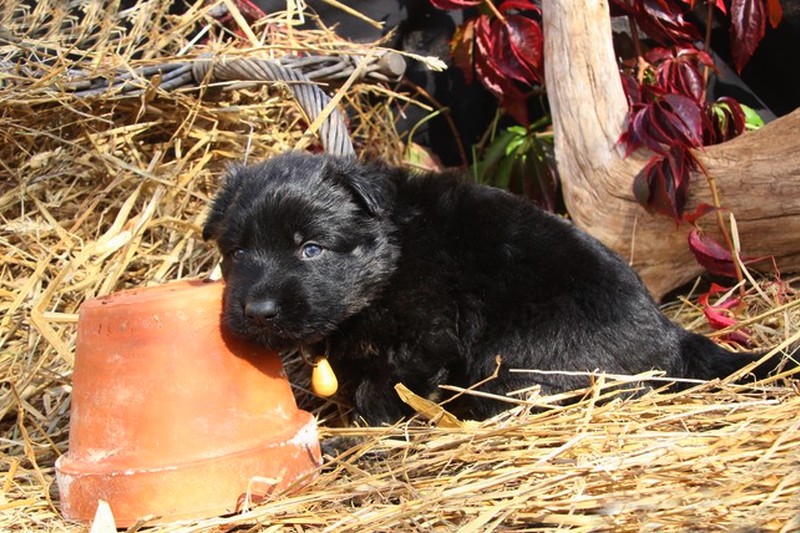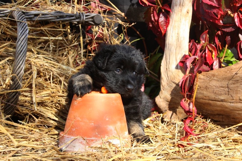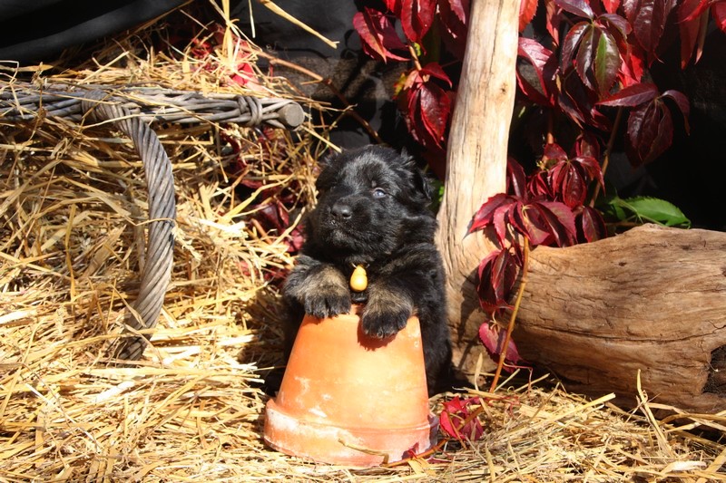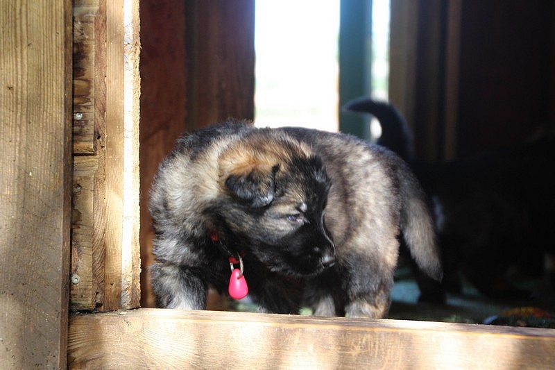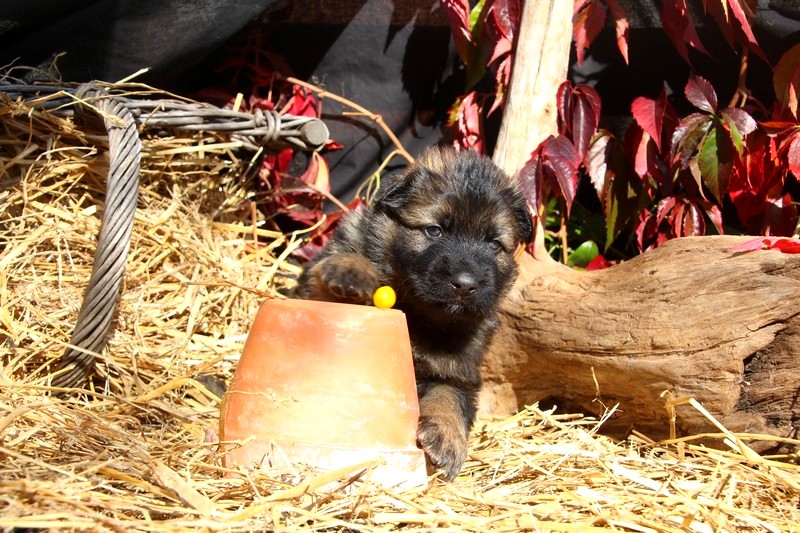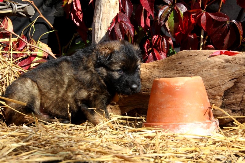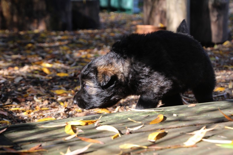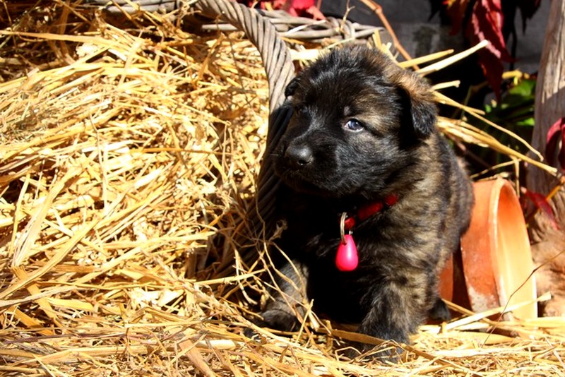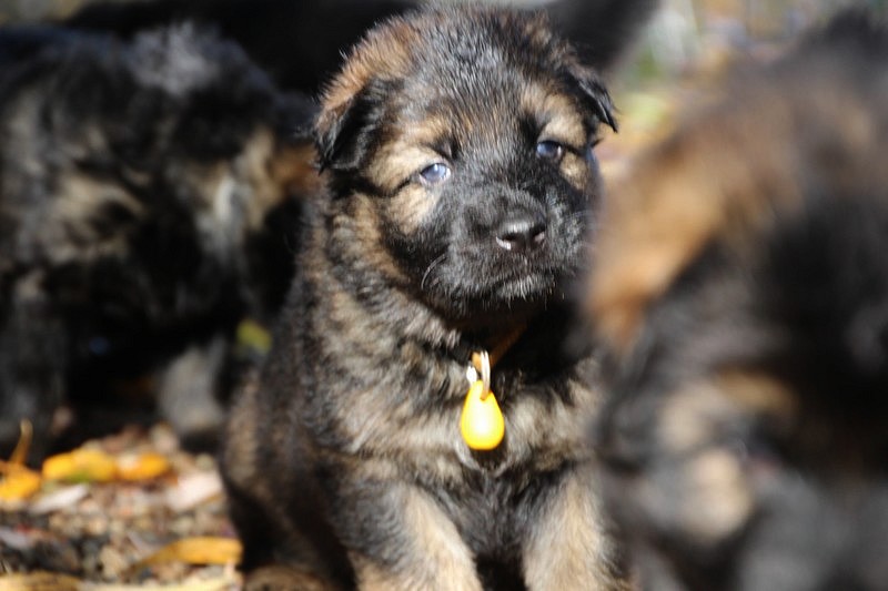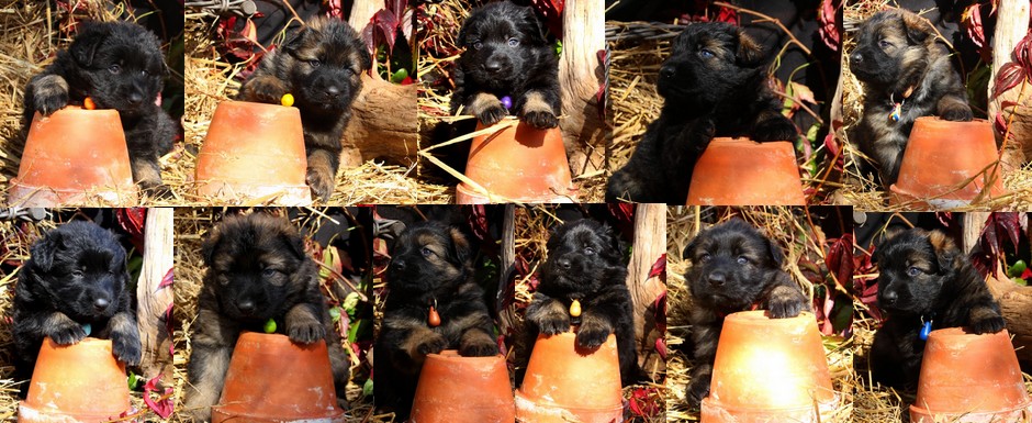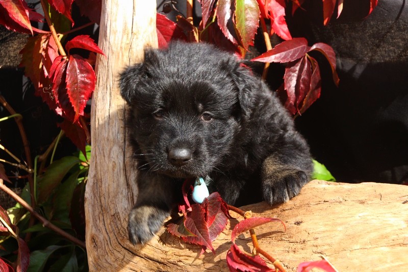 Notre première sortie s’est faite jeudi, dans le parc à chiots, sous un soleil automnale. Il semblerait que c’est là où nous allons apprendre à devenir autonomes et couper le cordon ombilical dans les futures semaines, cela ne nous inquiète pas trop, dès lors ou nous avons plus d’un cordon dans notre pelote… Hé oui ! tata Ice veut bien partager son lait avec nous et maman, elle donne aussi à manger à nos cousins. Si on rajoute à cela le restant de la meute qui nous materne, il va y avoir de quoi s’emmêler les cordons…