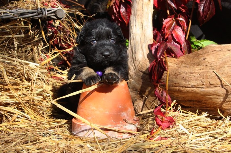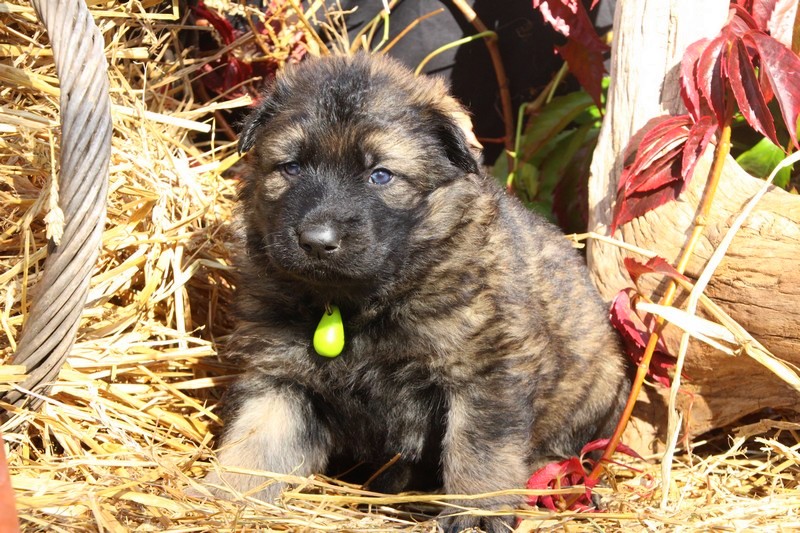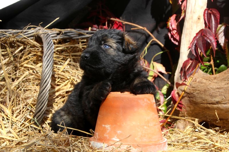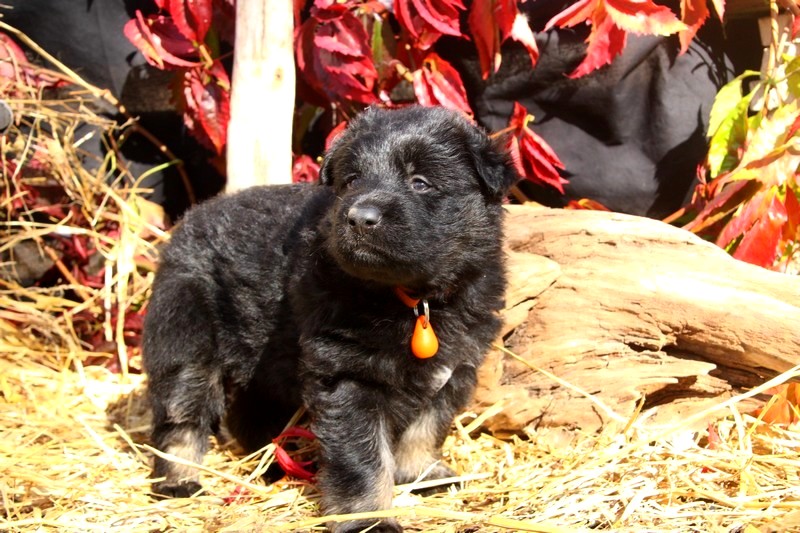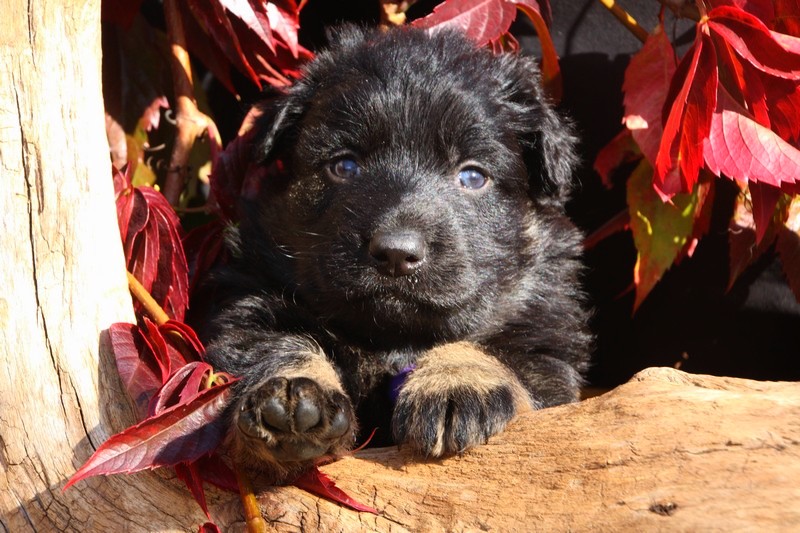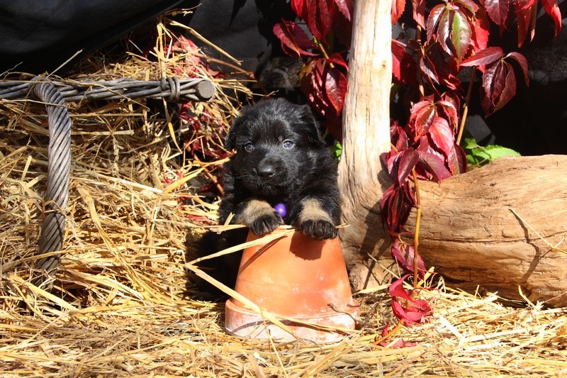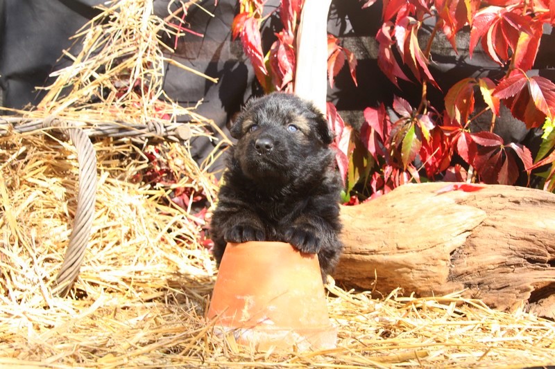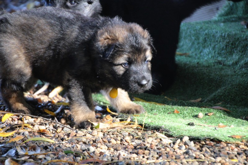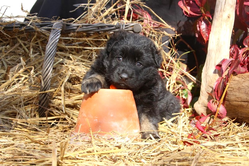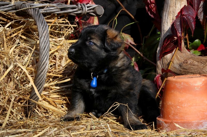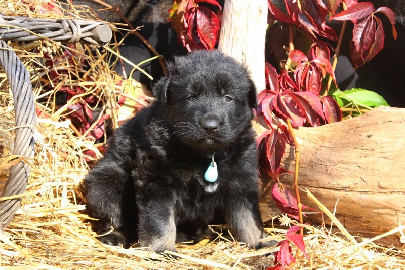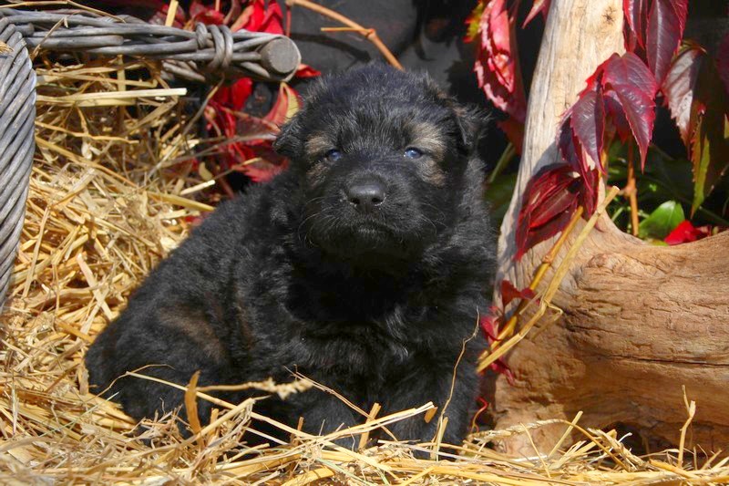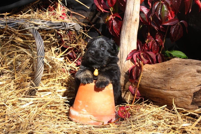 Notre première sortie s’est faite jeudi, dans le parc à chiots, sous un soleil automnale. Il semblerait que c’est là où nous allons apprendre à devenir autonomes et couper le cordon ombilical dans les futures semaines, cela ne nous inquiète pas trop, dès lors ou nous avons plus d’un cordon dans notre pelote… Hé oui ! tata Ice veut bien partager son lait avec nous et maman, elle donne aussi à manger à nos cousins. Si on rajoute à cela le restant de la meute qui nous materne, il va y avoir de quoi s’emmêler les cordons…