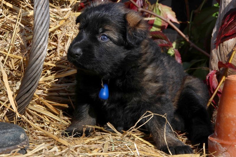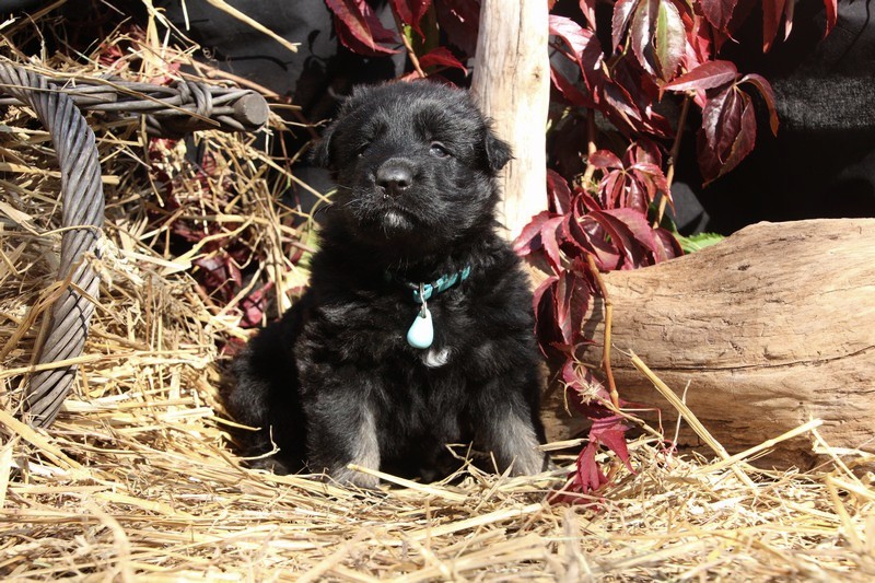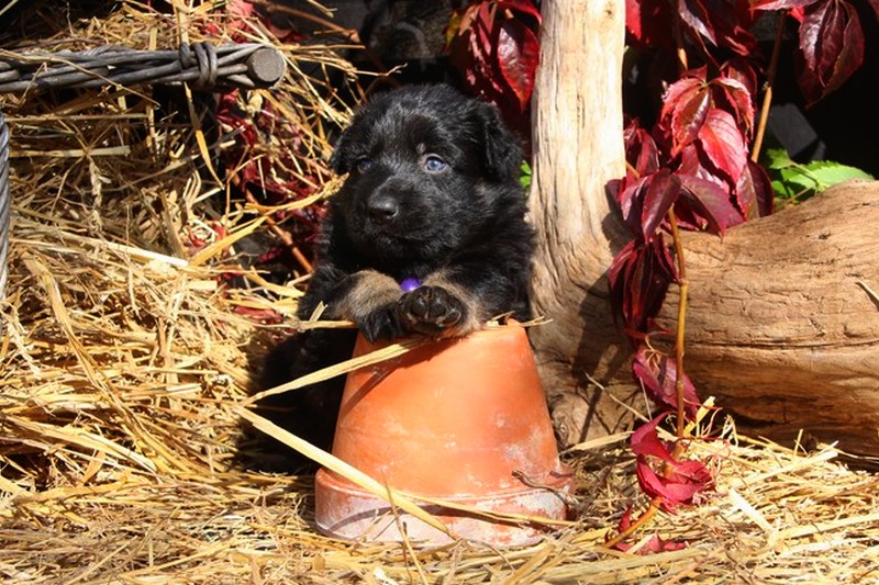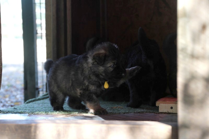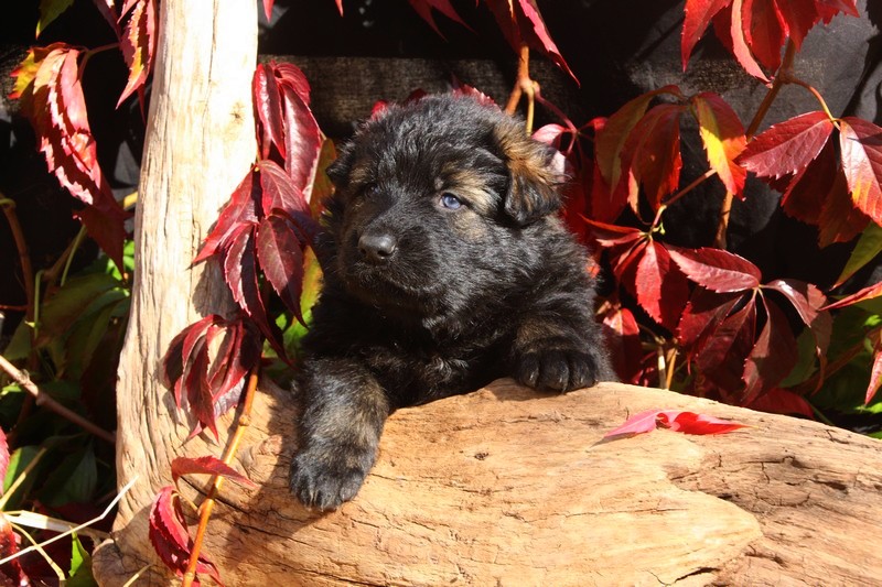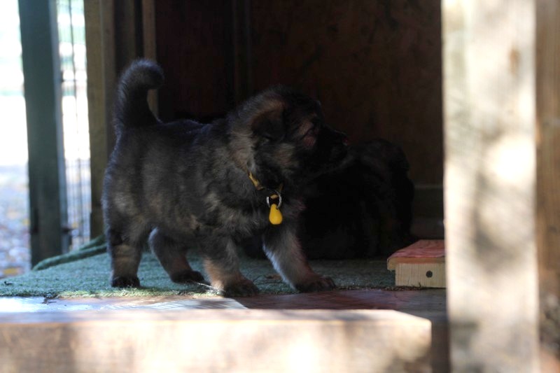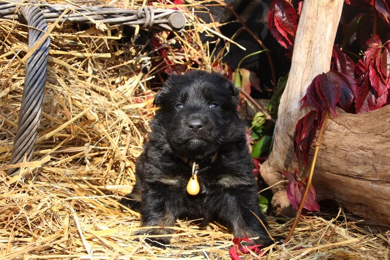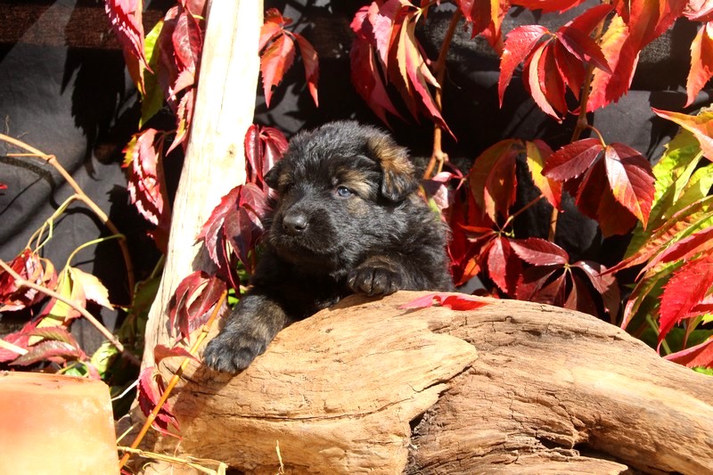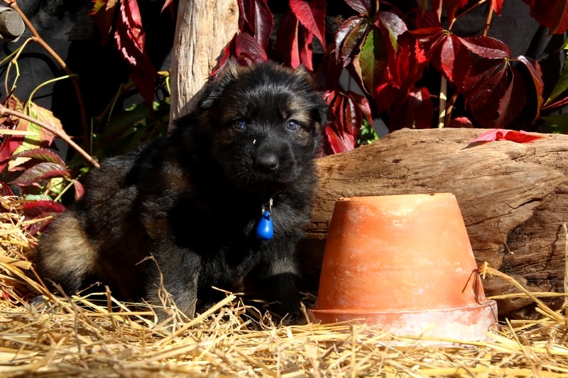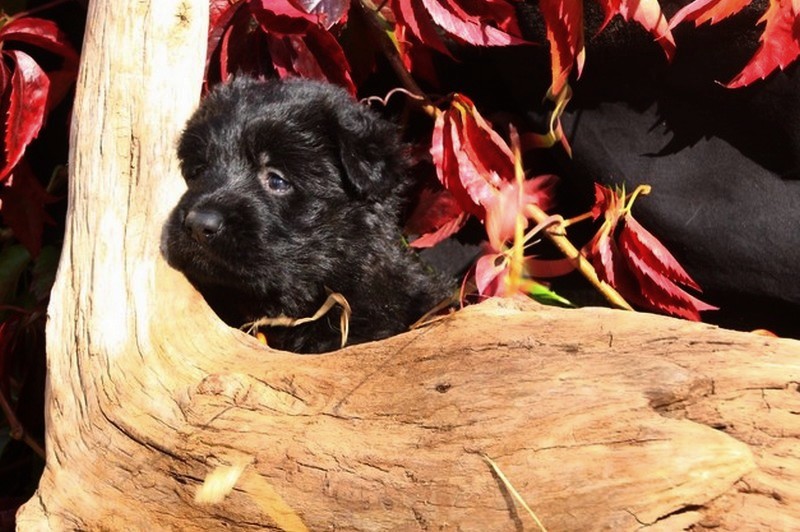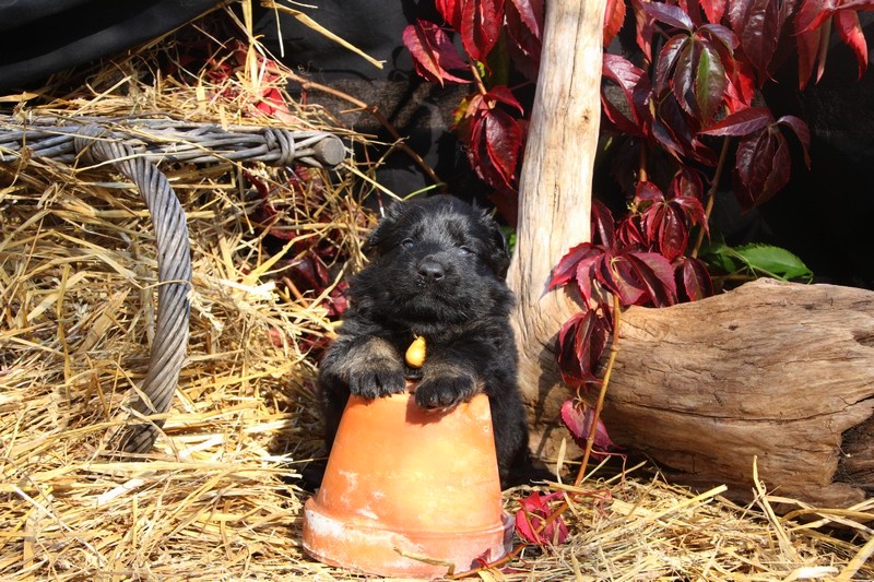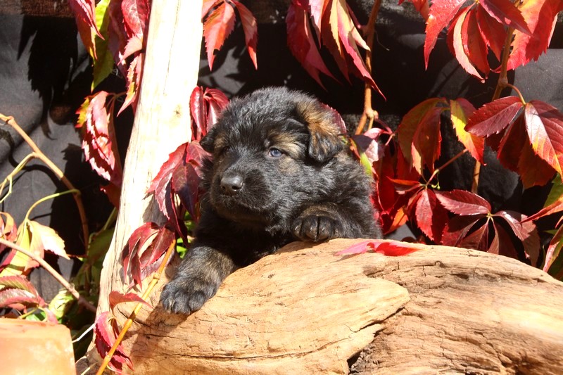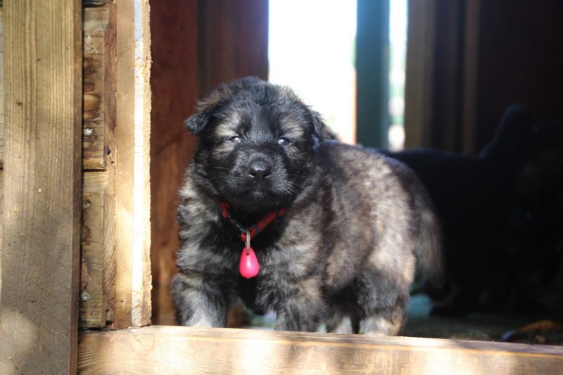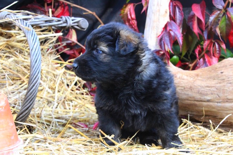 Notre première sortie s’est faite jeudi, dans le parc à chiots, sous un soleil automnale. Il semblerait que c’est là où nous allons apprendre à devenir autonomes et couper le cordon ombilical dans les futures semaines, cela ne nous inquiète pas trop, dès lors ou nous avons plus d’un cordon dans notre pelote… Hé oui ! tata Ice veut bien partager son lait avec nous et maman, elle donne aussi à manger à nos cousins. Si on rajoute à cela le restant de la meute qui nous materne, il va y avoir de quoi s’emmêler les cordons…
