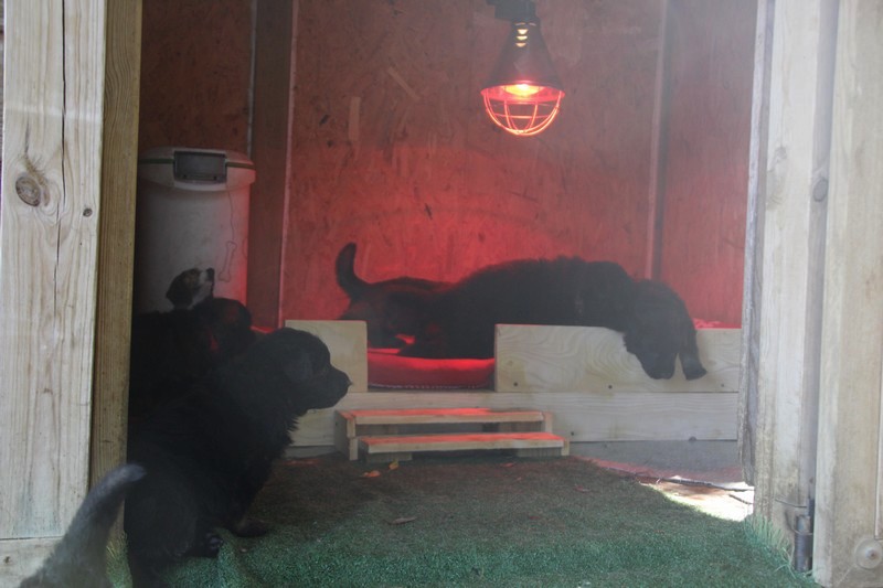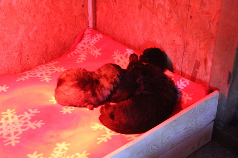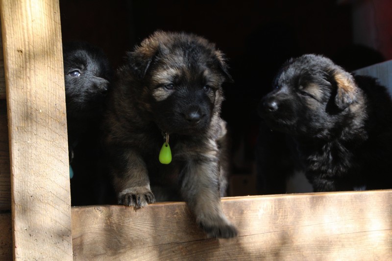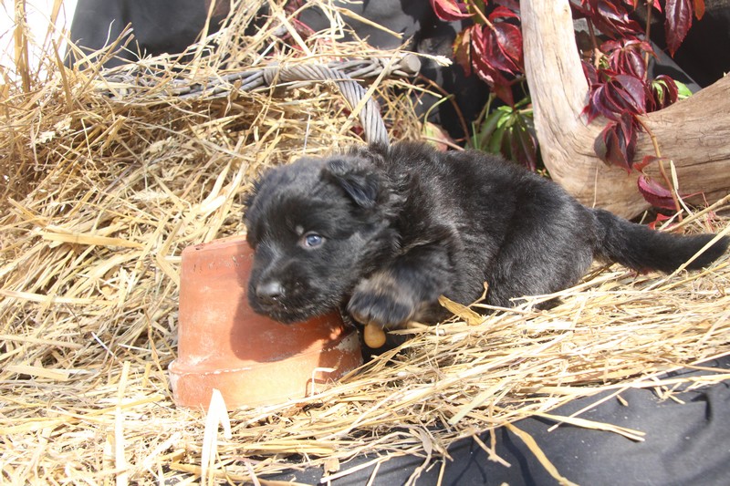 Jeudi il a enfin fait beau, nous avons donc pu sortir et c’est dans le parc à chiot que nous avons passé la journée. Occupés à découvrir ce nouvel environnement, à prendre contact avec tous les chiens de la meute, à chercher les tétines de nos mamans et à tester nos nouveaux lits… Pff! nous n’avons pas vu la journée défilée. Dans la soirée le carrosse est venu nous chercher afin de nous ramener dans la maison ou nous attendait un festin, nos futures journées vont maintenant être à l’image de ce jeudi, il parait que nous sommes prêts pour les grandes découvertes.