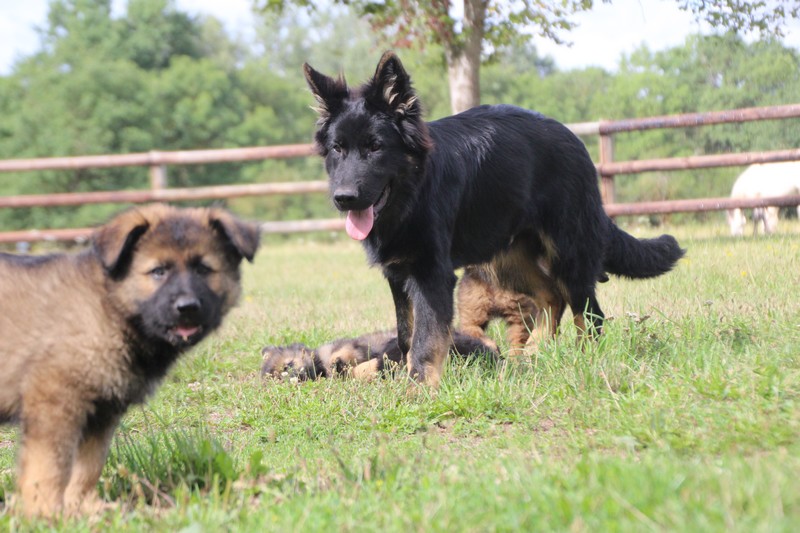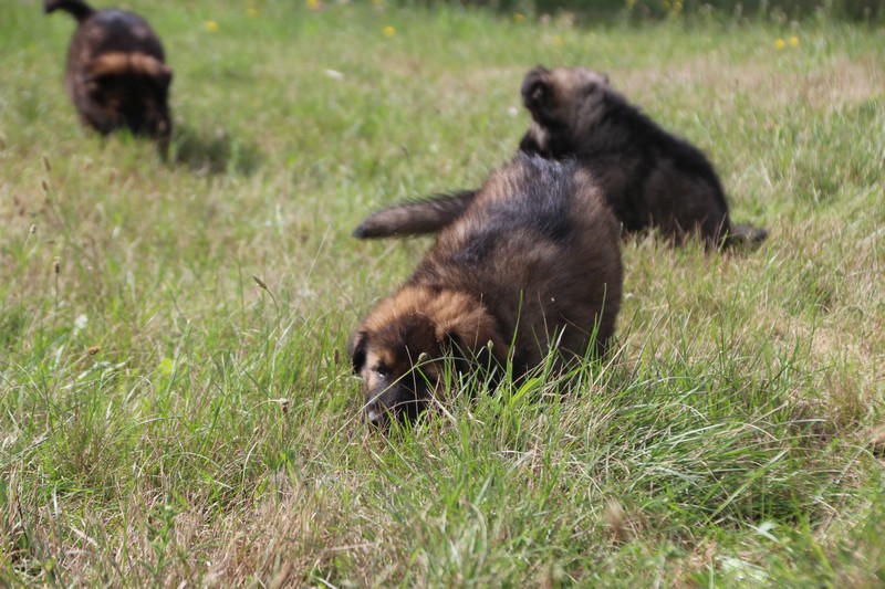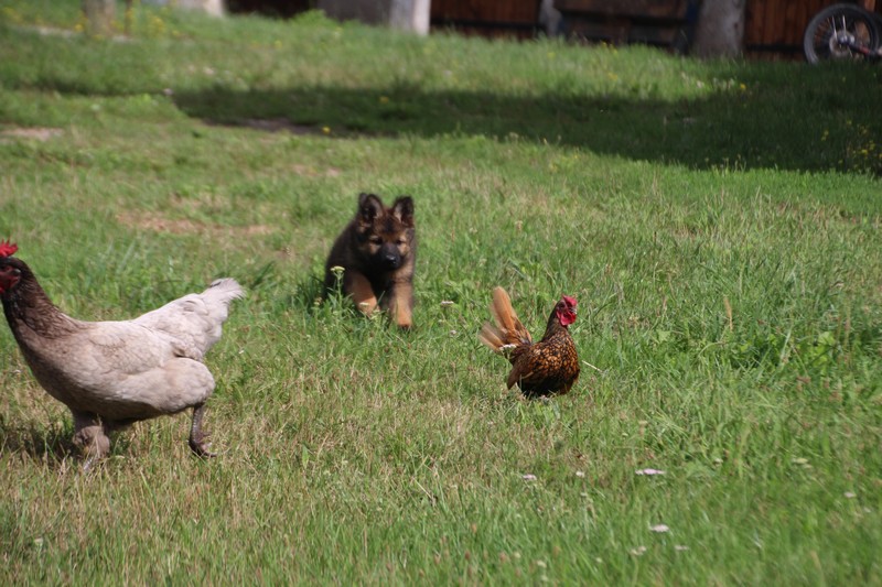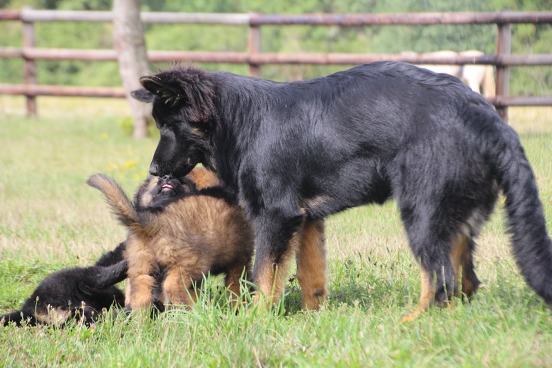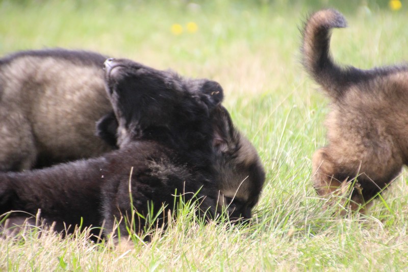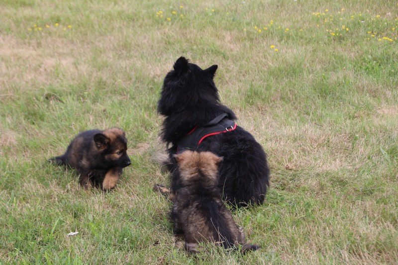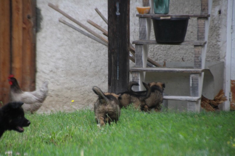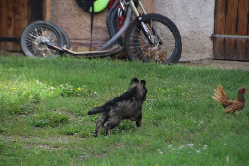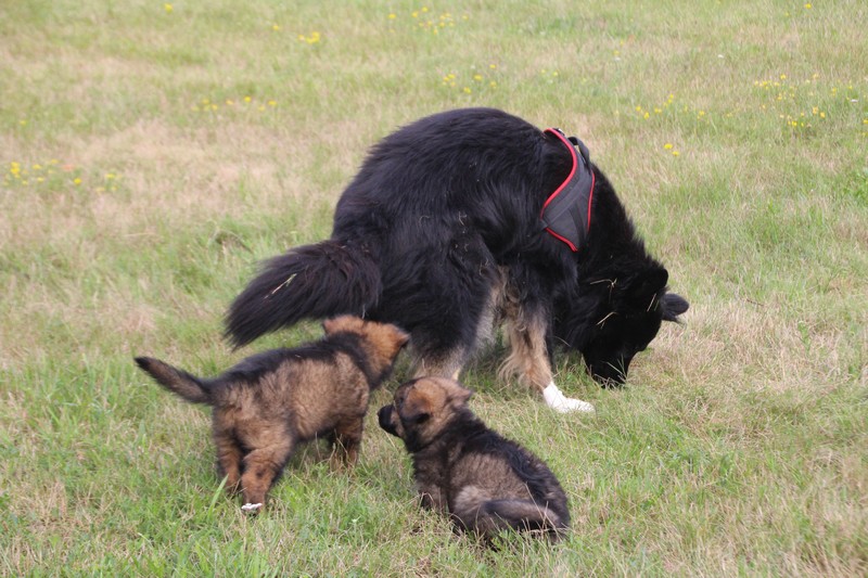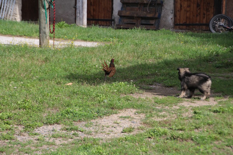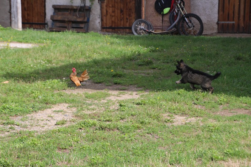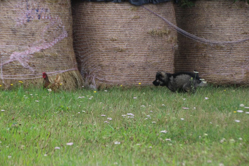 Nos journées se passent essentiellement en compagnie du reste de la meute, nous apprenons au contact des grands que tous les chiens ne sont pas forcément joueurs ou patient, nous devons donc adapter notre comportement suivant les individus, il parait que c’est l’école de la vie ! et bien des fois la vie elle n’est pas très rigolote et un peu autoritaire …