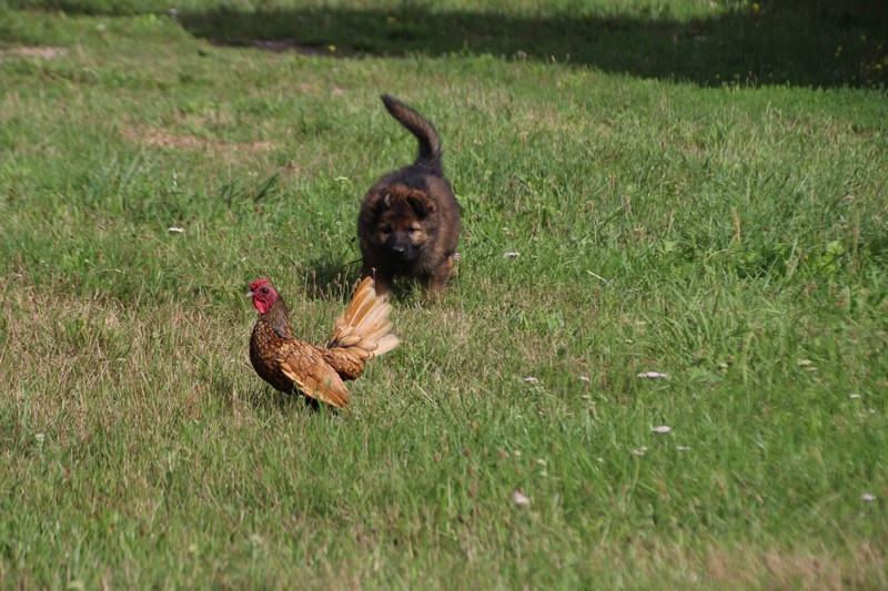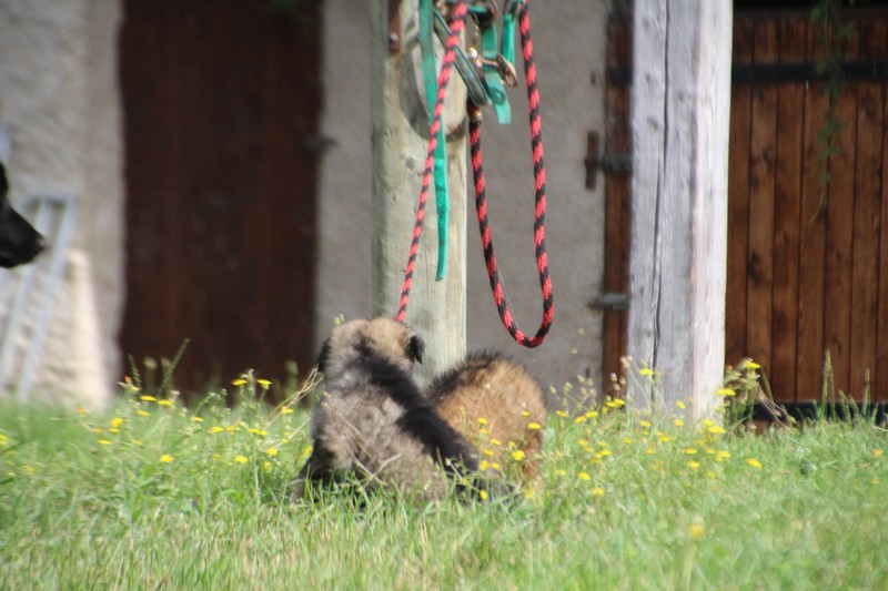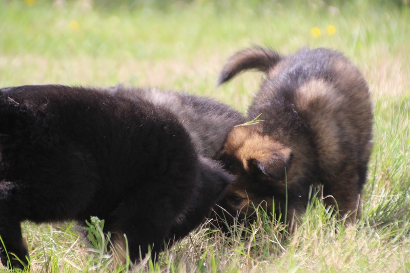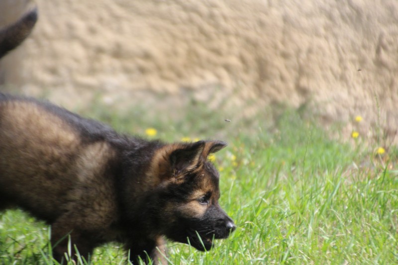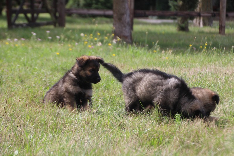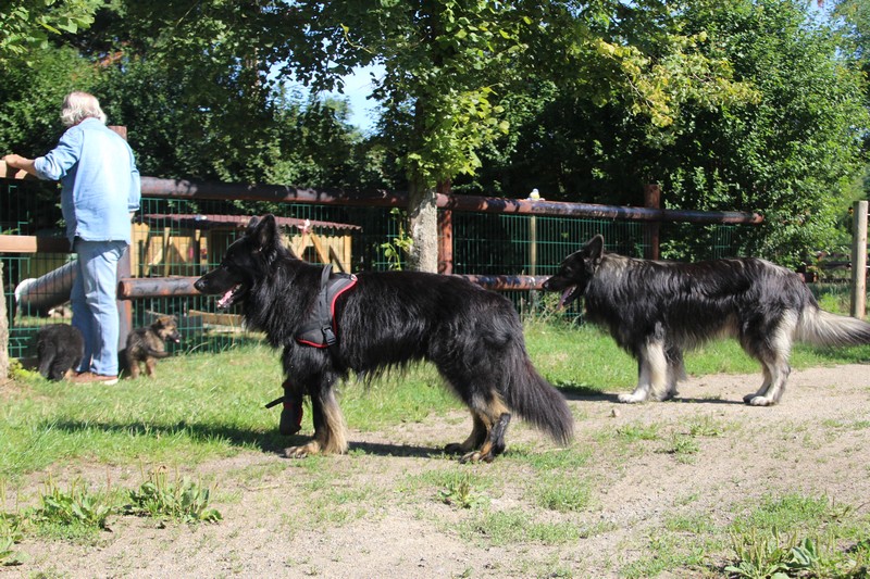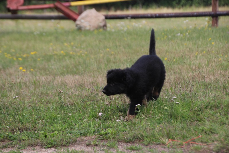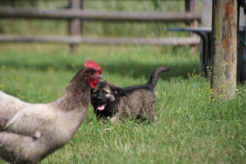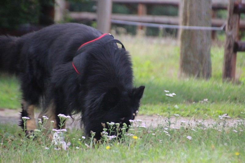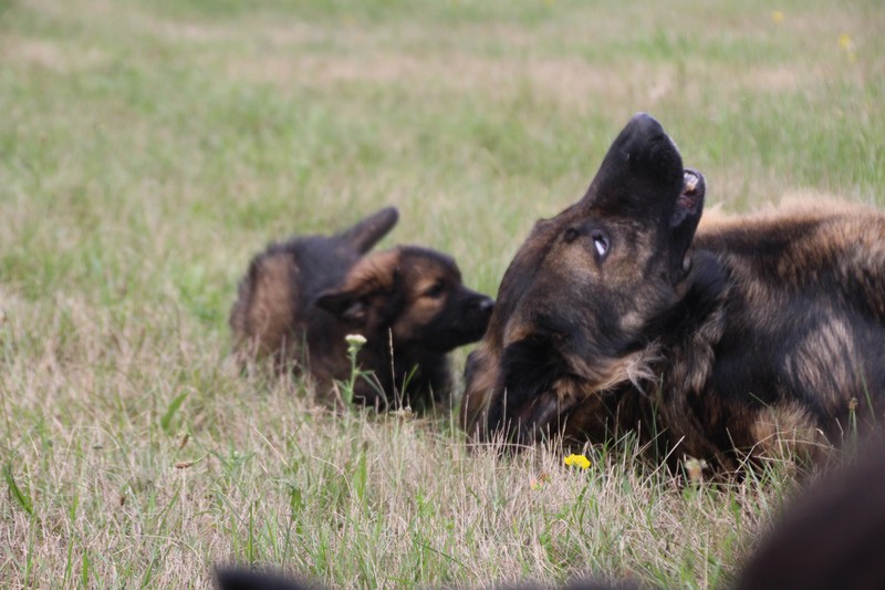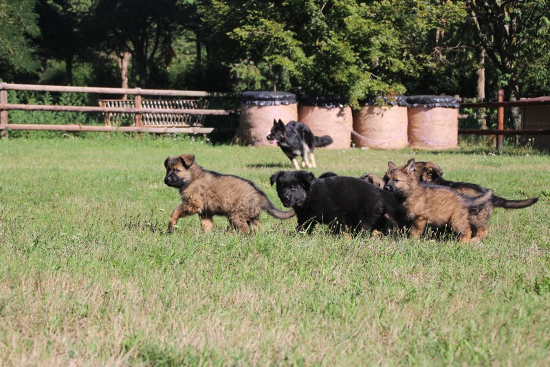 Nos journées se passent essentiellement en compagnie du reste de la meute, nous apprenons au contact des grands que tous les chiens ne sont pas forcément joueurs ou patient, nous devons donc adapter notre comportement suivant les individus, il parait que c’est l’école de la vie ! et bien des fois la vie elle n’est pas très rigolote et un peu autoritaire …