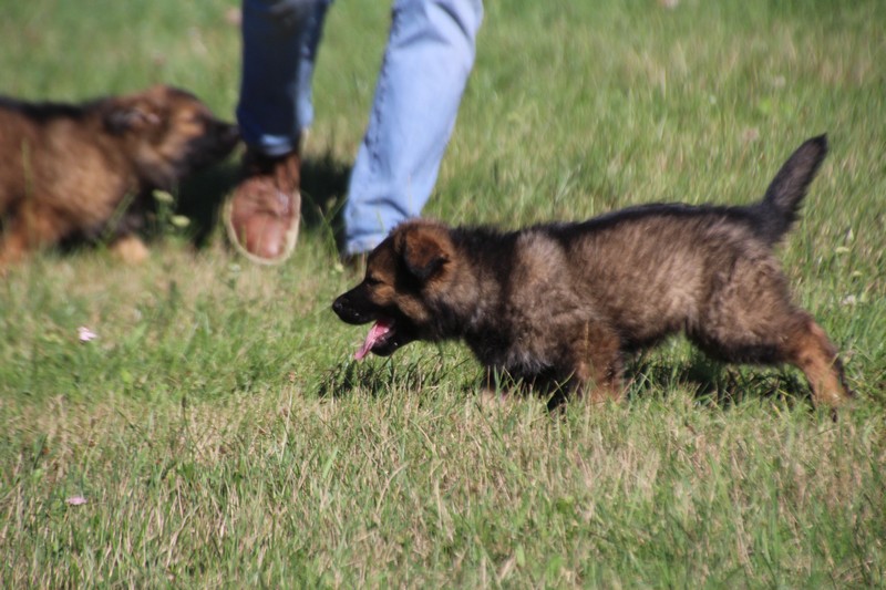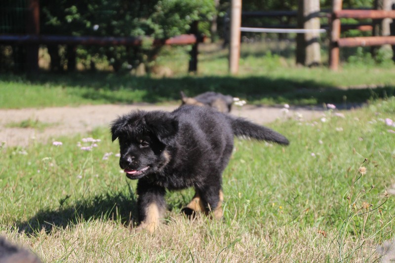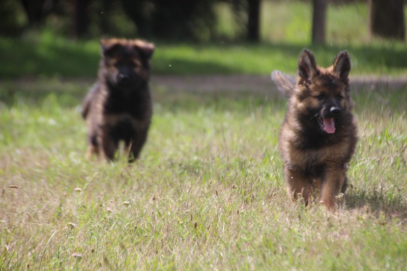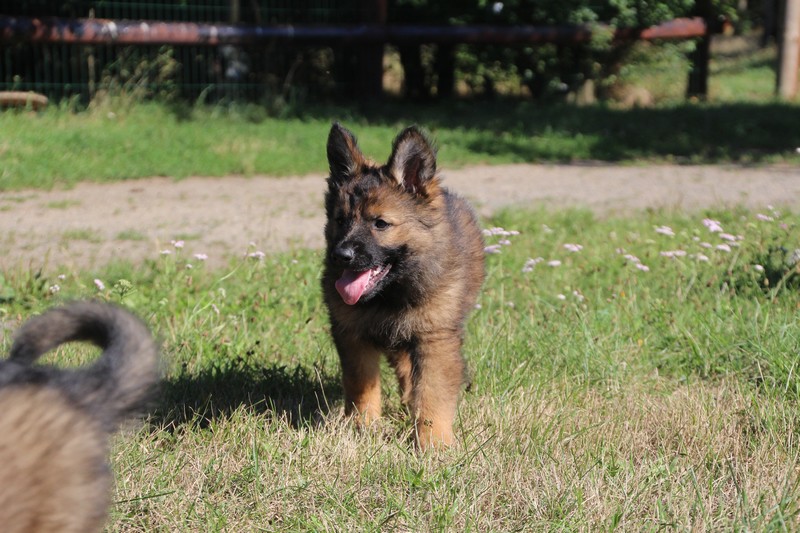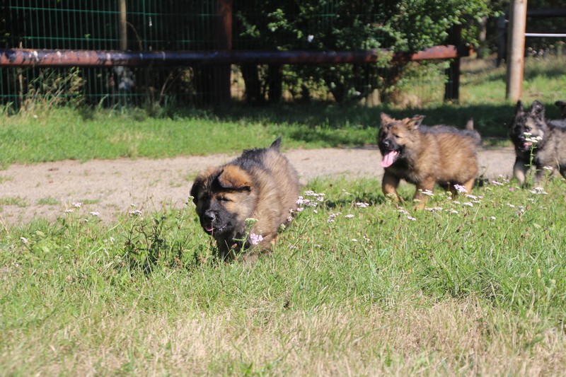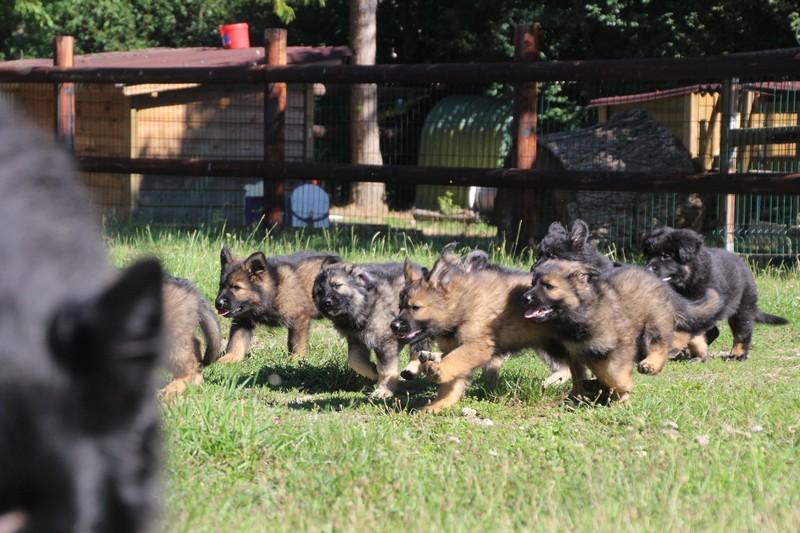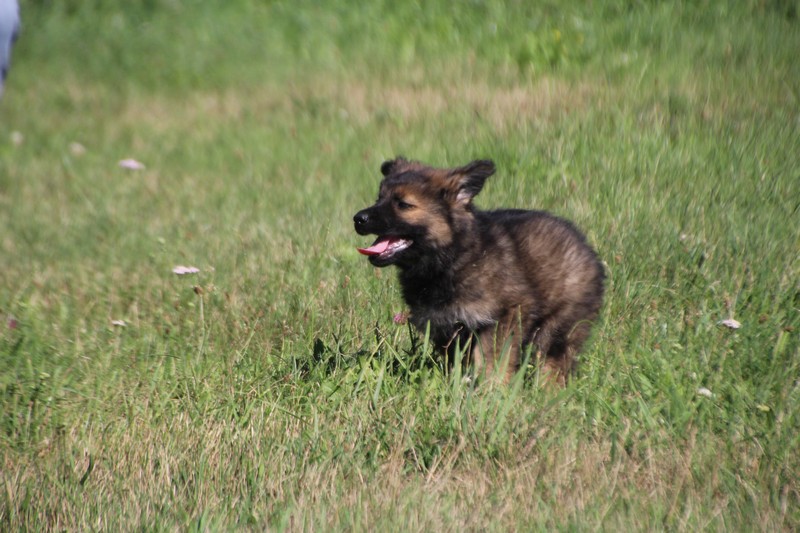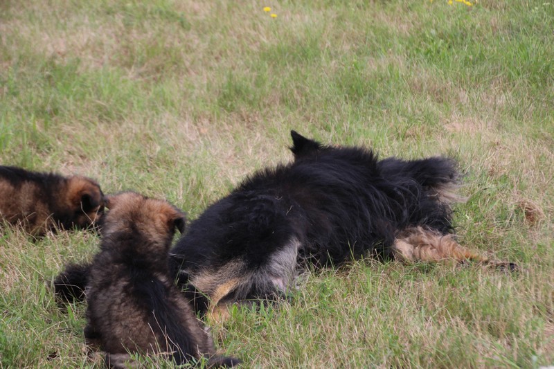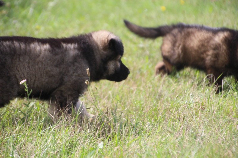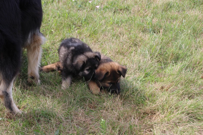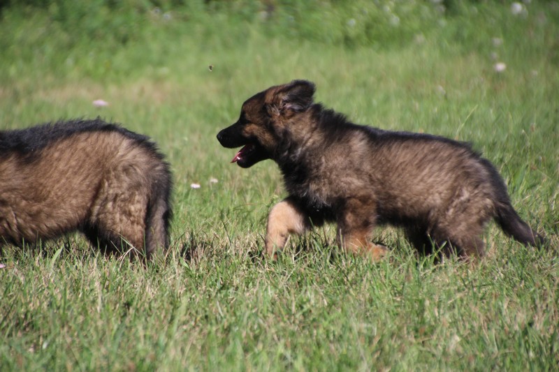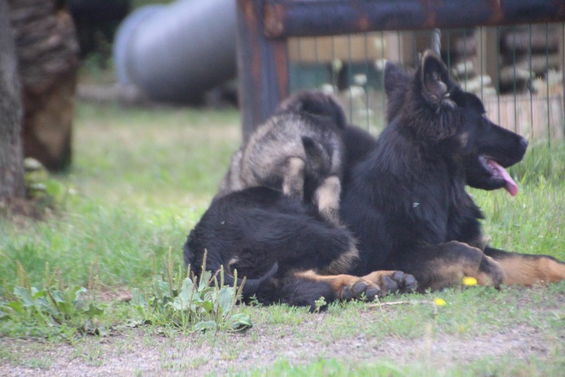 Nos journées se passent essentiellement en compagnie du reste de la meute, nous apprenons au contact des grands que tous les chiens ne sont pas forcément joueurs ou patient, nous devons donc adapter notre comportement suivant les individus, il parait que c’est l’école de la vie ! et bien des fois la vie elle n’est pas très rigolote et un peu autoritaire …