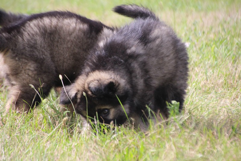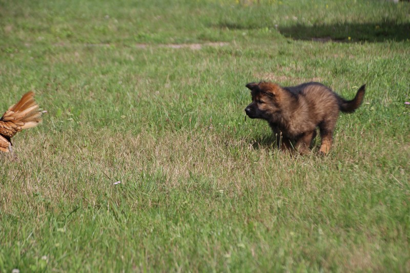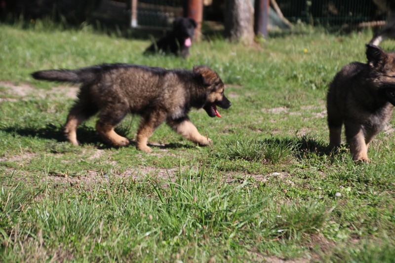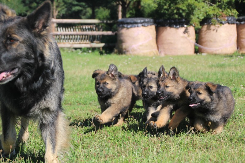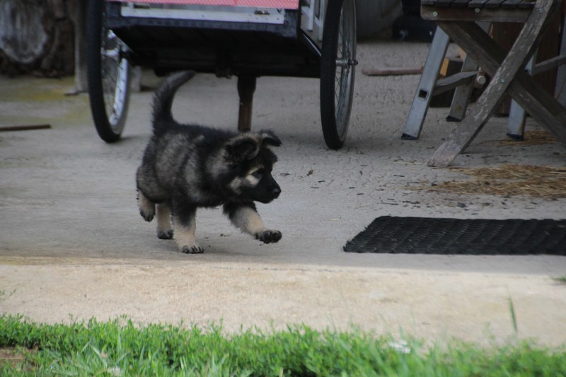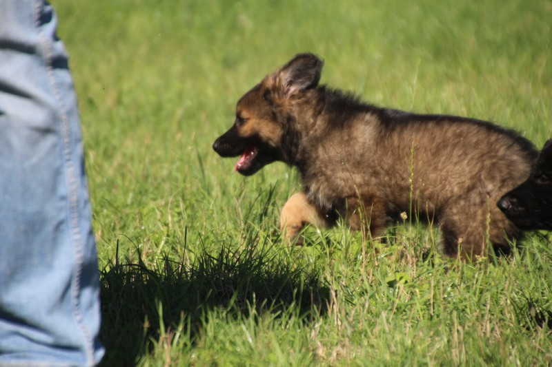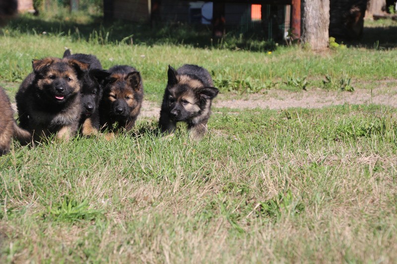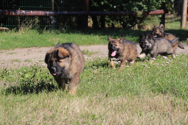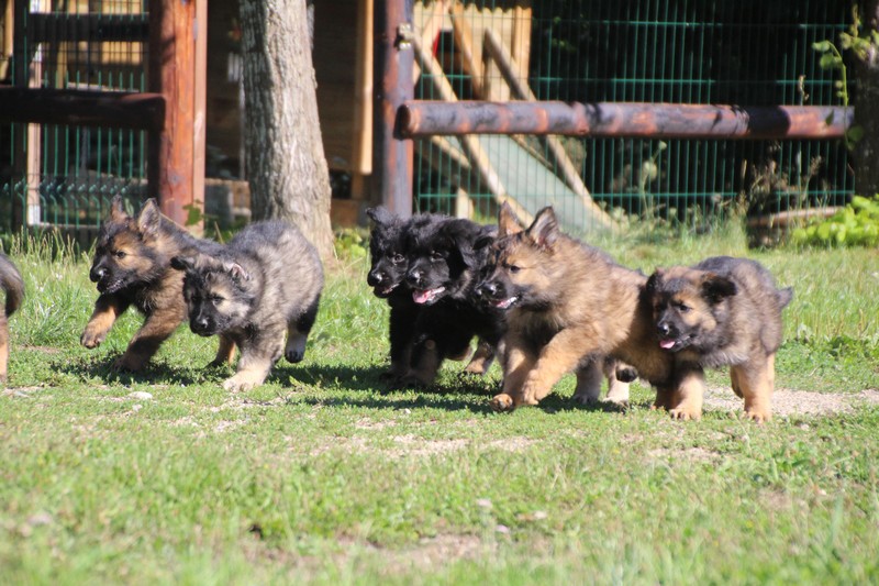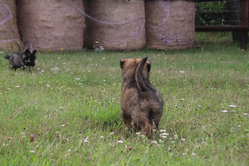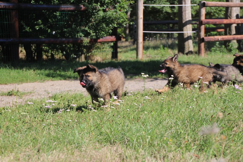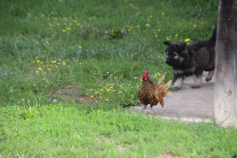 Nos journées se passent essentiellement en compagnie du reste de la meute, nous apprenons au contact des grands que tous les chiens ne sont pas forcément joueurs ou patient, nous devons donc adapter notre comportement suivant les individus, il parait que c’est l’école de la vie ! et bien des fois la vie elle n’est pas très rigolote et un peu autoritaire …