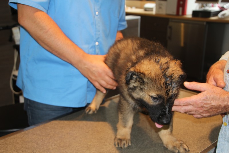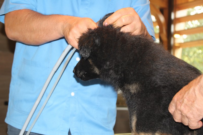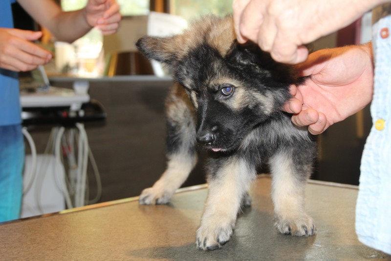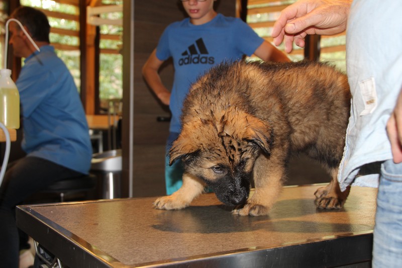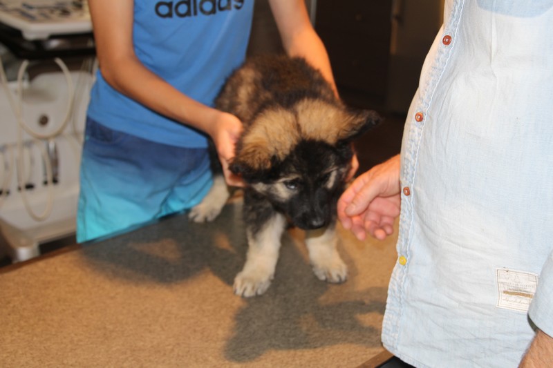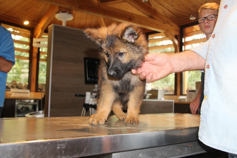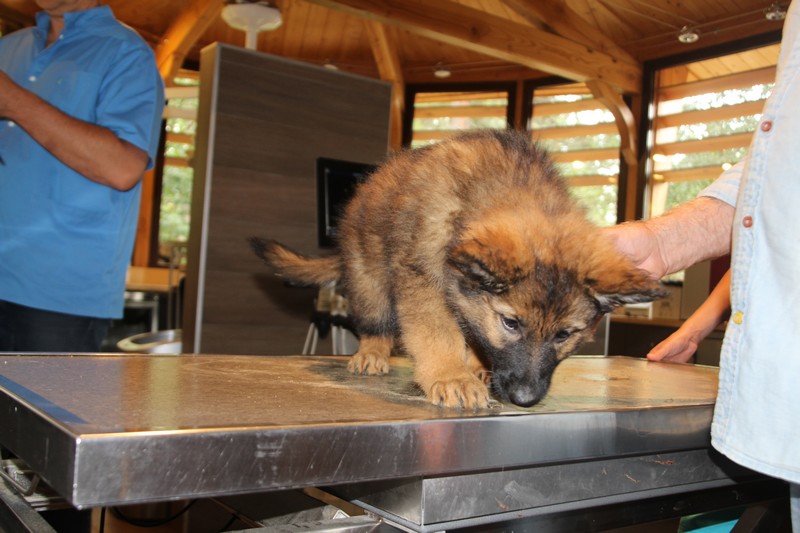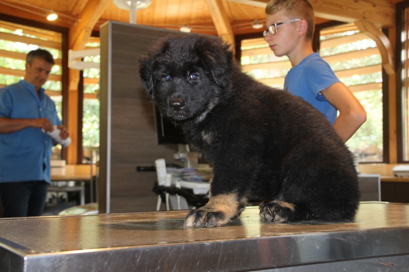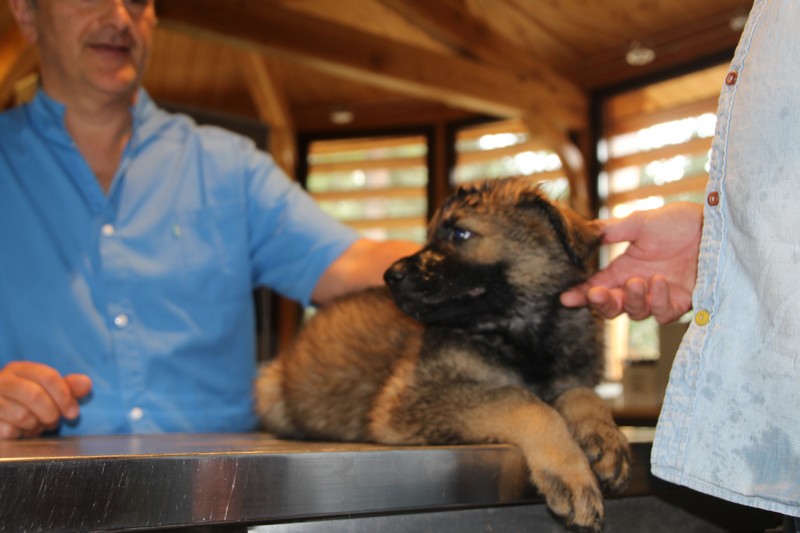 Pour fêter nos 8 semaines, qui sont une étape importante nous avons eu le droit à un tour de voiture pour la visite chez le vétérinaire, un gentil monsieur qui nous a ausculté de toute part et nous vacciné et pucé, nous sommes donc prêt pour rejoindre nos famille qui nous attendent avec impatience.