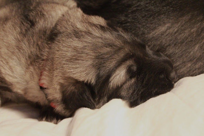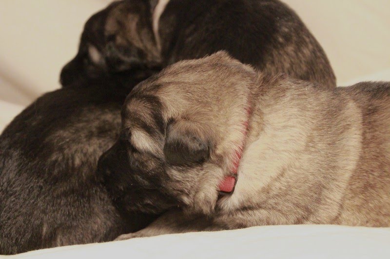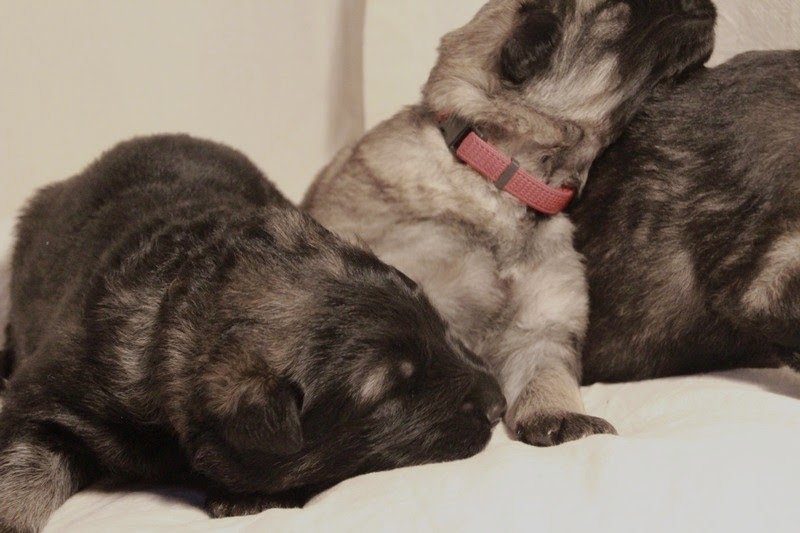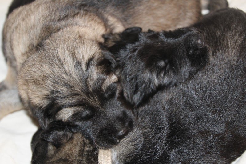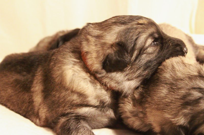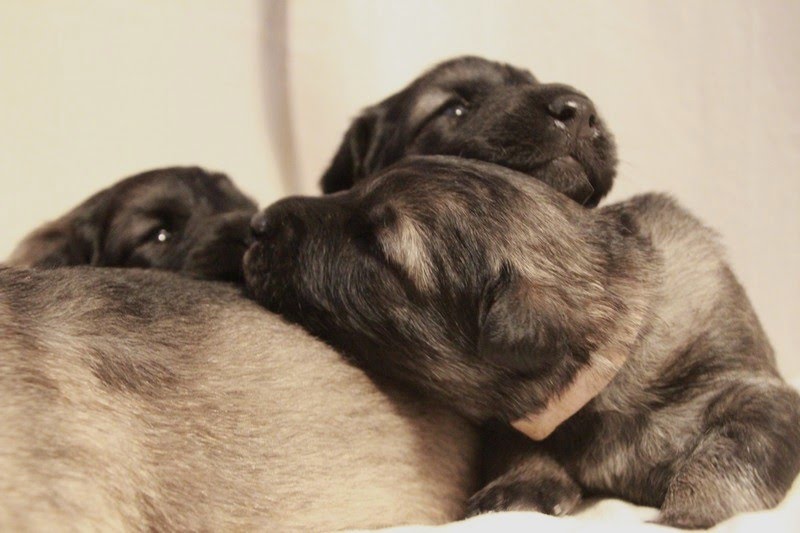 2 semaines pour les bébés de Lubie et Boss, ils ouvrent les yeux et commencent à se déplacer plus ou moins a quatre pattes