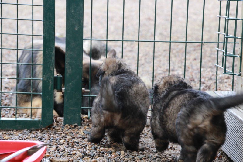 Aujourd’hui les plus petits sont venus nous voir, chouette ça fait de nouveaux jeux, mais on a pas le droit de tirer les poils, ce n’est pas marrant!!