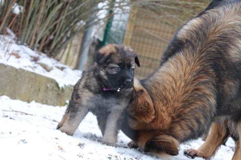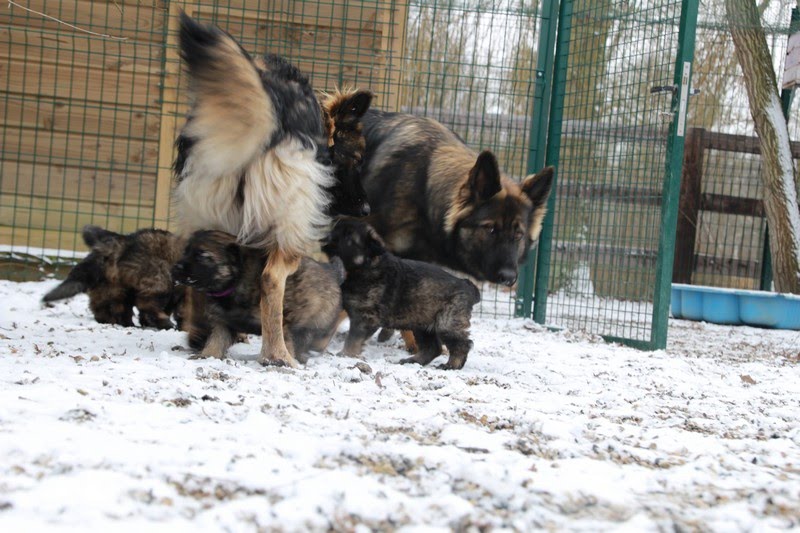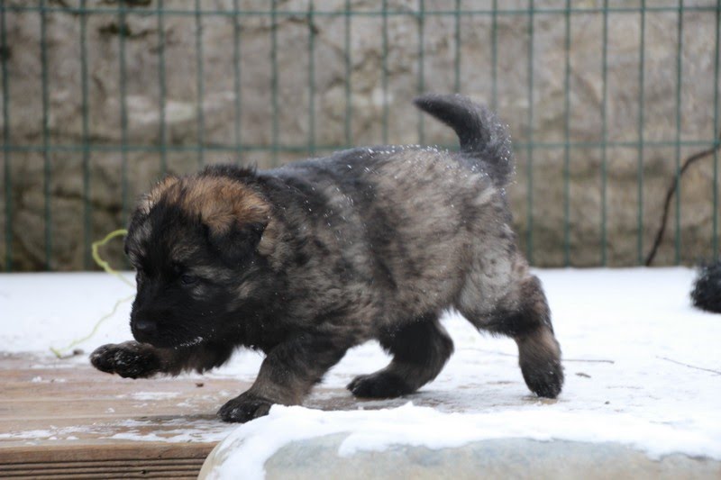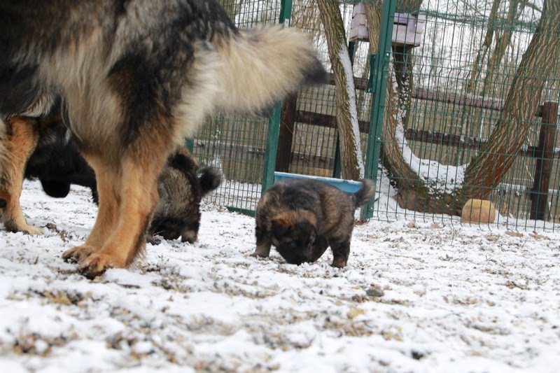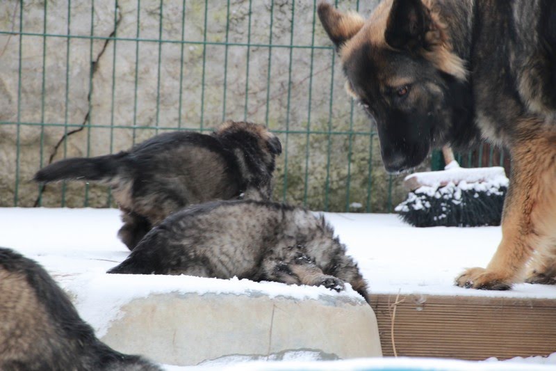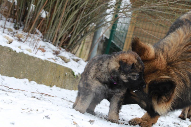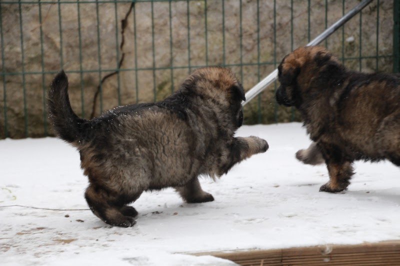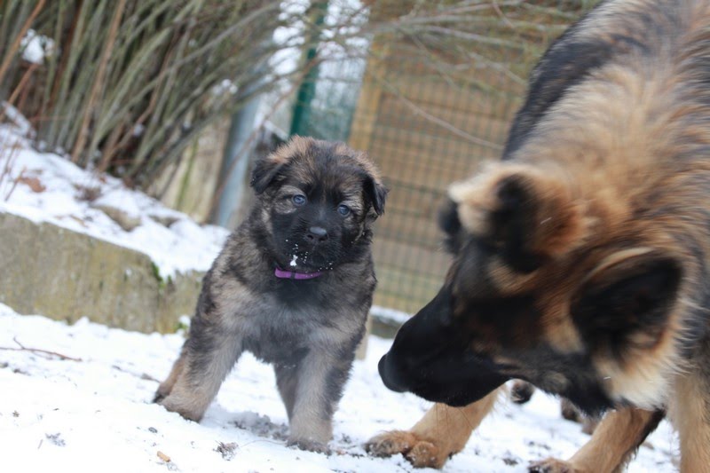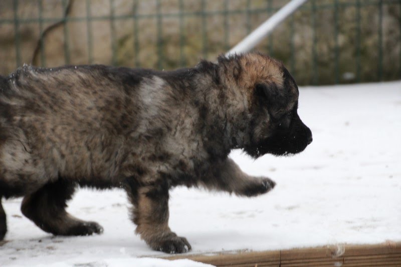Ce matin nous avions une surprise en arrivant dans le parc a chiot, le sol n’était pas comme d’habitude il était froid, humide et blanc!! Parait que cela s’appelle la neige, bon faut juste bien lever les pattes le temps de s’habituer à marcher sur cette nouvelle matière.