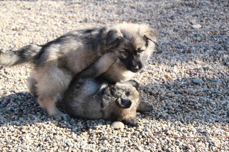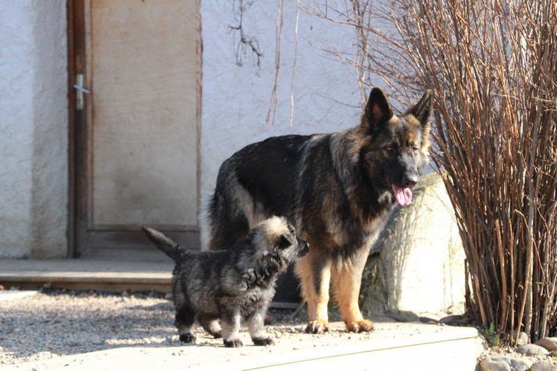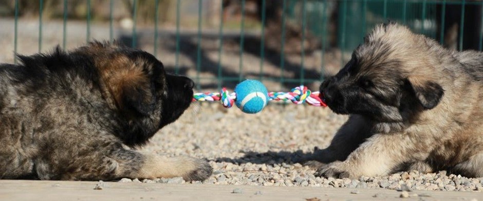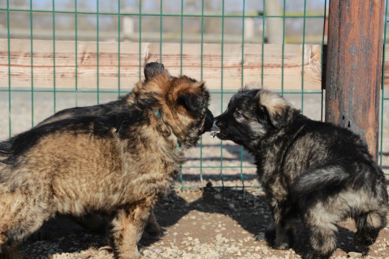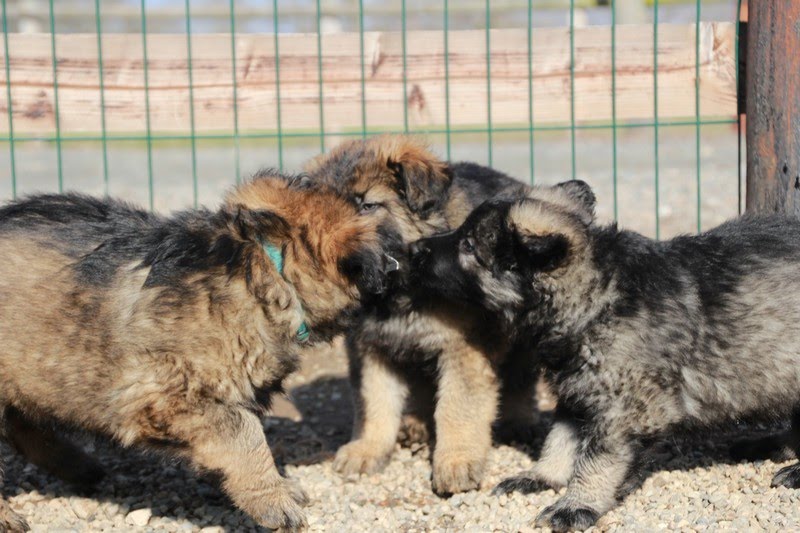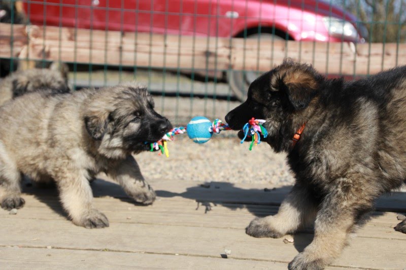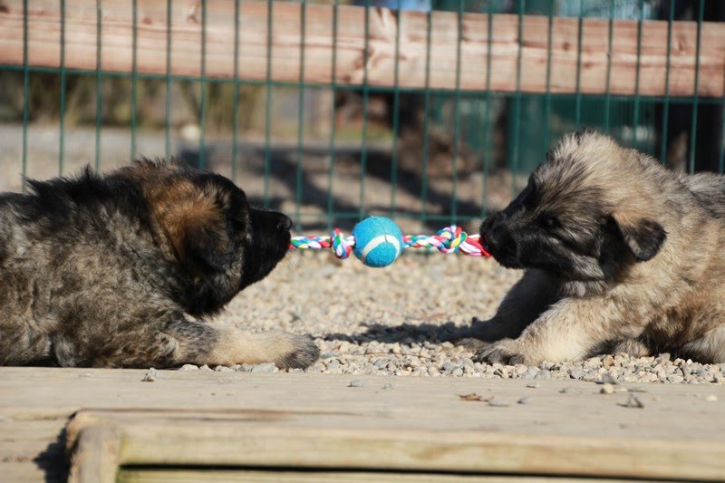 Nous sommes maintenant dans le parc à chiot, les grands ne nous embêtent plus. Nous découvrons pleins de nouvelles choses, plusieurs fois dans la journée nous sommes lâchés et jouons avec les adultes.
