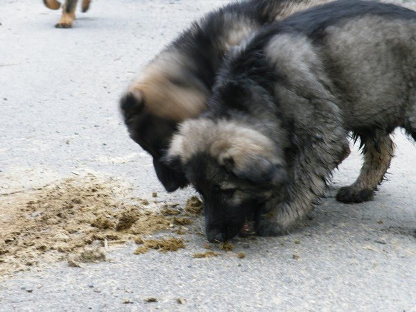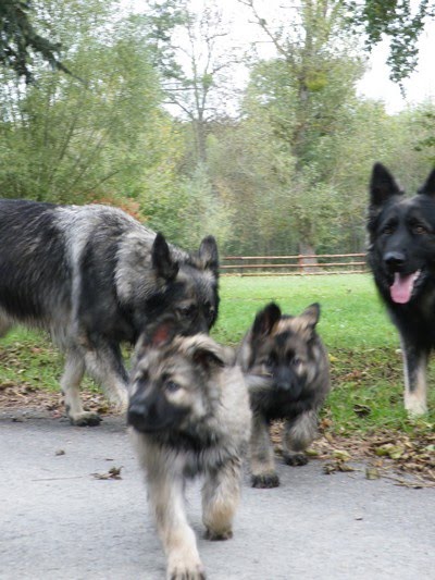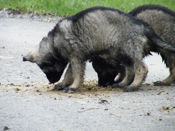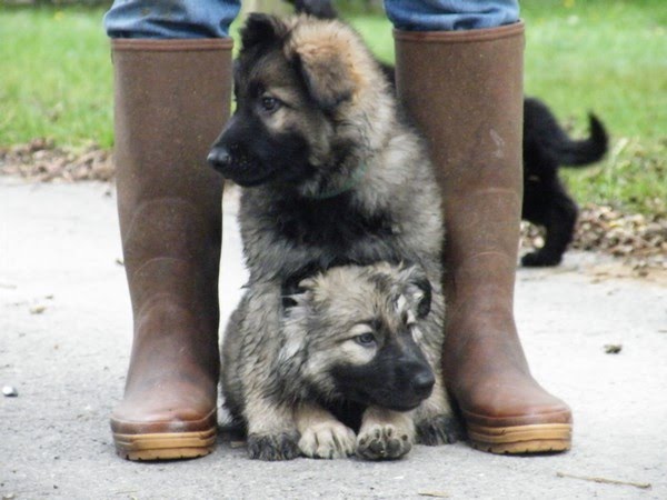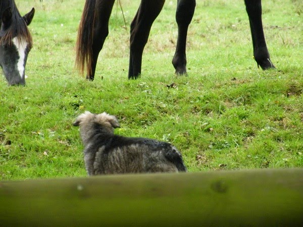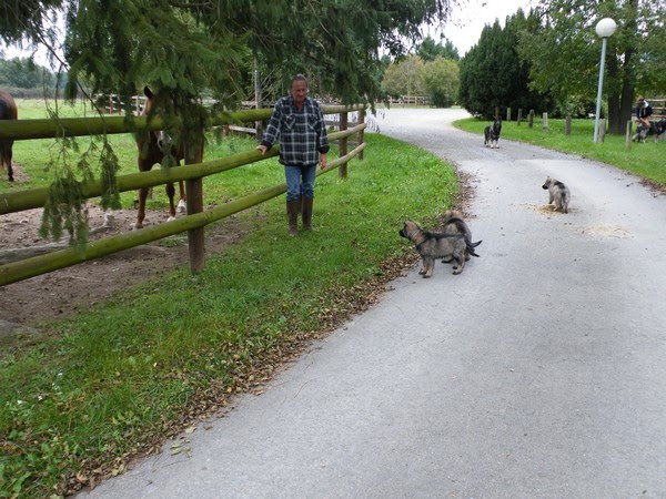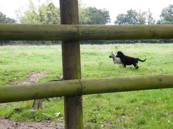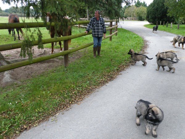 encore une semaine avec la meute et les petits partiront dans leur nouvelle famille, en attendant ils continuent les découvertes, chevaux, poules et le crottin de cheval…