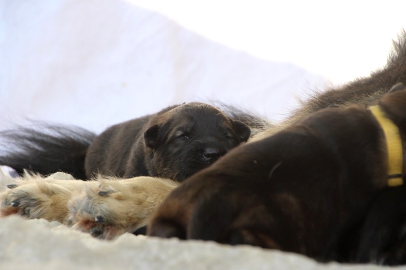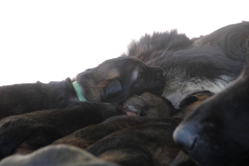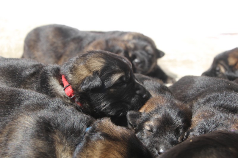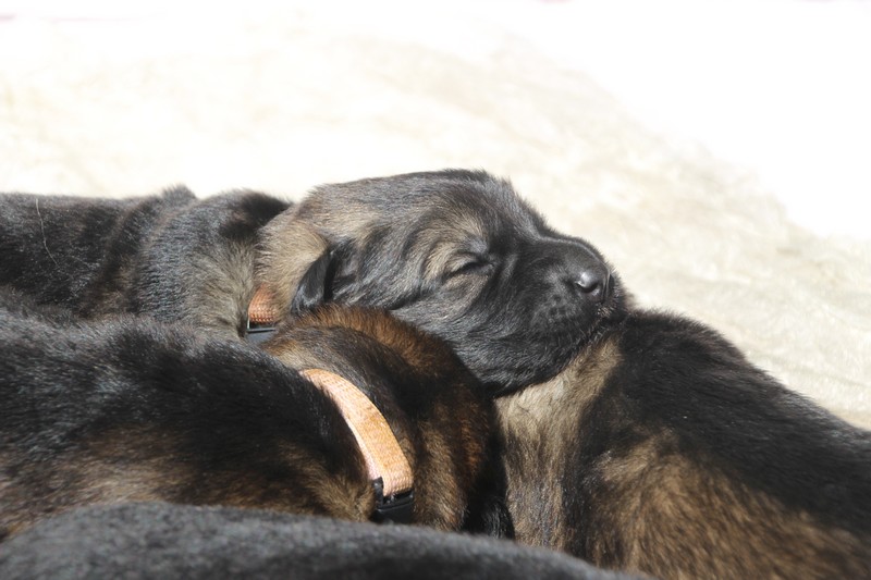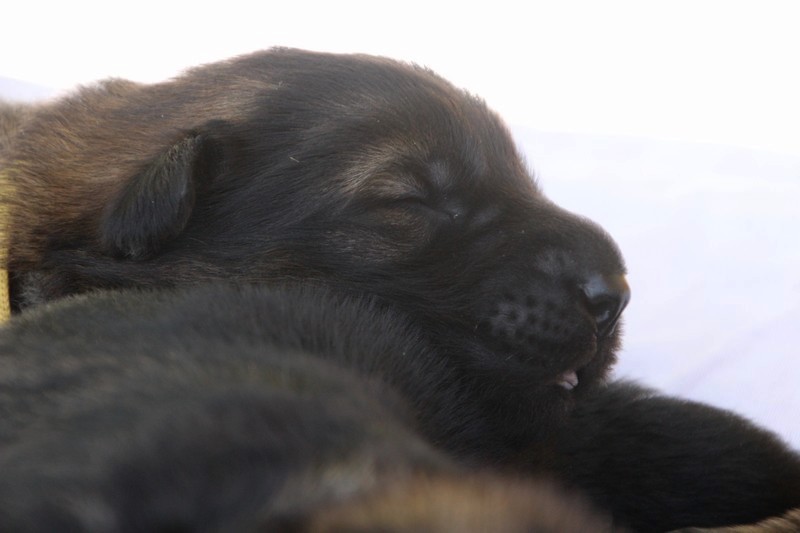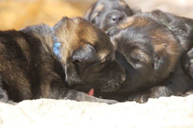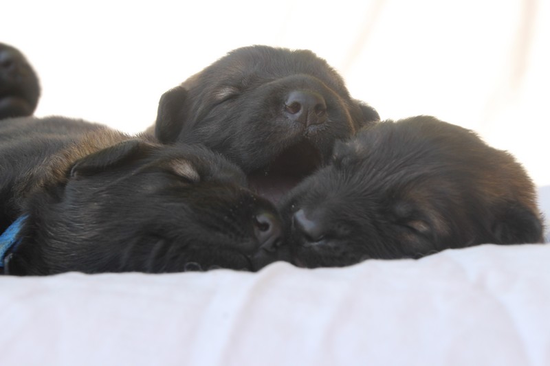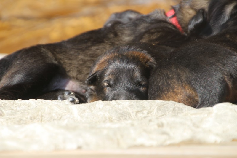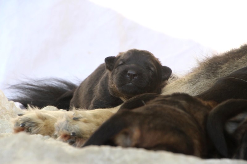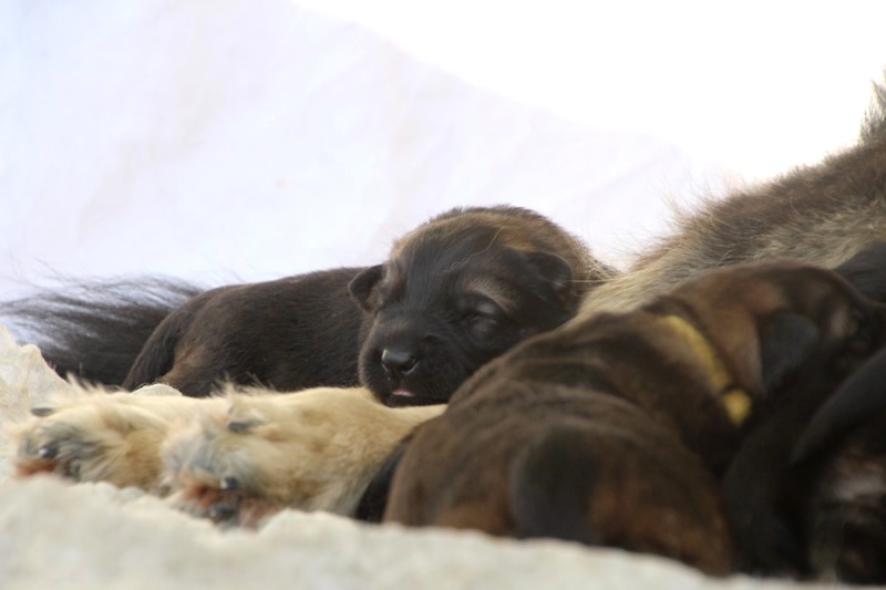 Malgré cela, la vie continu et la tristesse ne doit pas faire d’ombre aux moments de joies qu’apportent toute cette joyeuse troupe. Si pour le moment ils ne font que dormir, manger et ressemblent à un troupeau de phoques échoués sur une plage, ces petites boules d’amour ont ouvert les yeux et leur courbe de poids est excellente. Maman sioux est aux petits soins pour eux, tata Ice a commencé à pointer le bout de son nez dans la pièce pour venir voir ses futurs protégés et oui ici nous savons tous, que Ice va encore veiller sur les petits de l’élevage.