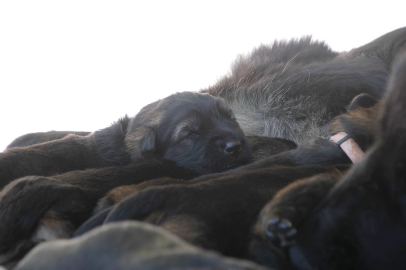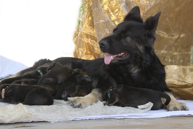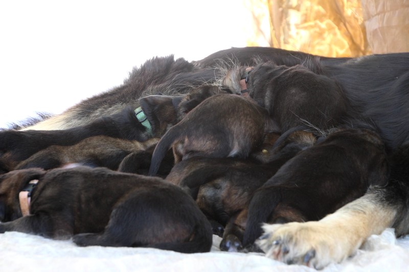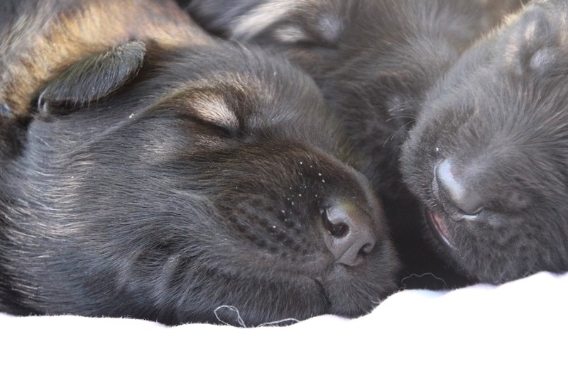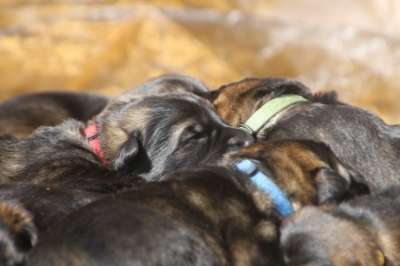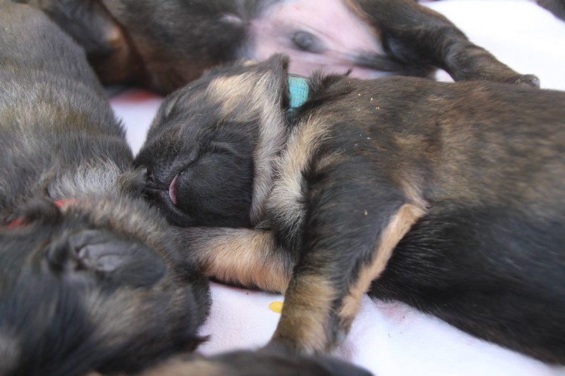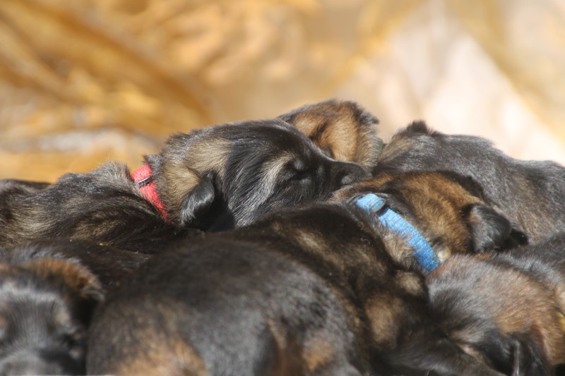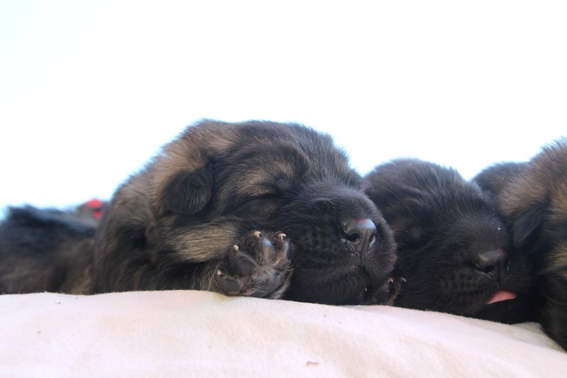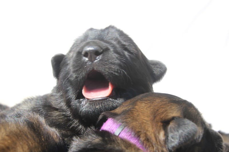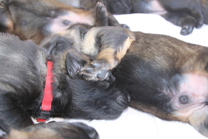 Malgré cela, la vie continu et la tristesse ne doit pas faire d’ombre aux moments de joies qu’apportent toute cette joyeuse troupe. Si pour le moment ils ne font que dormir, manger et ressemblent à un troupeau de phoques échoués sur une plage, ces petites boules d’amour ont ouvert les yeux et leur courbe de poids est excellente. Maman sioux est aux petits soins pour eux, tata Ice a commencé à pointer le bout de son nez dans la pièce pour venir voir ses futurs protégés et oui ici nous savons tous, que Ice va encore veiller sur les petits de l’élevage.
